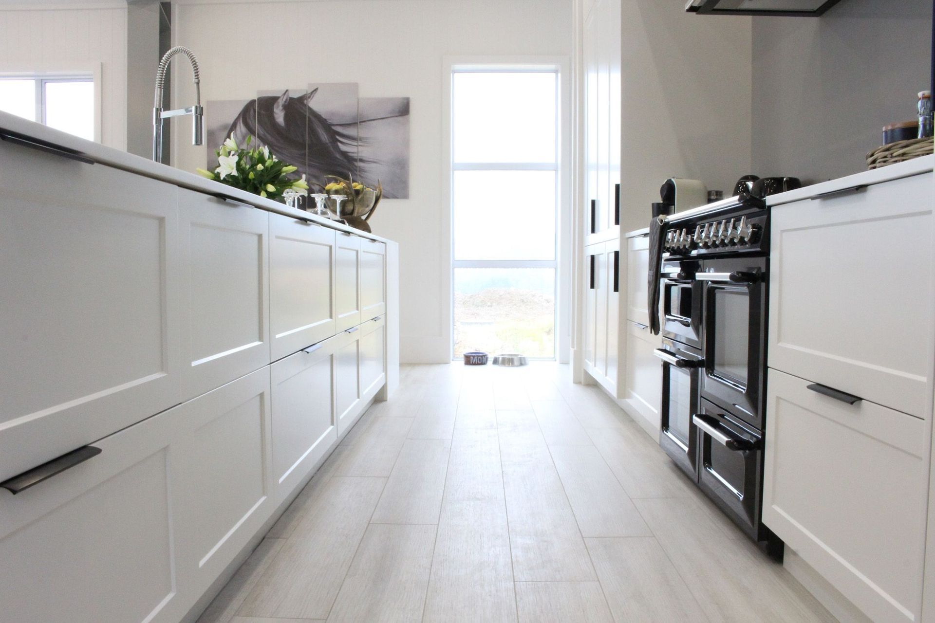 ArchiPro Project Summary - A harmonious blend of traditional and modern design in a spacious white kitchen, offering practicality for everyday use and an inviting atmosphere for entertaining.