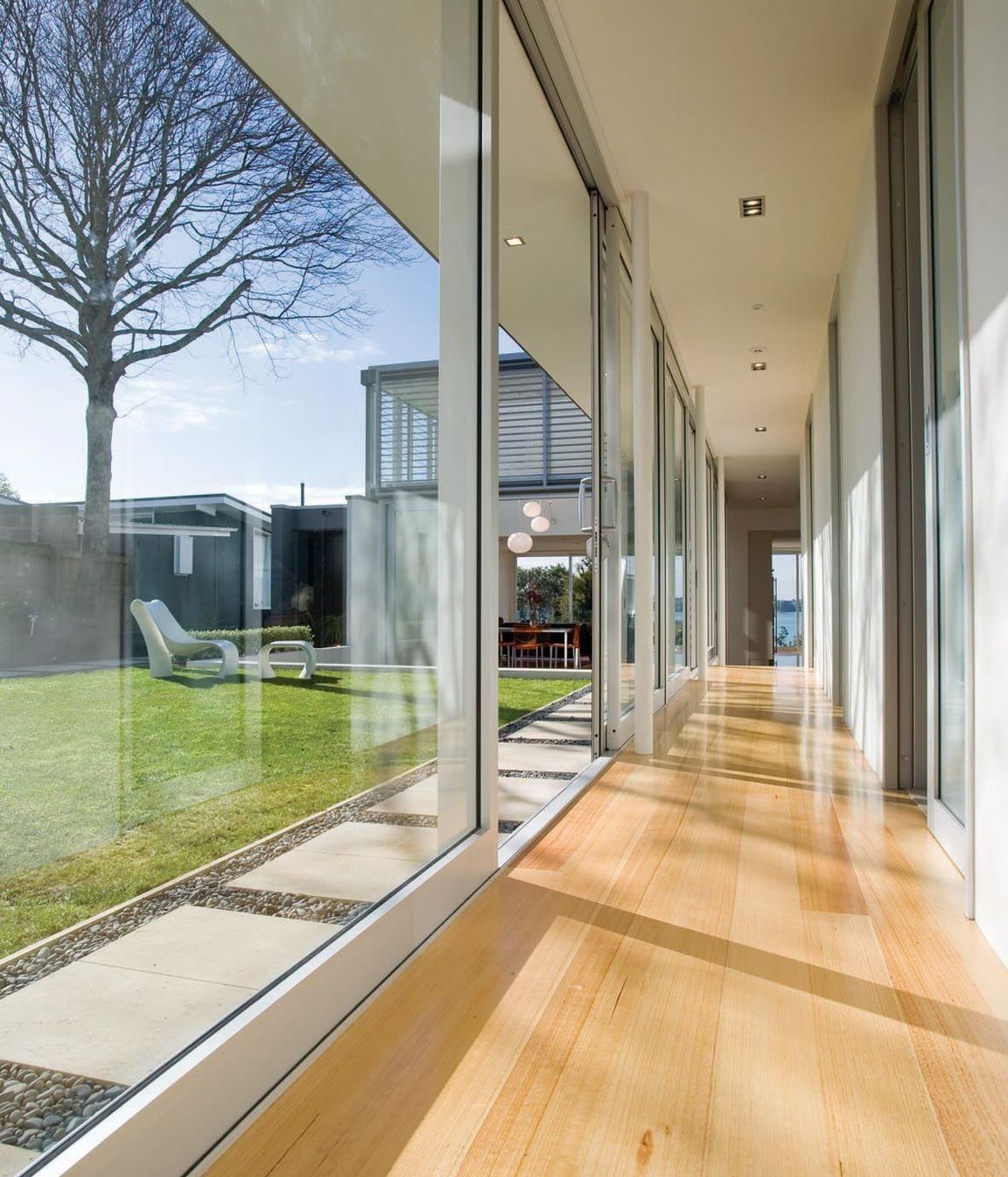 ArchiPro Project Summary - Clifftop House: A stunning architectural design maximizing sea views and sunlight, featuring a central courtyard, distinct living zones, and a blend of formal and informal spaces across 330m2, all while ensuring spatial interest and light exposure.