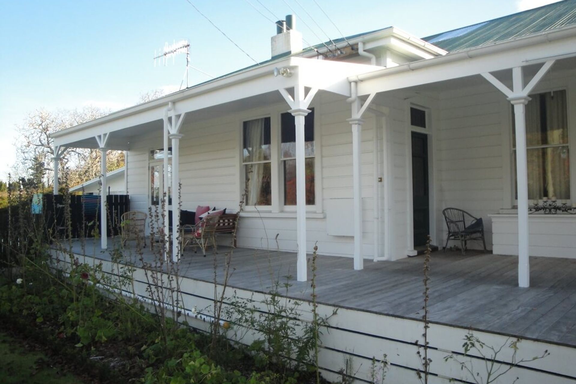 ArchiPro Project Summary - Three-bedroom cottage featuring board and batten design with a welcoming verandah, complemented by extensions to the main house's verandah and pool decking.