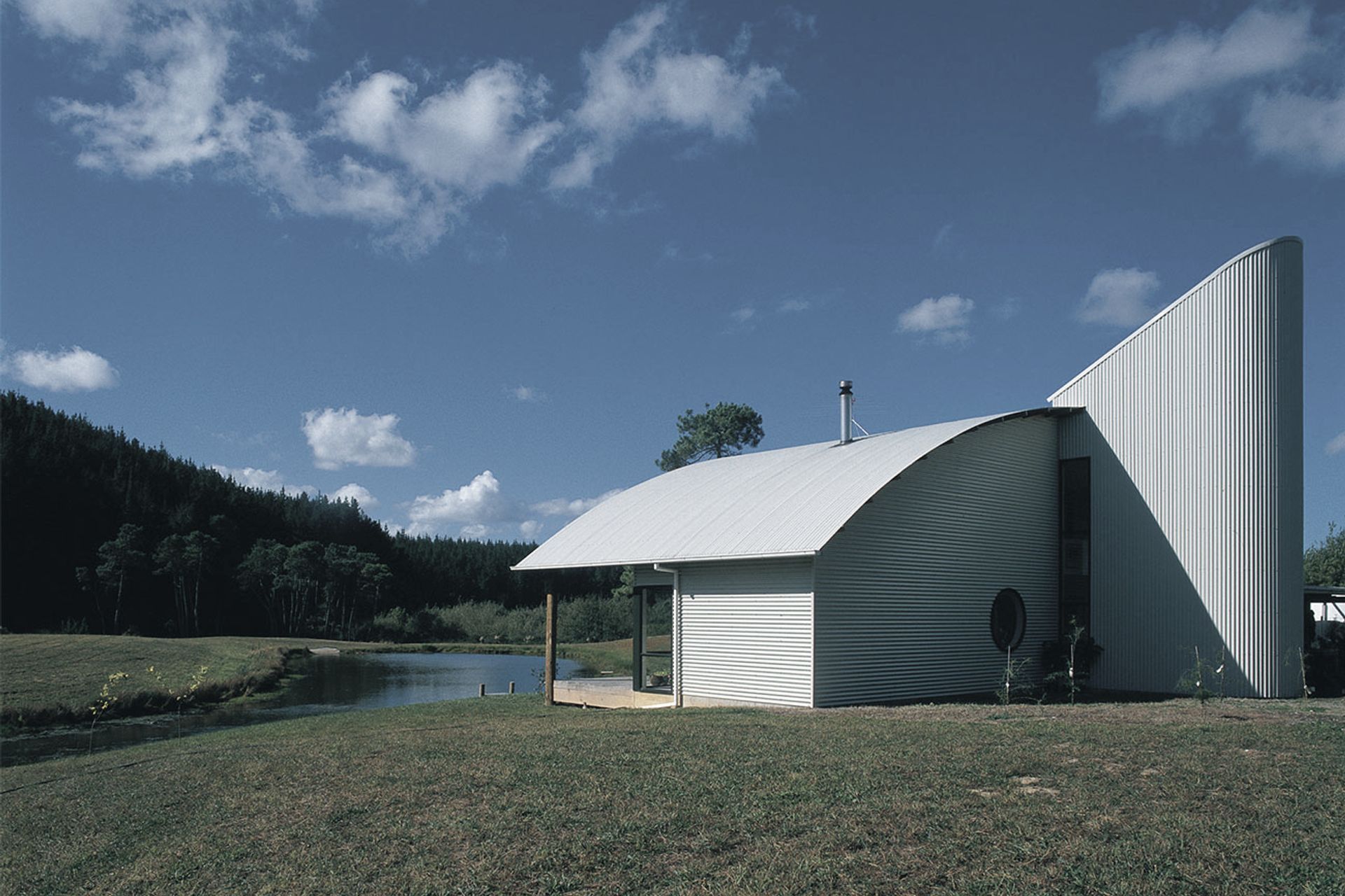ArchiPro Project Summary - A rural New Zealand residence inspired by local silos and barns, featuring a unique stairwell design and a main building with wide eaves for optimal sun control.