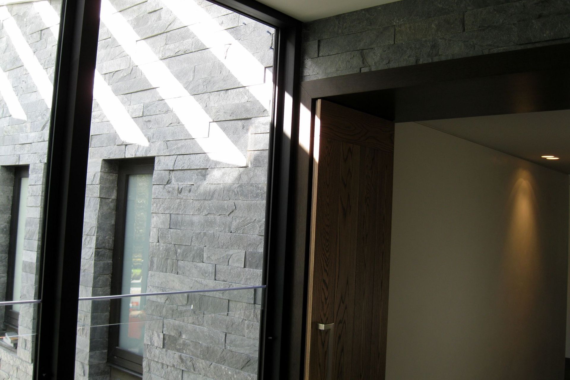 ArchiPro Project Summary - Silver Quartzite Variable Length Cladding enhances the architectural strength and visual appeal of a Coatesville residence, featuring a unique random layout that balances linearity with natural variation.