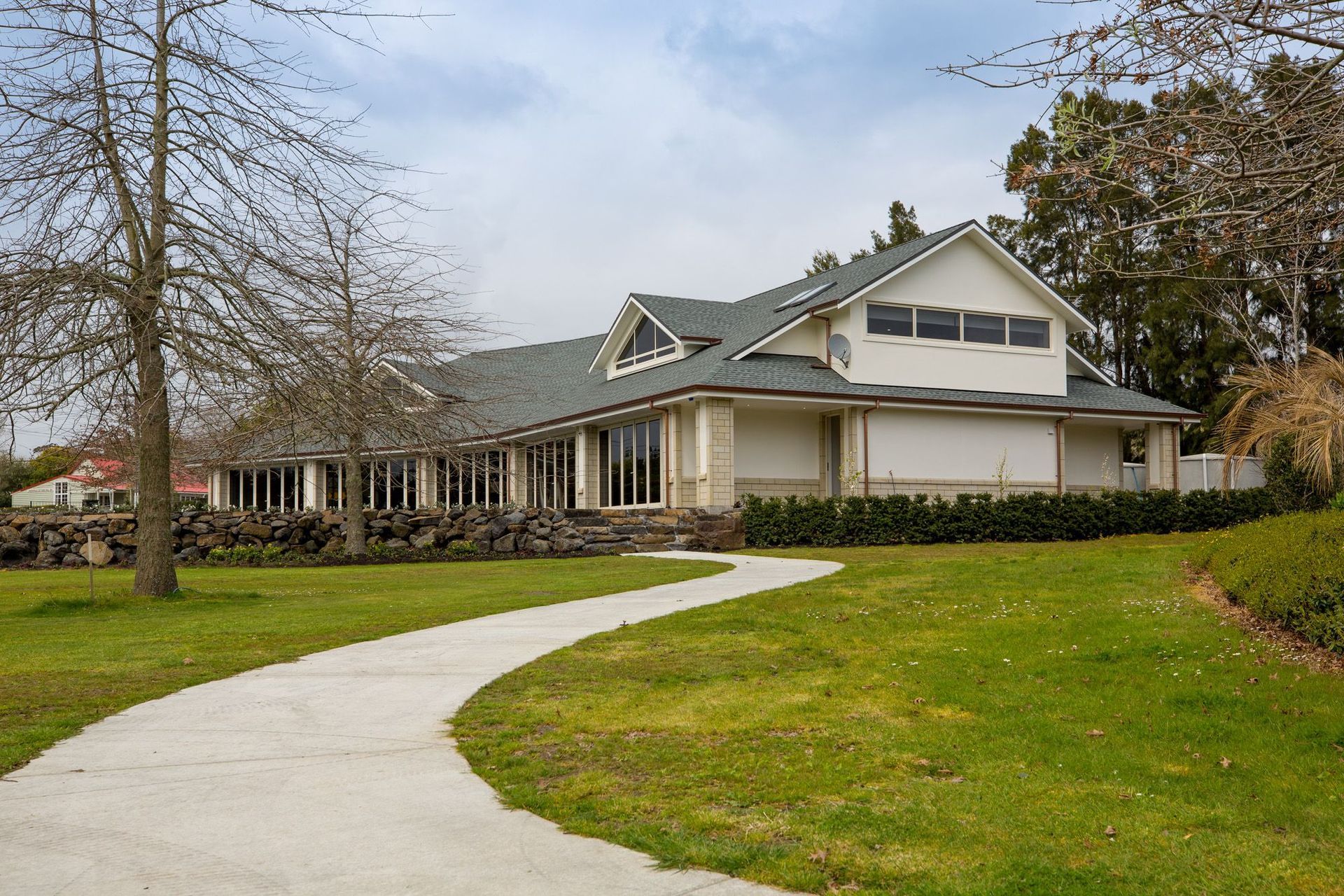 ArchiPro Project Summary - A 630 square metre shed featuring solid plaster brick and Hinuera stone veneer, equipped with a home office, capacity for 20+ cars, and advanced security systems including monitored alarms and automated roller blinds.