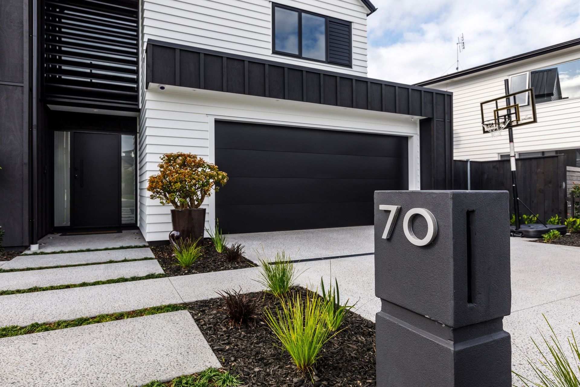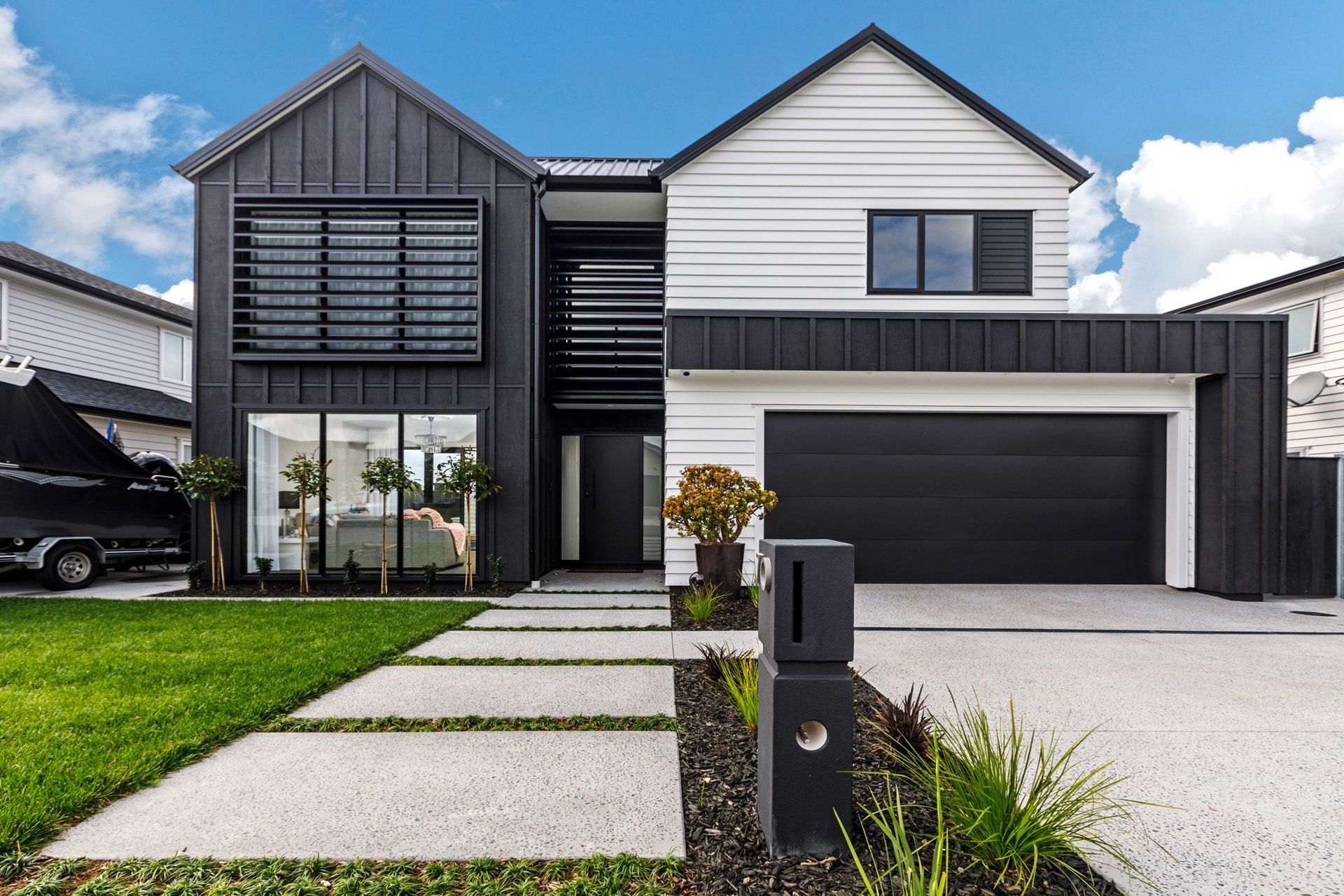 ArchiPro Project Summary - Striking 2-storey weatherboard home in Millwater featuring a pitched roof, outdoor living spaces, contemporary kitchen, and high-tech amenities, designed for comfort and style.