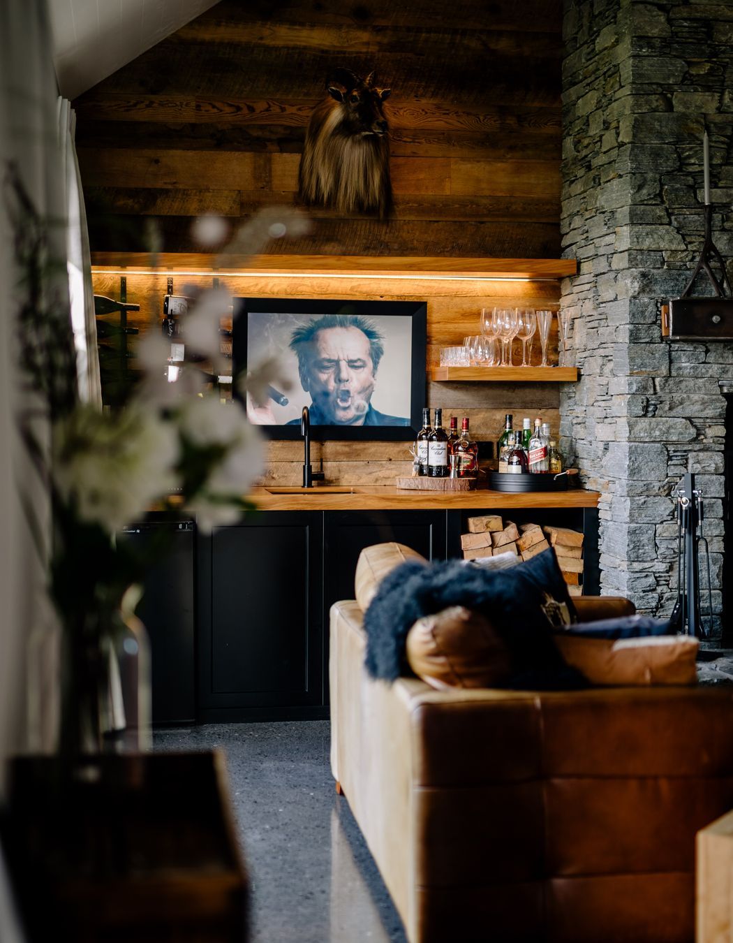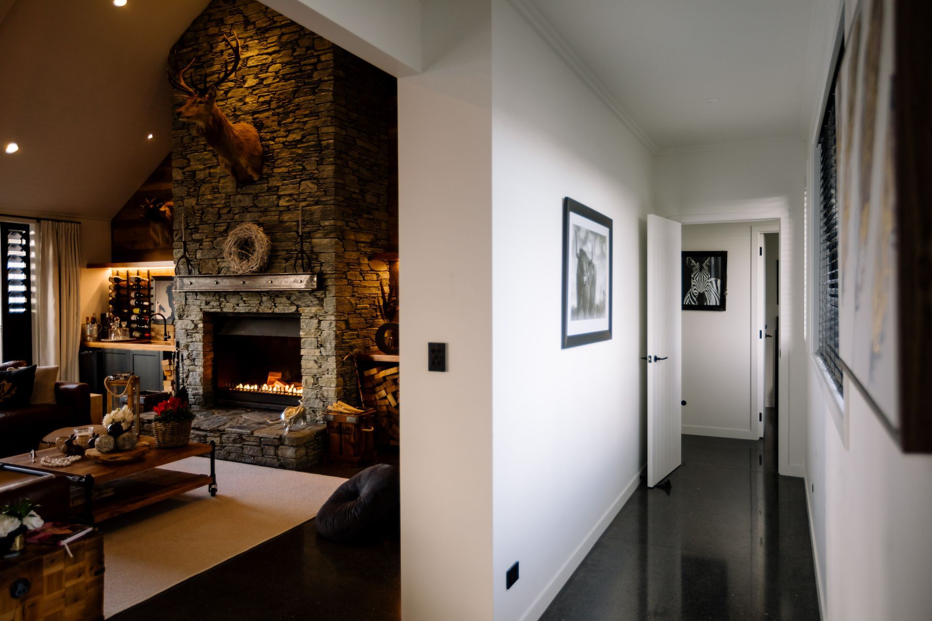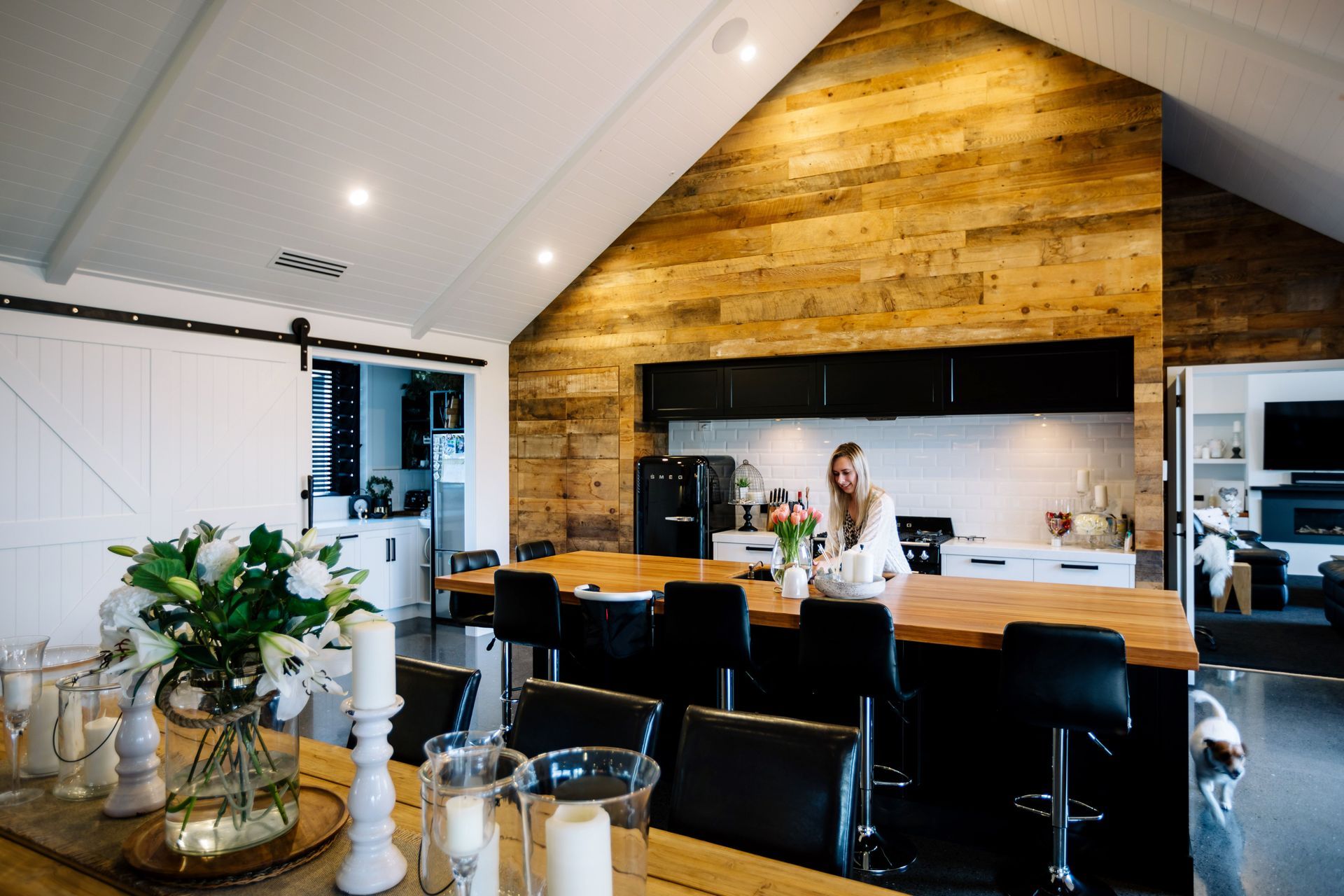 ArchiPro Project Summary - A timeless home blending rustic charm and sophistication with open living spaces, a rich material palette, and a classic black and white exterior for enduring appeal.