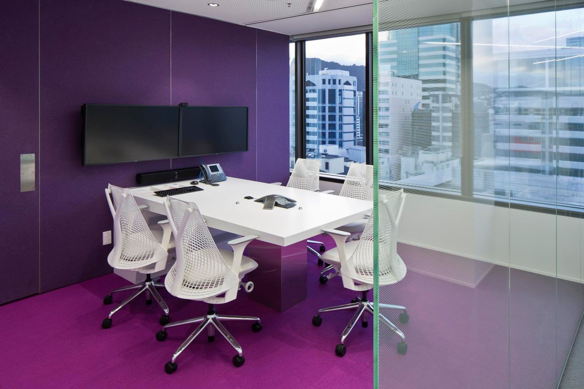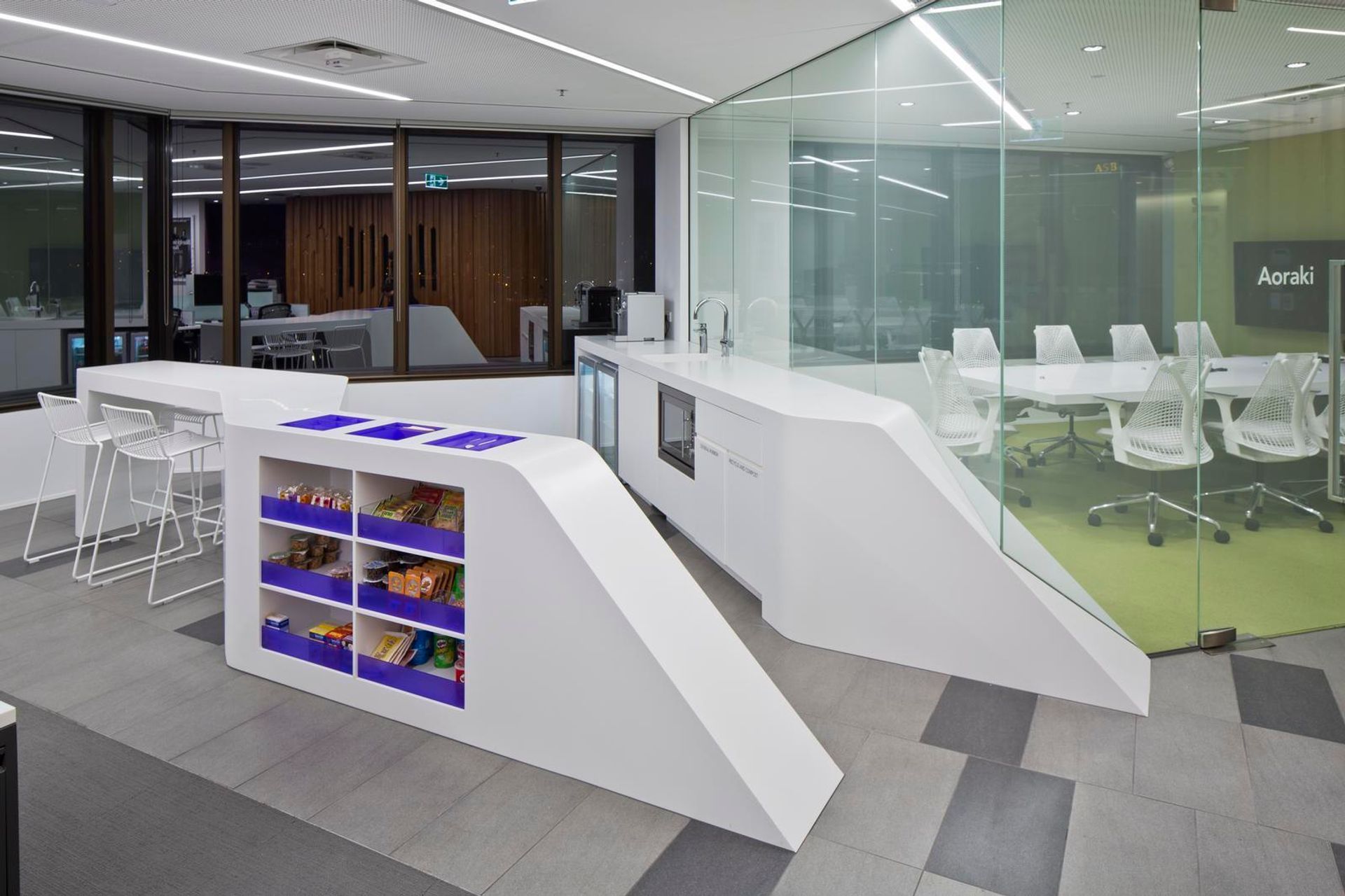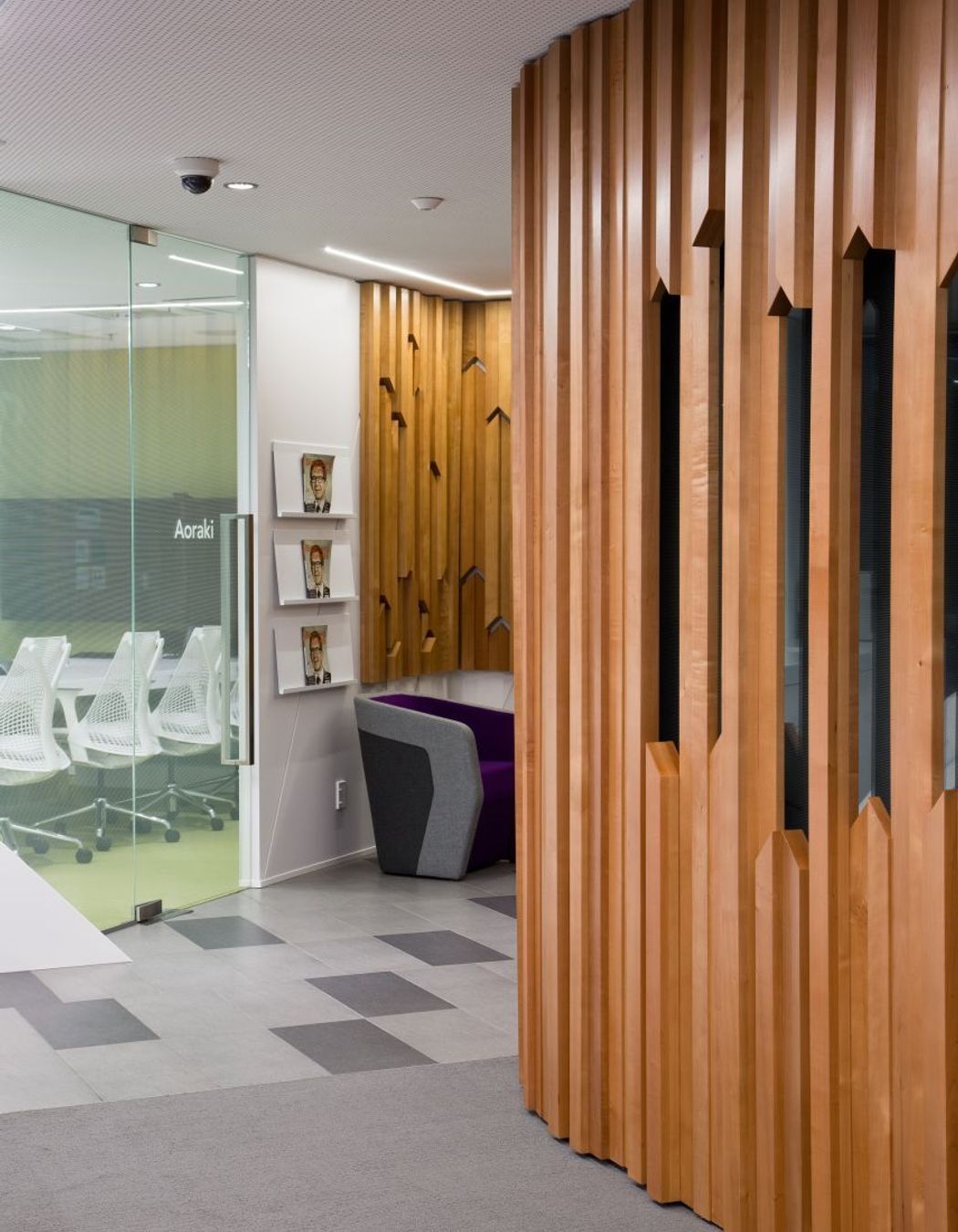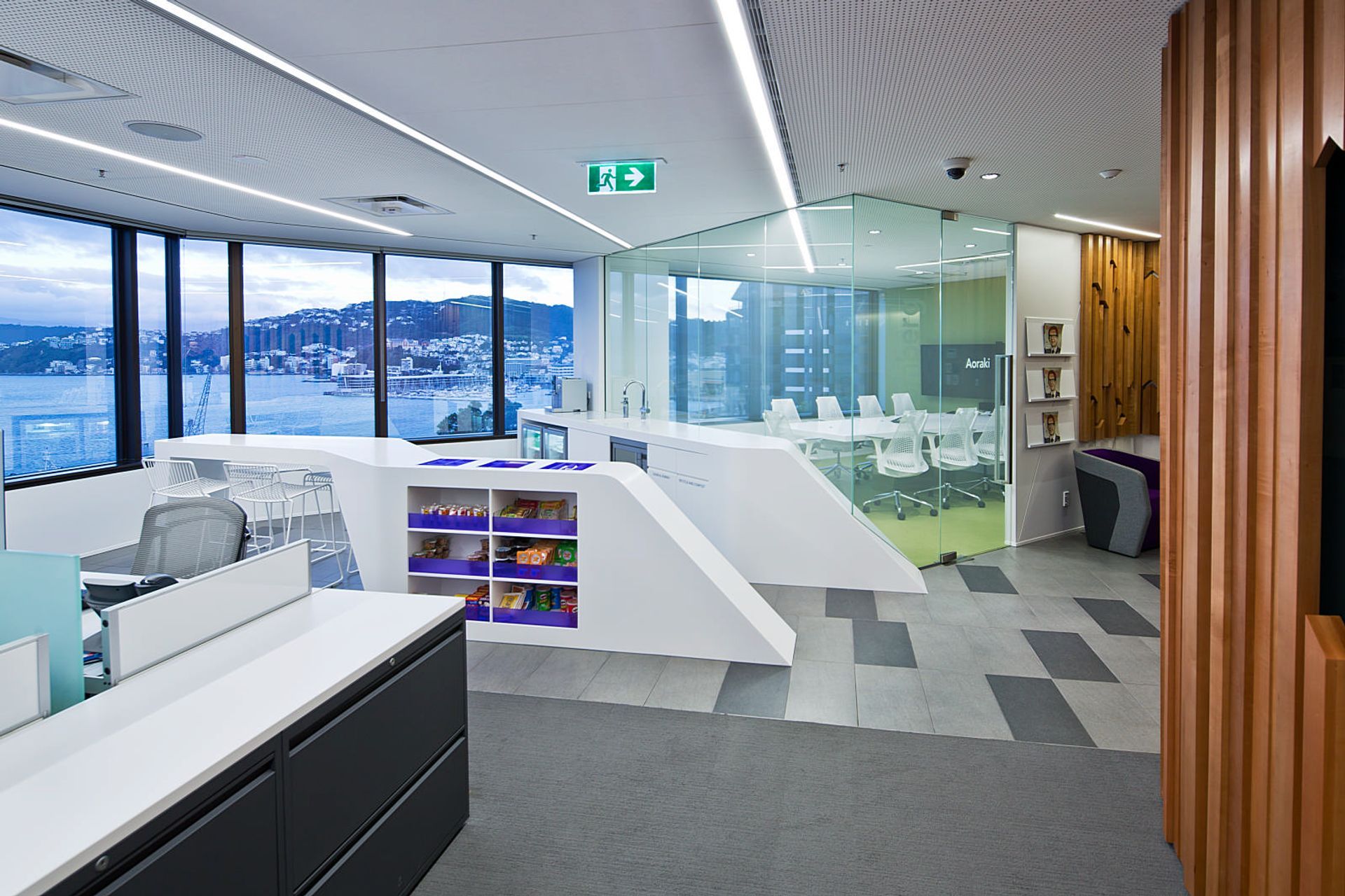ArchiPro Project Summary - A stunning workspace transformation for an internationally renowned corporate, inspired by the natural beauty of Aotearoa, featuring carefully sculptured elements that create an enriched contemporary office interior.