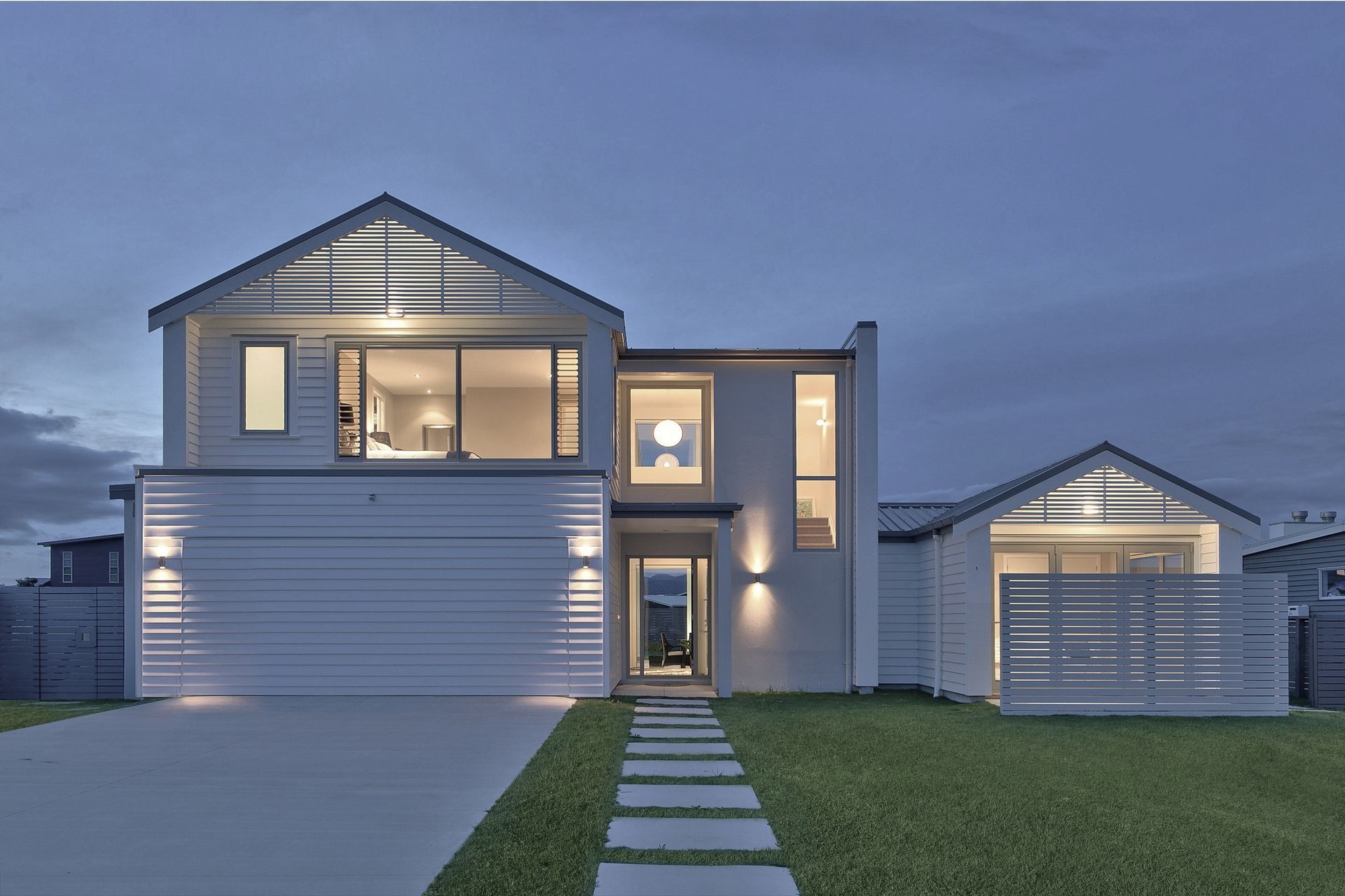 ArchiPro Project Summary - A contemporary holiday home in Omaha featuring a crisp white boathouse design, traditional gable forms, and inviting open-plan living spaces, complemented by self-contained sleeping areas and seamless access to private outdoor spaces.