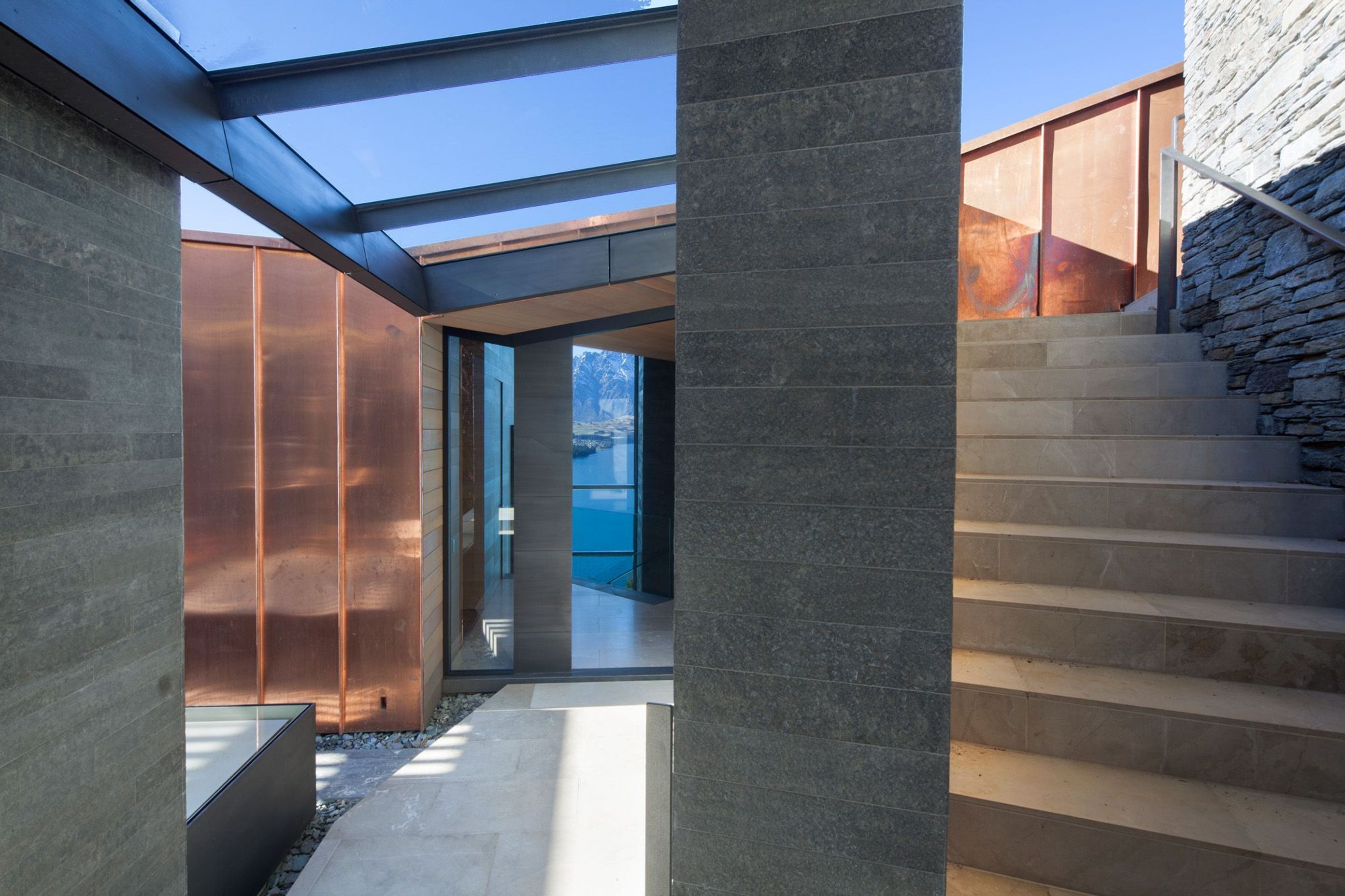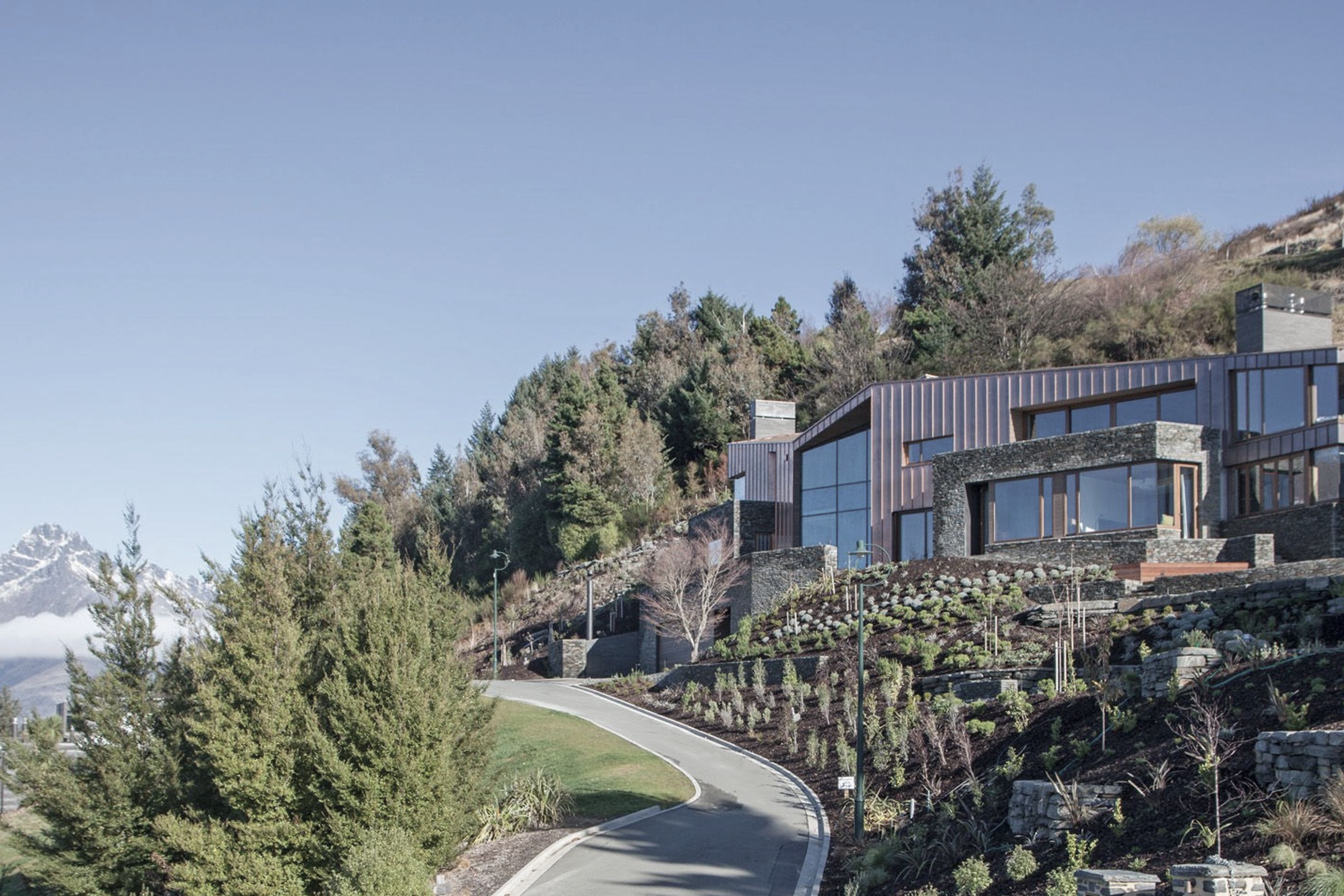 ArchiPro Project Summary - A stunning copper-clad holiday home nestled in the hillside of Lake Wakatipu, designed to harmonize with its natural surroundings while accommodating both intimate and larger gatherings for generations to come.