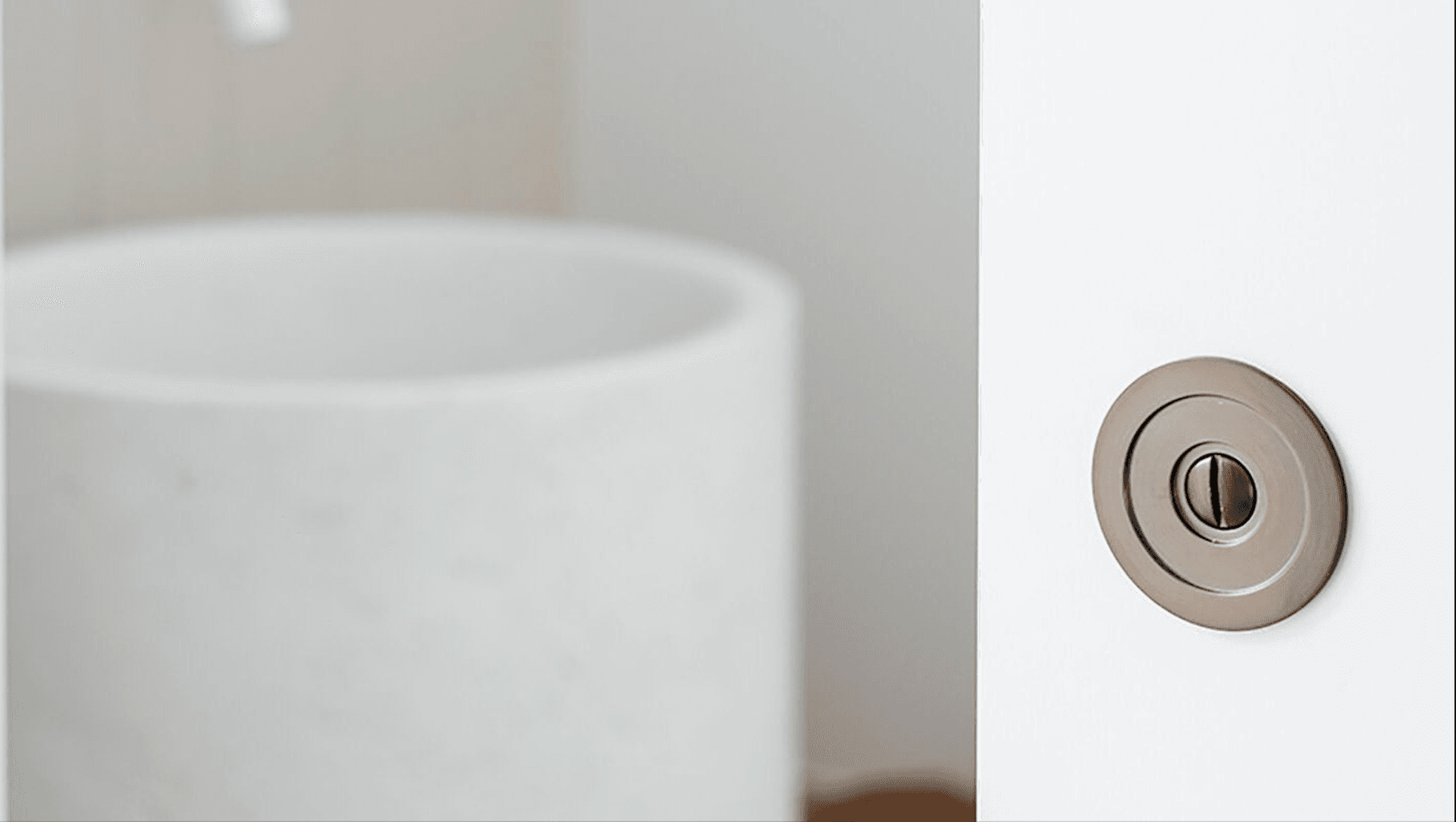 The project features Iver’s Osaka door lever on round rose and our round sliding door pull in signature brass. The understated nature of the Osaka lever complements the minimalist style of the home. For a home that features heavy use of white spaces, the deep tones of our signature brass offer engaging moments and contrasts lighter spaces.