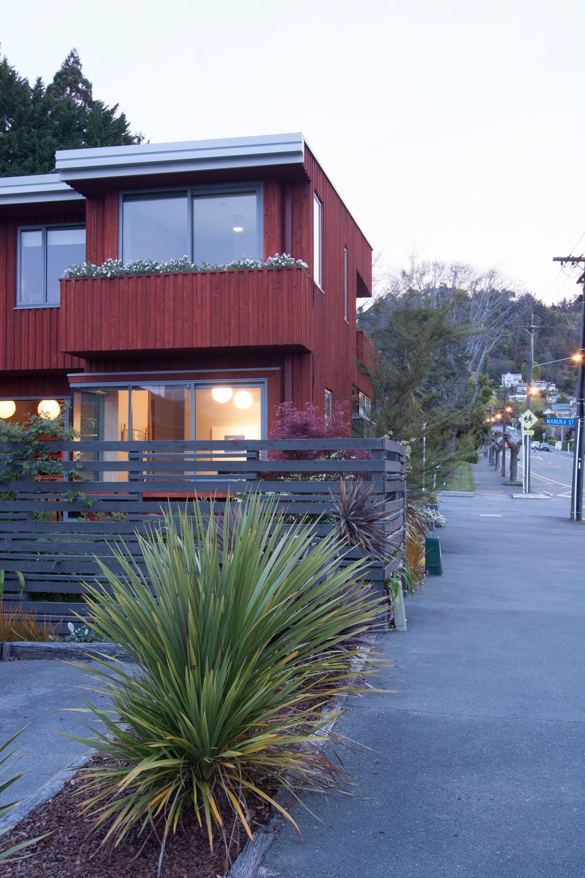 ArchiPro Project Summary - Innovative residential design on a tight corner site in Nelson, featuring enhanced density, passive solar optimization, and a harmonious blend of public and private spaces.