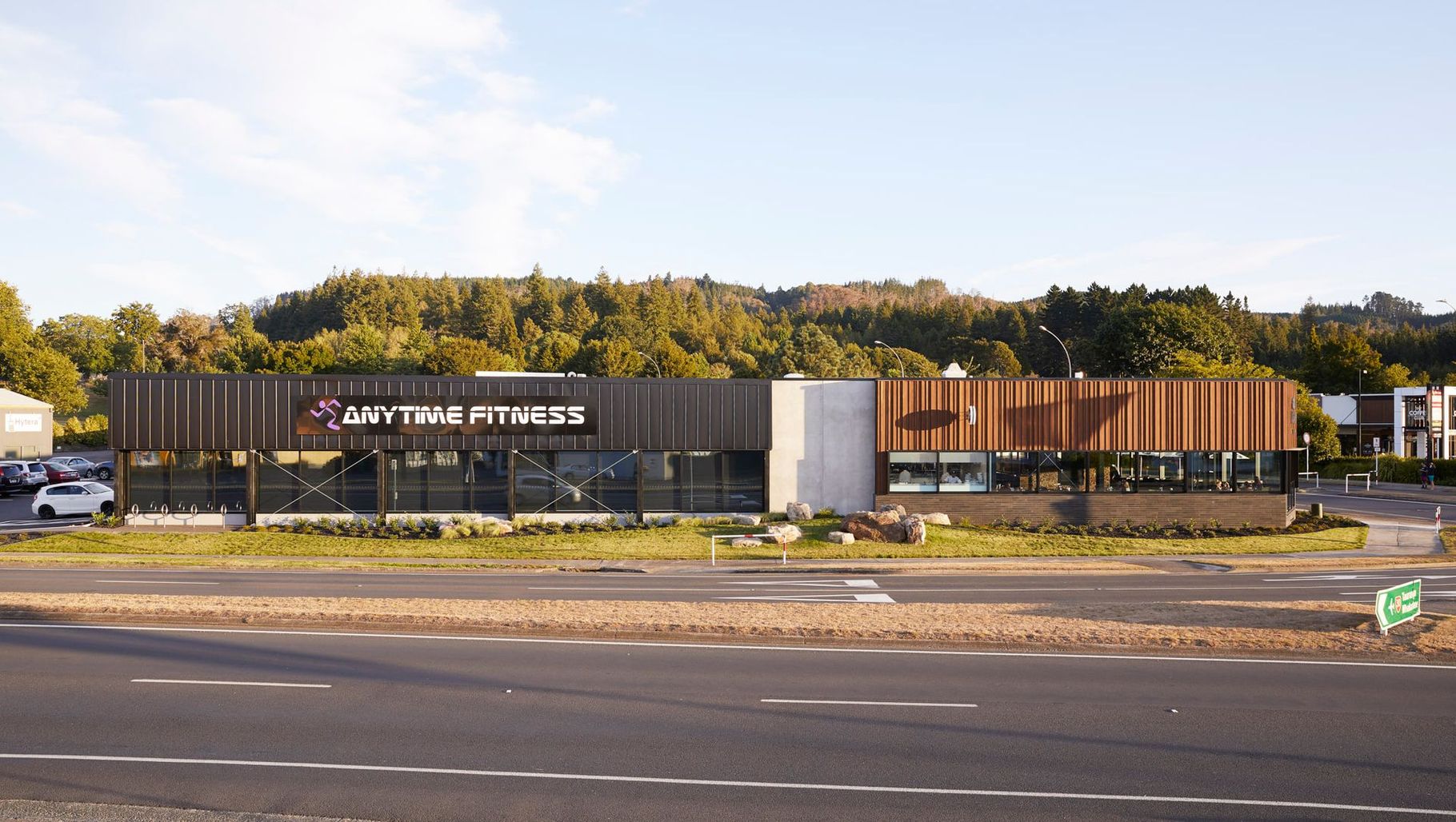 ArchiPro Project Summary - Revitalizing the corner of Te Ngae and Tarawera Roads with a mountain biker-friendly bar/café and Anytime Fitness, this project emphasizes sustainability and community engagement, transforming a historical site into a vibrant hub for fitness and recreation.