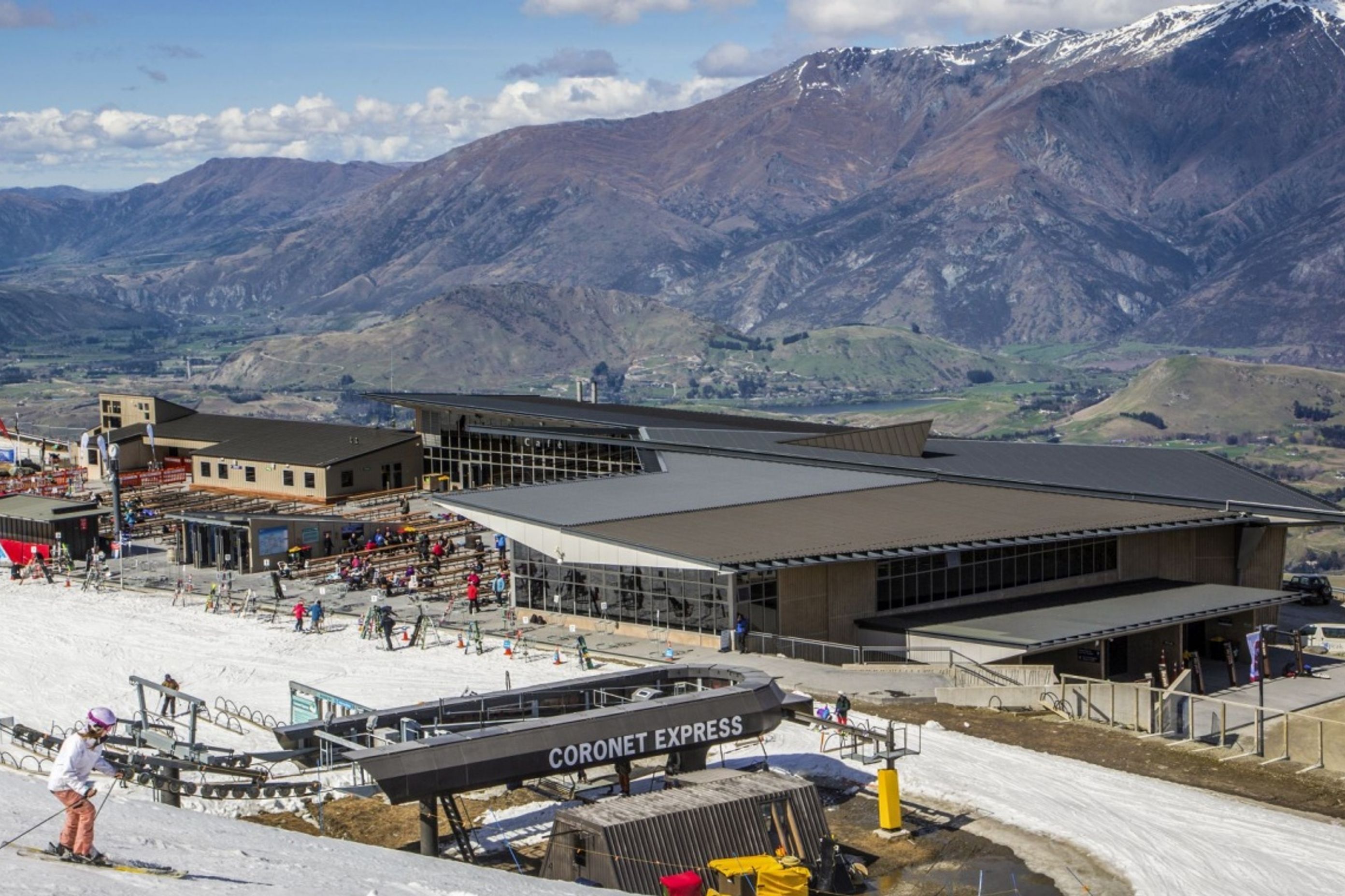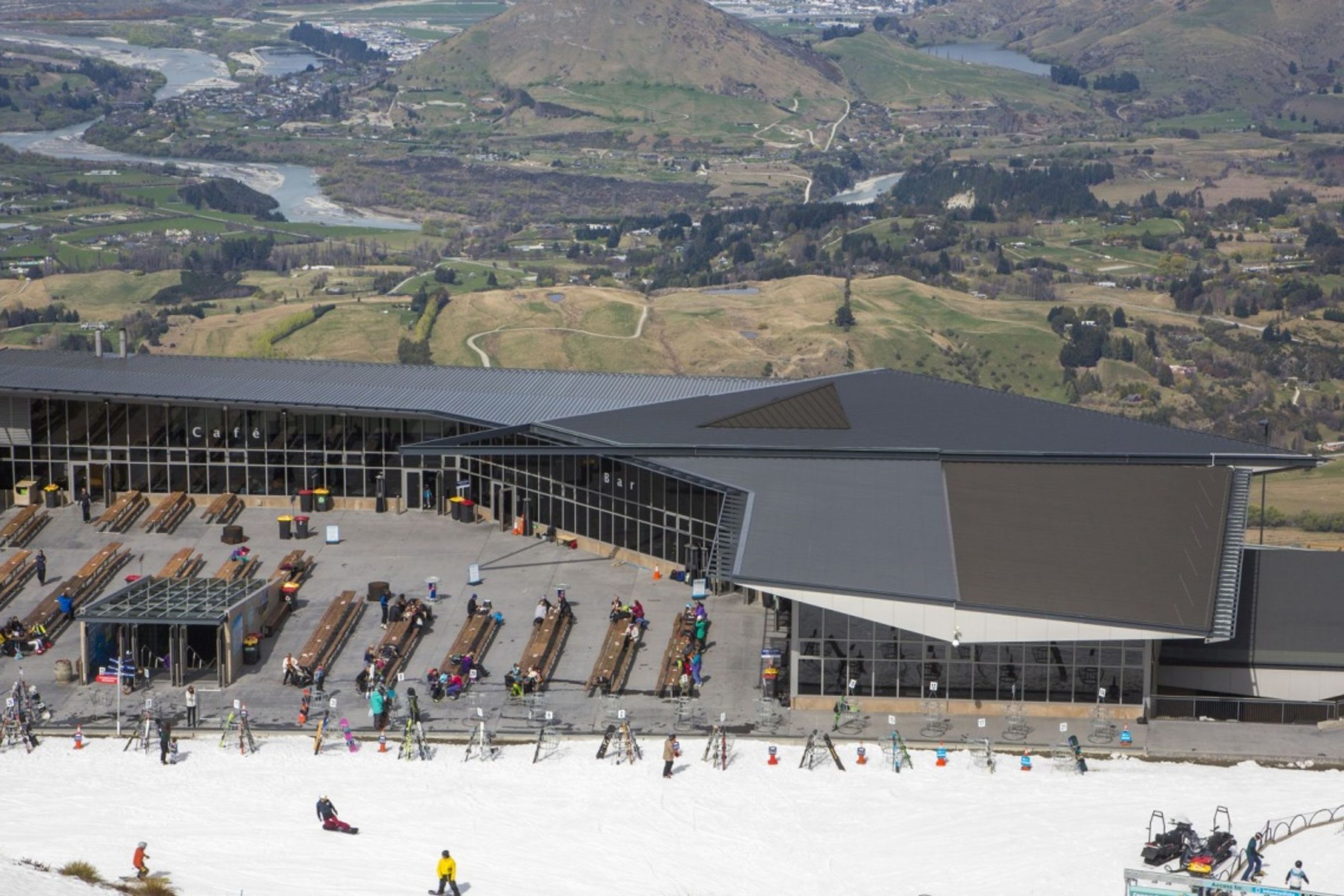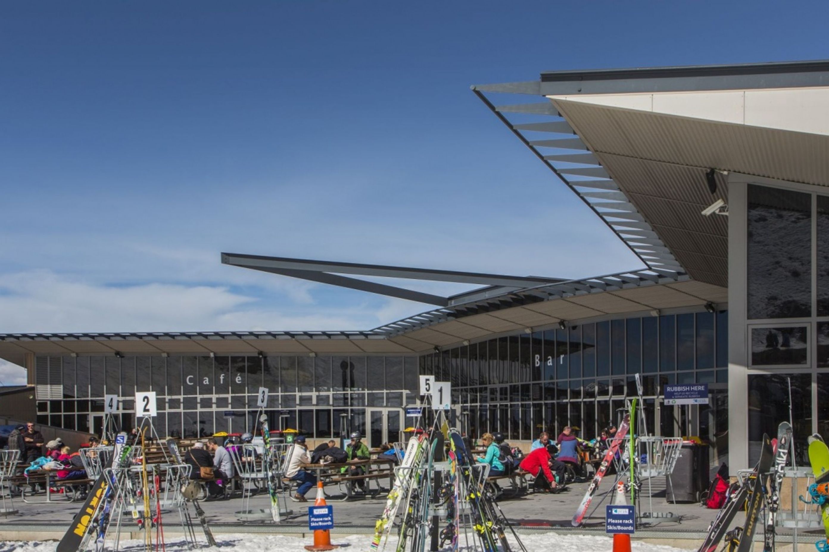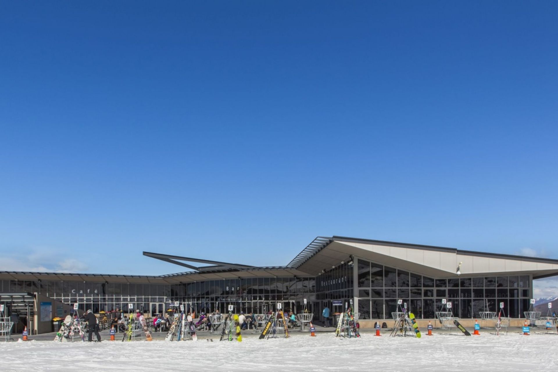 ArchiPro Project Summary - Coronet Peak features a spacious deck and outdoor dining area, catering to diverse skiing needs, complemented by a Koru Club-style facility with lockers. The innovative roof design prevents snow accumulation, enhancing public spaces and ensuring a successful experience for all users.