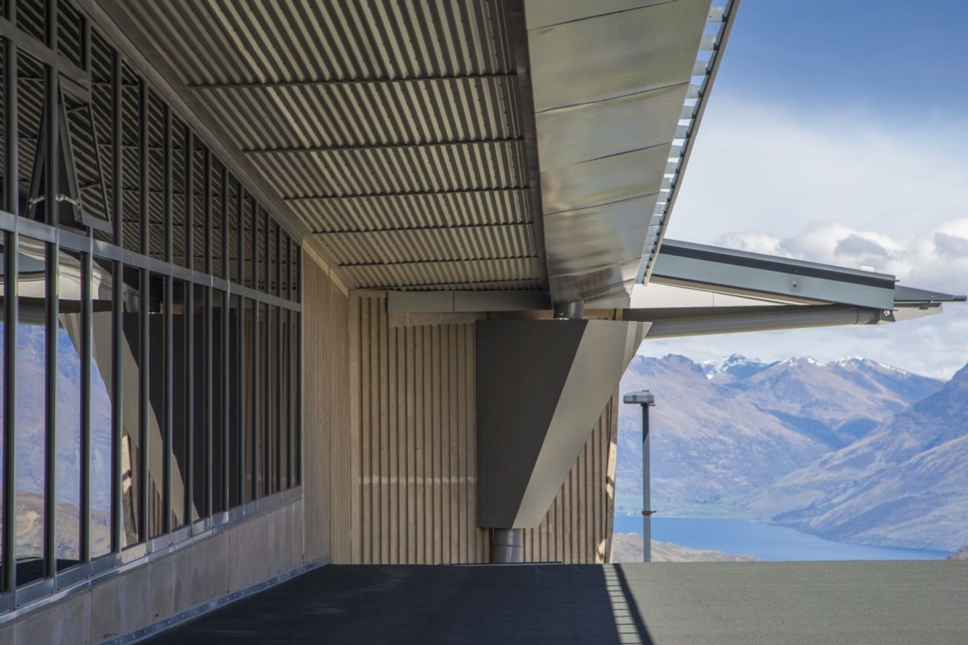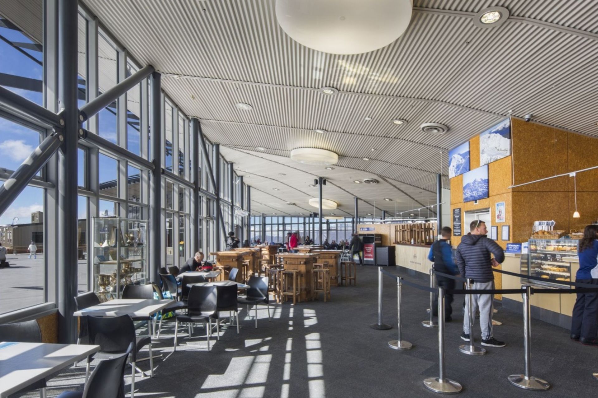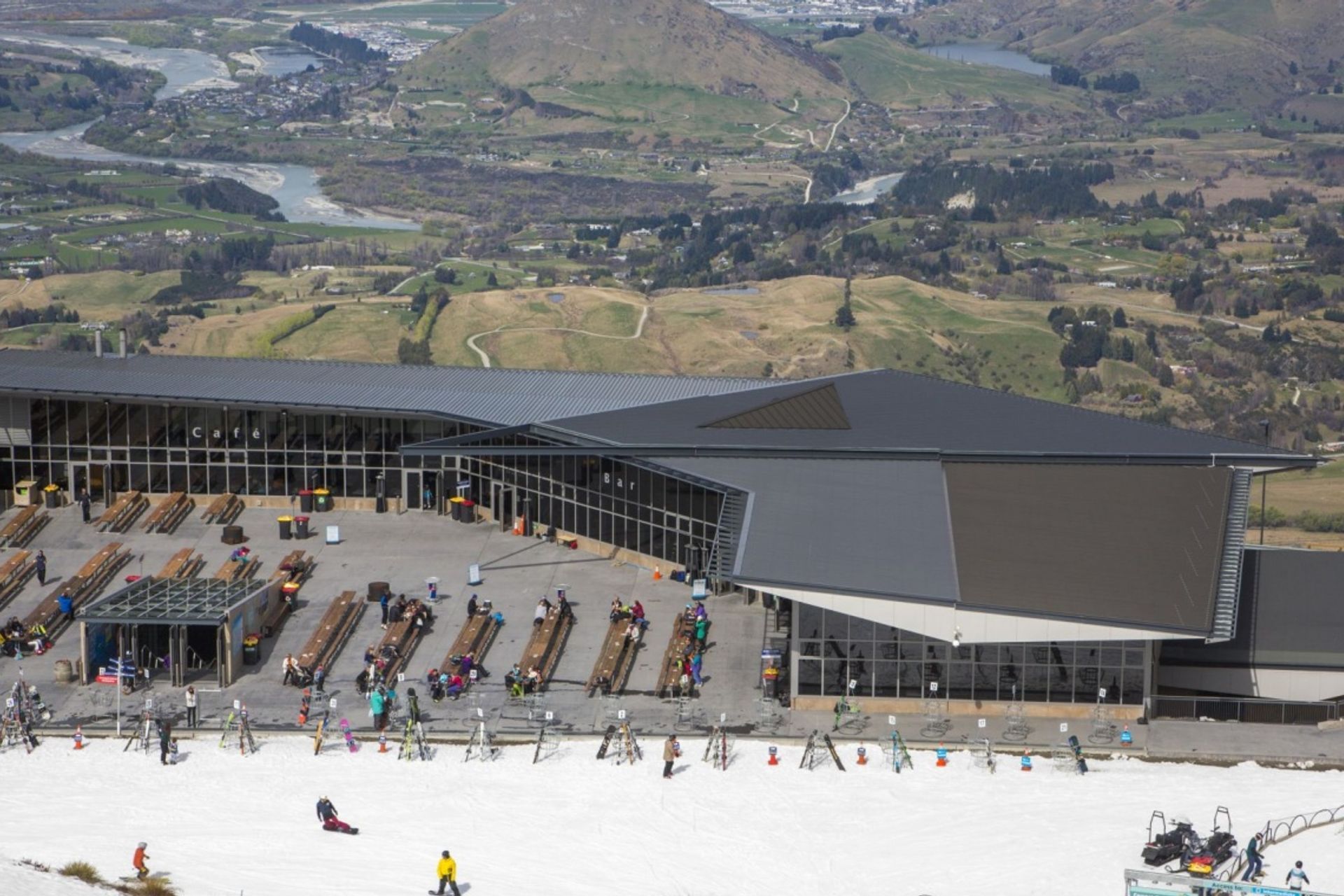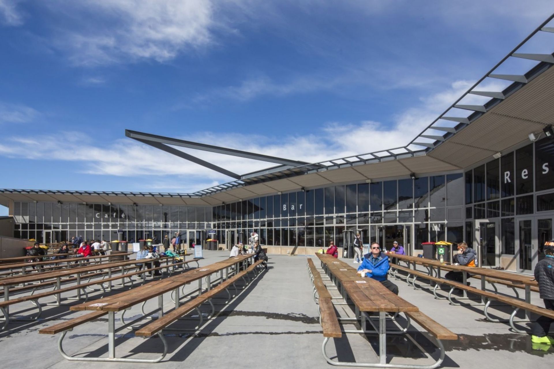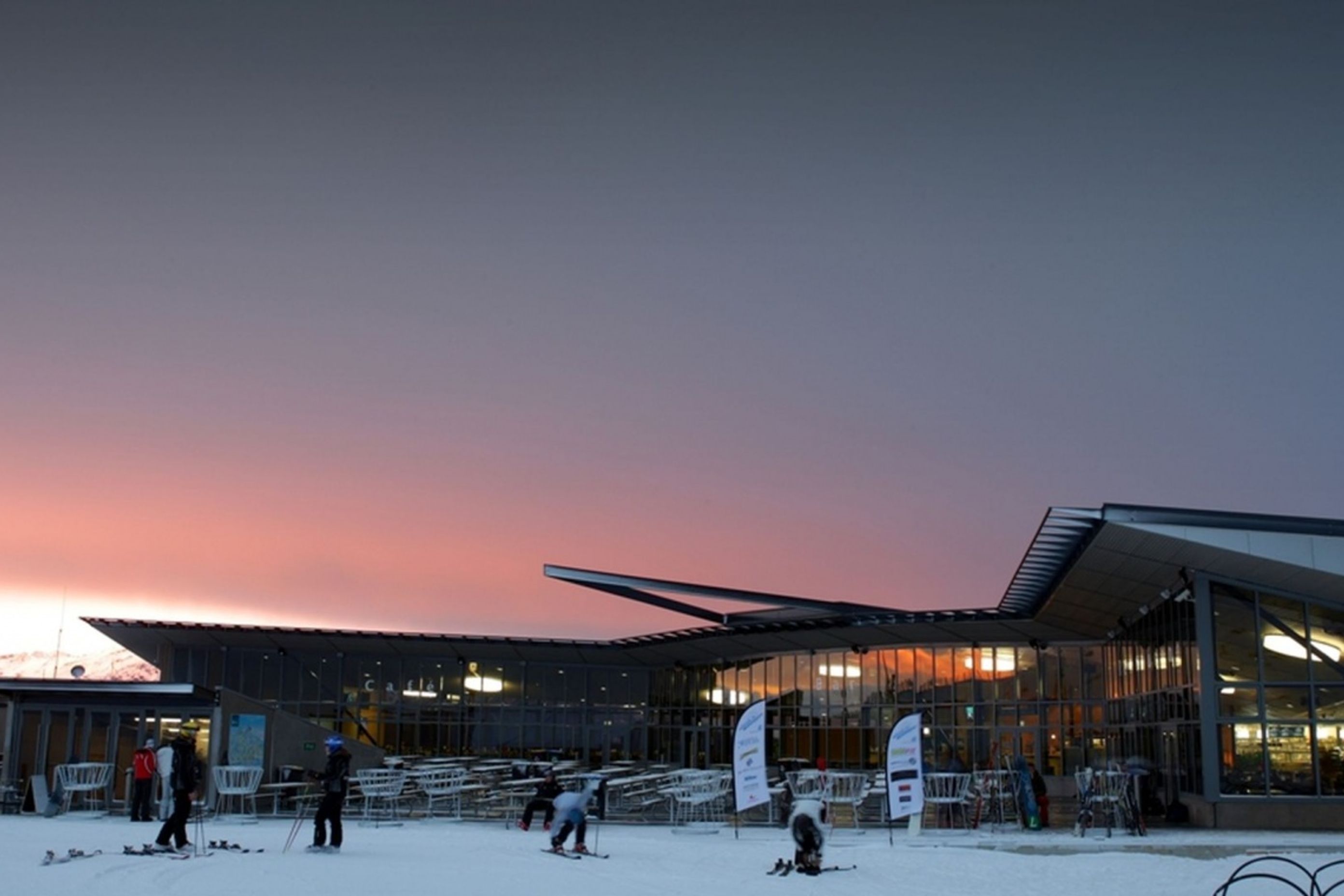 ArchiPro Project Summary - Coronet Peak features a spacious deck and outdoor dining area, catering to diverse skiing needs, complemented by a Koru Club-style facility with lockers. The innovative roof design prevents snow accumulation, enhancing public spaces and ensuring a successful experience for all users.
