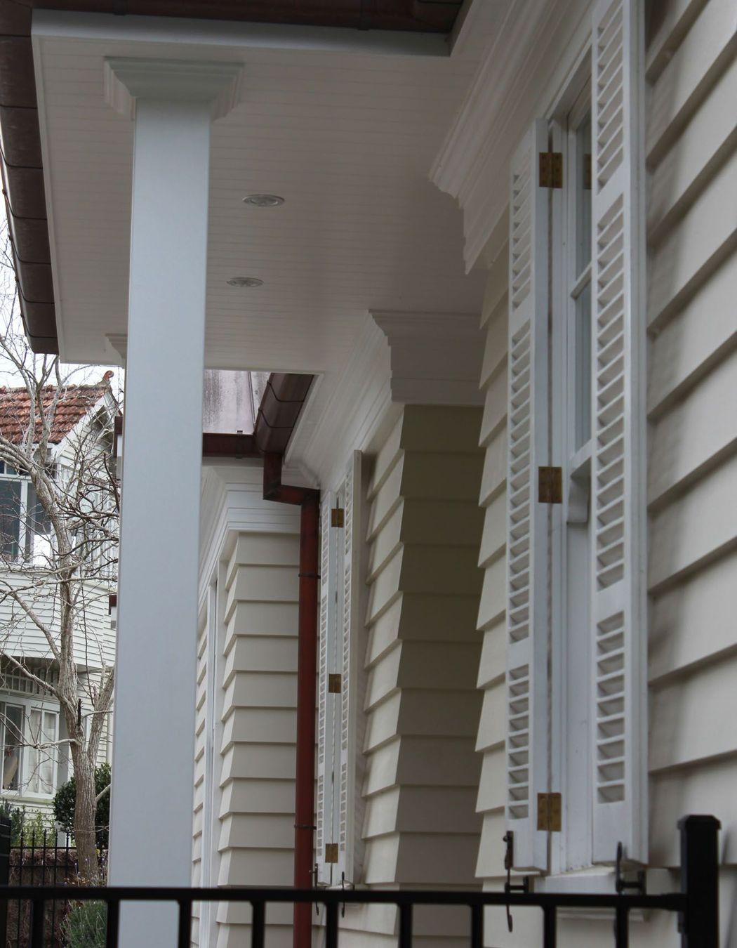 ArchiPro Project Summary - A remarkable transformation of the Corunna Home, featuring a rebuild and addition that blends modern grandeur with the preserved character of the original structure, showcasing expertly restored joinery and reused weatherboards.