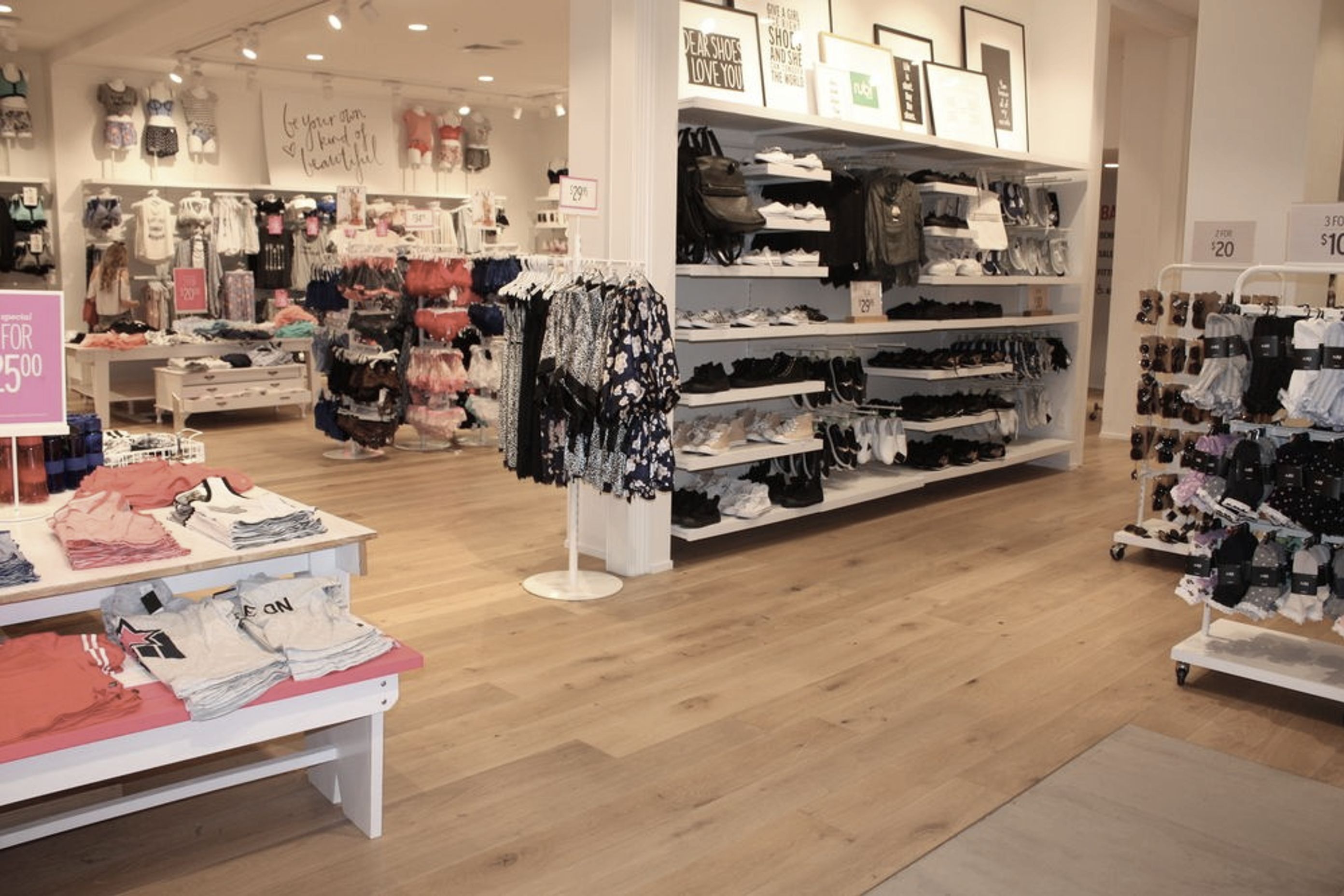 ArchiPro Project Summary - The Cotton On outlet store features modern design elements and high-quality wood flooring, enhancing the shopping experience for customers.