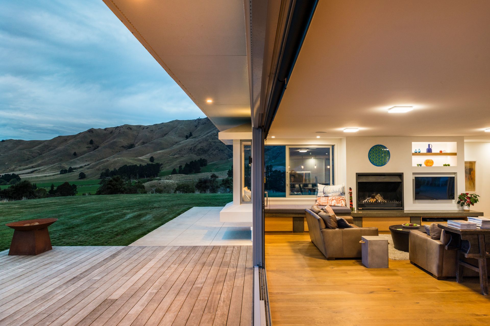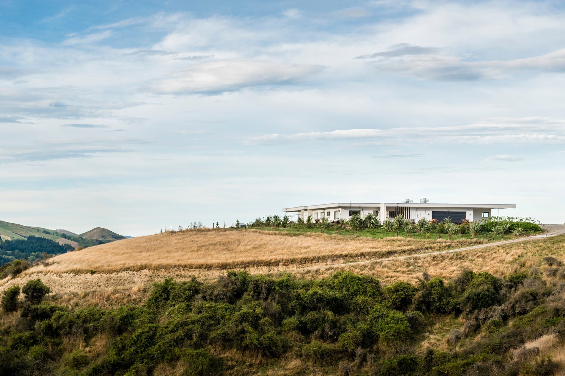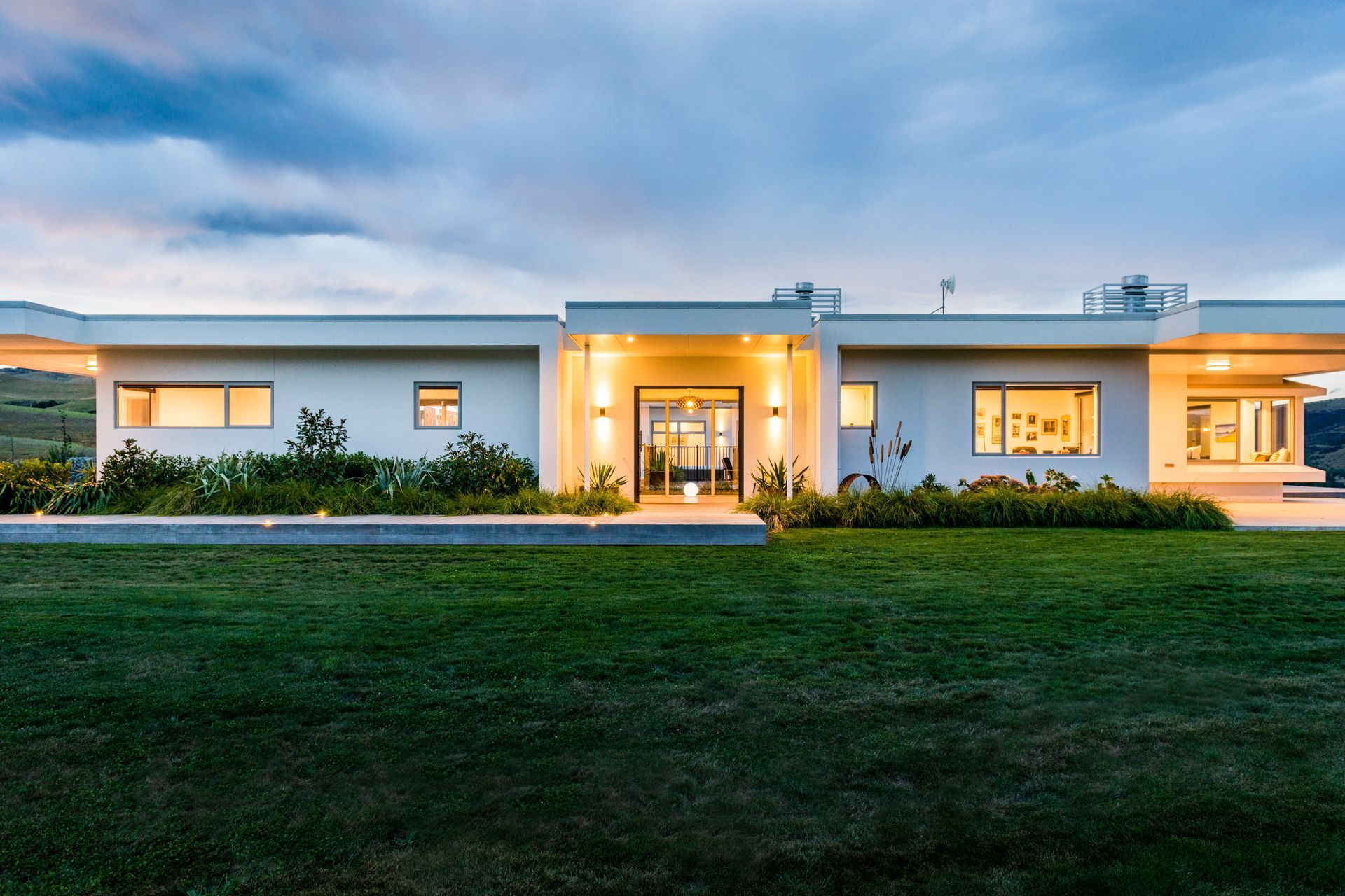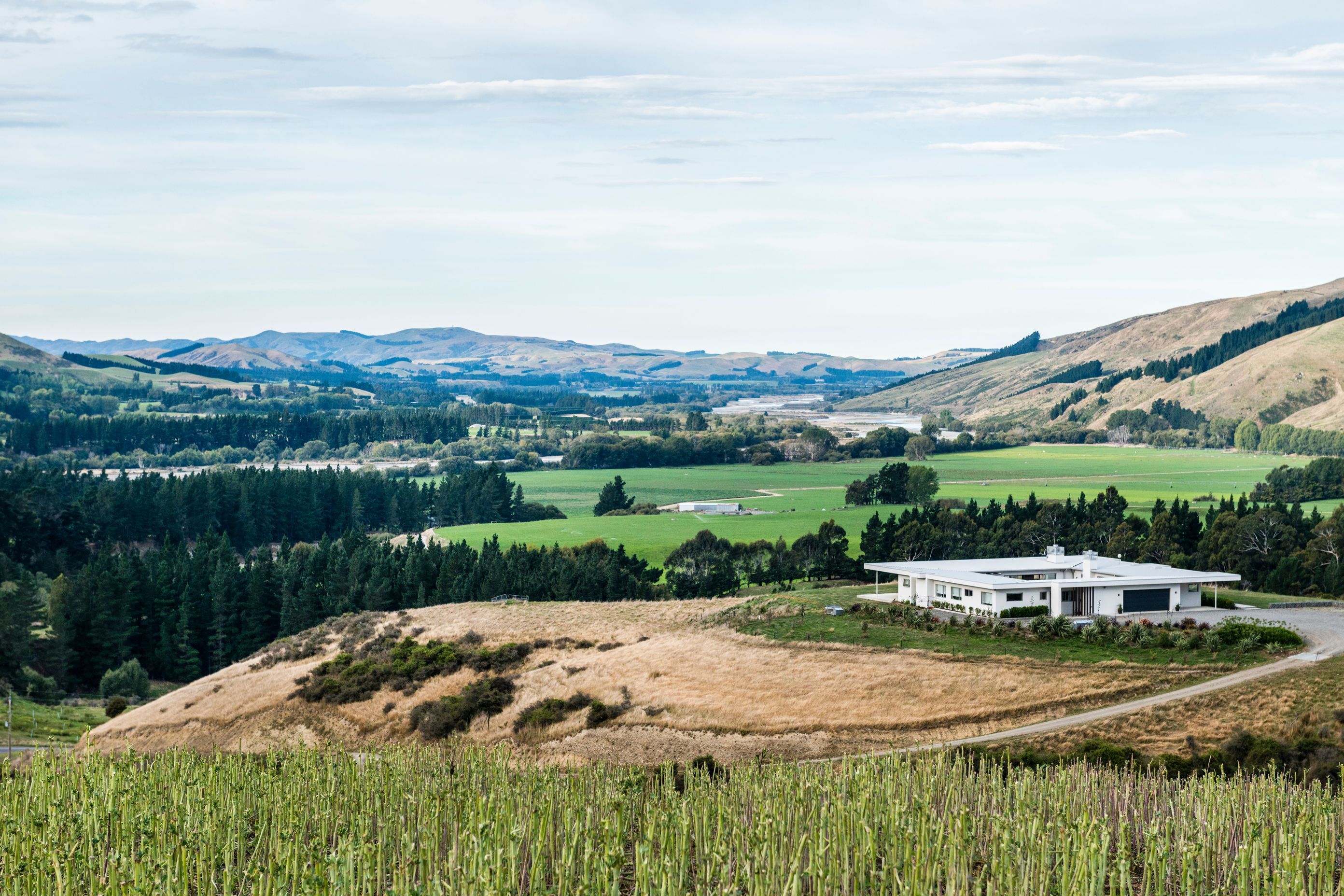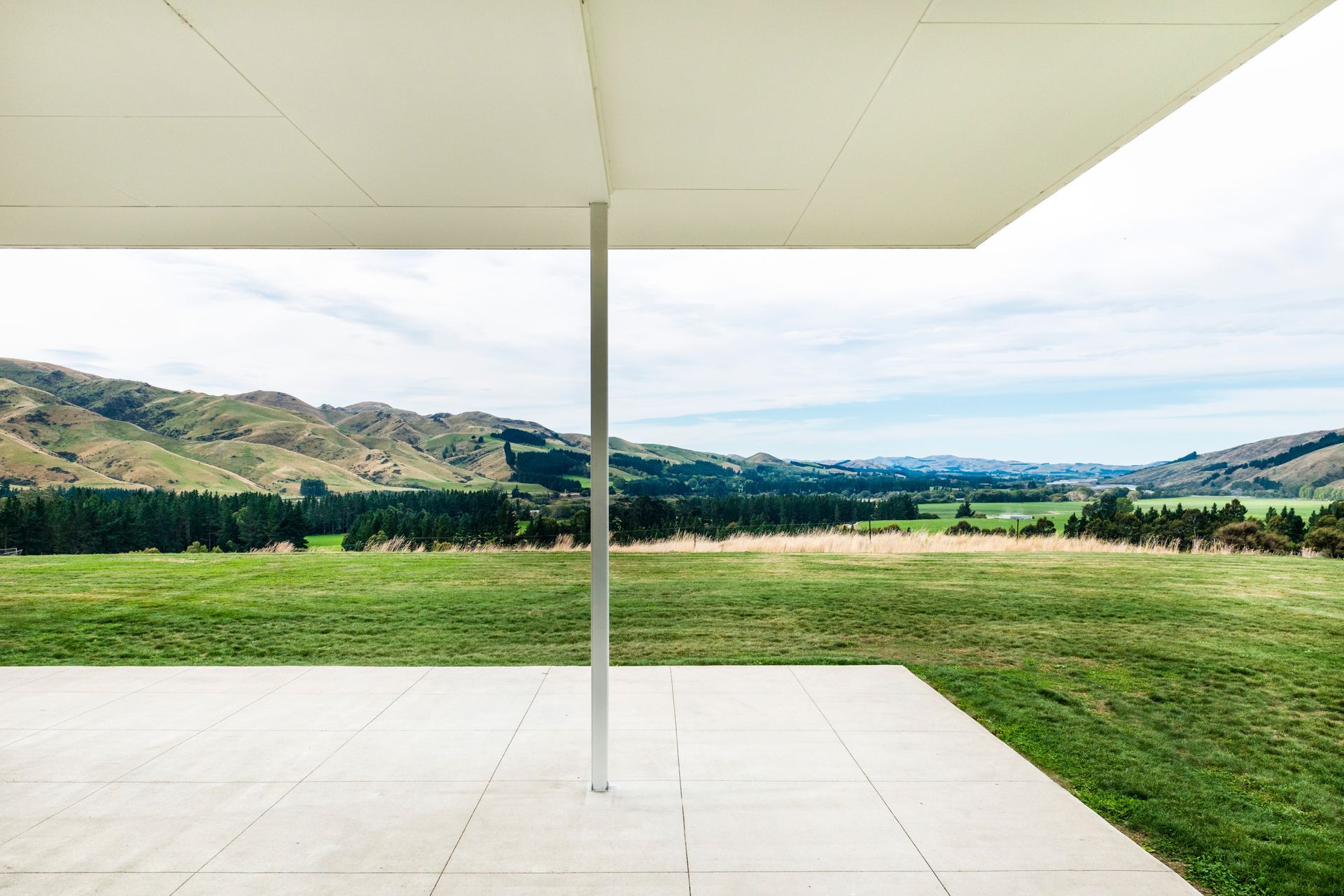 ArchiPro Project Summary - Contemporary home in rural North Canterbury featuring expansive views, a private courtyard with a swimming pool, spa, and outdoor living spaces, all harmoniously integrated with strong architectural lines.