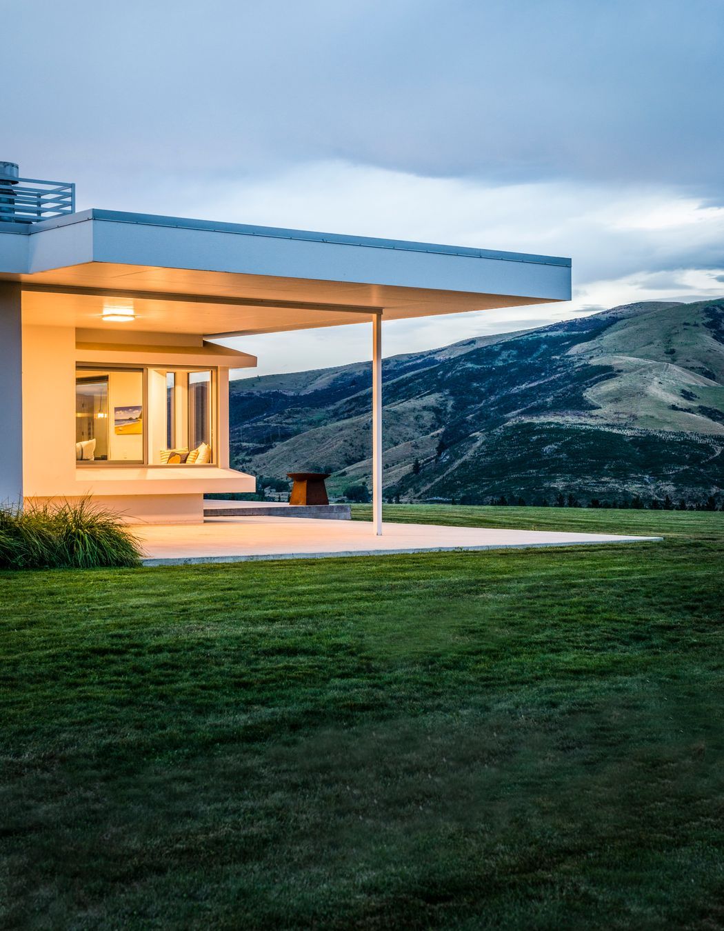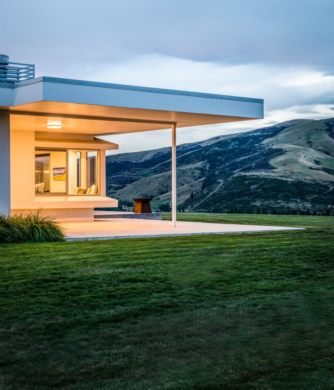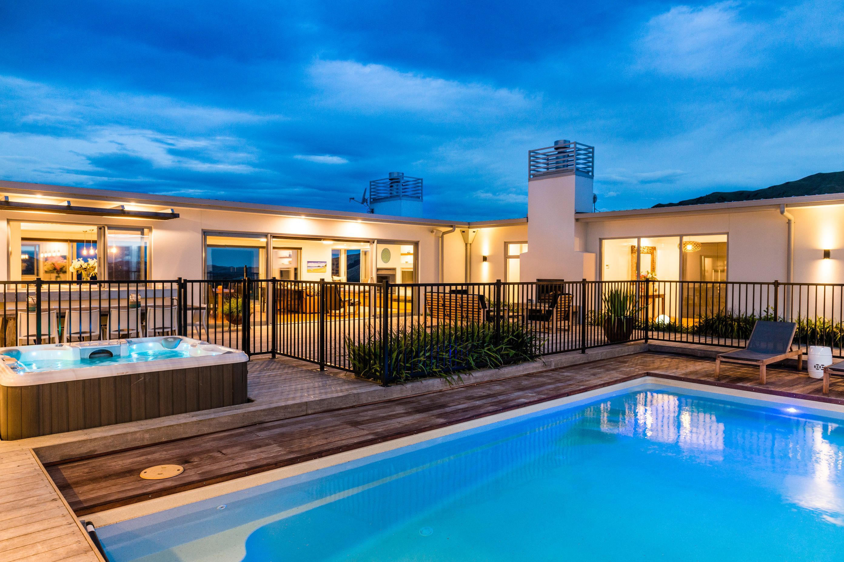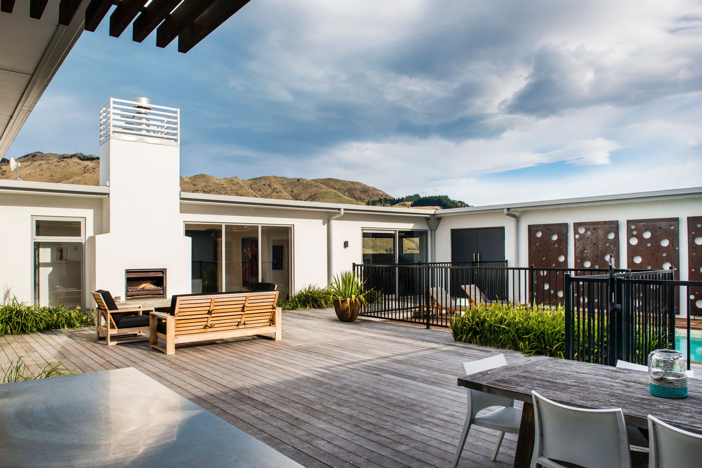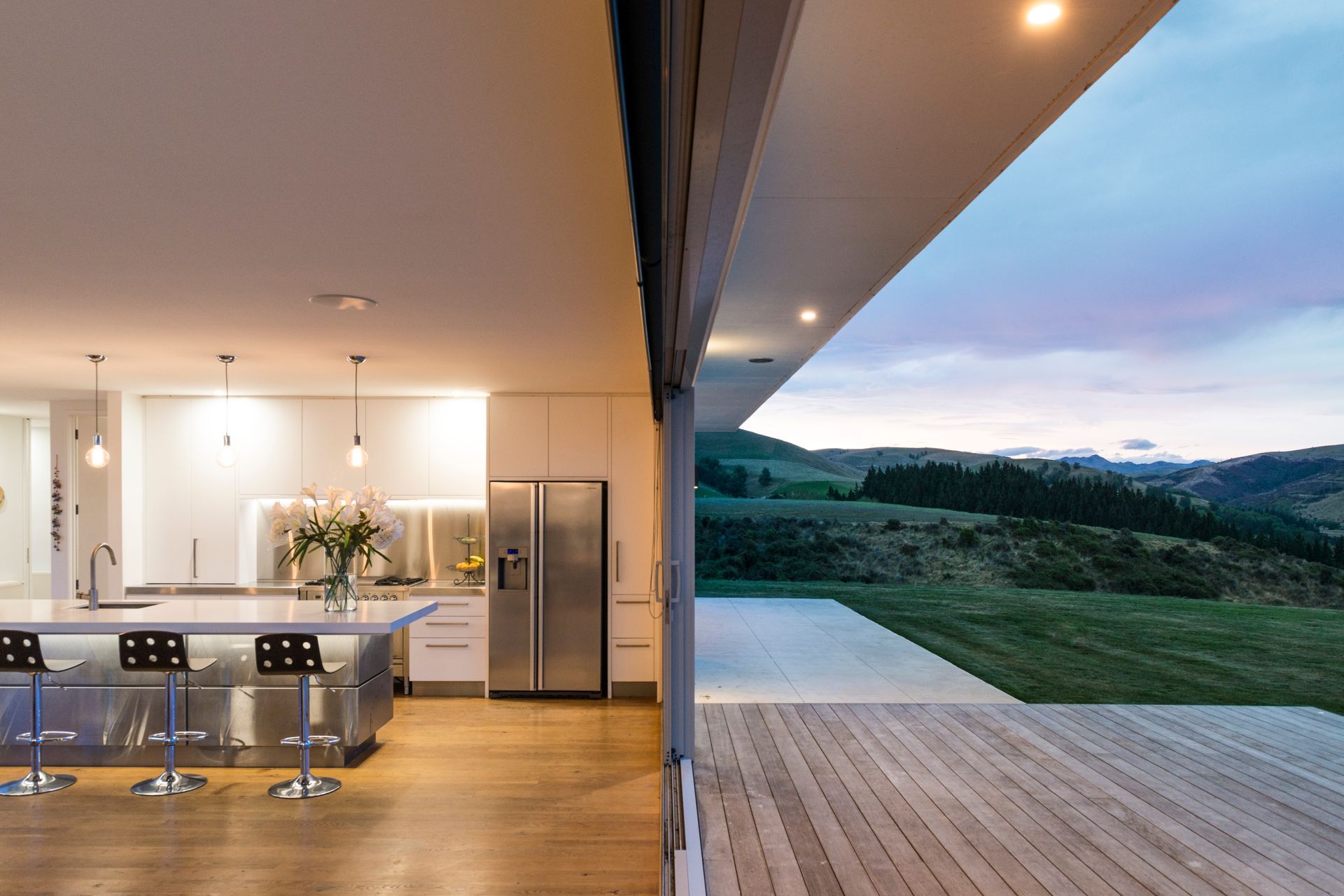 ArchiPro Project Summary - Contemporary home in rural North Canterbury featuring expansive views, a private courtyard with a swimming pool, spa, and outdoor living spaces, all harmoniously integrated with strong architectural lines.