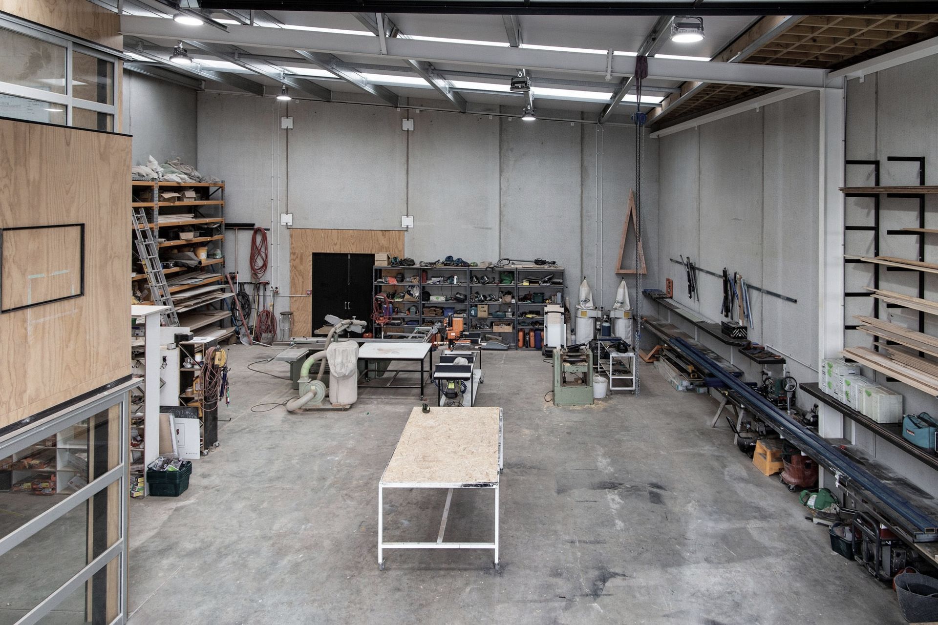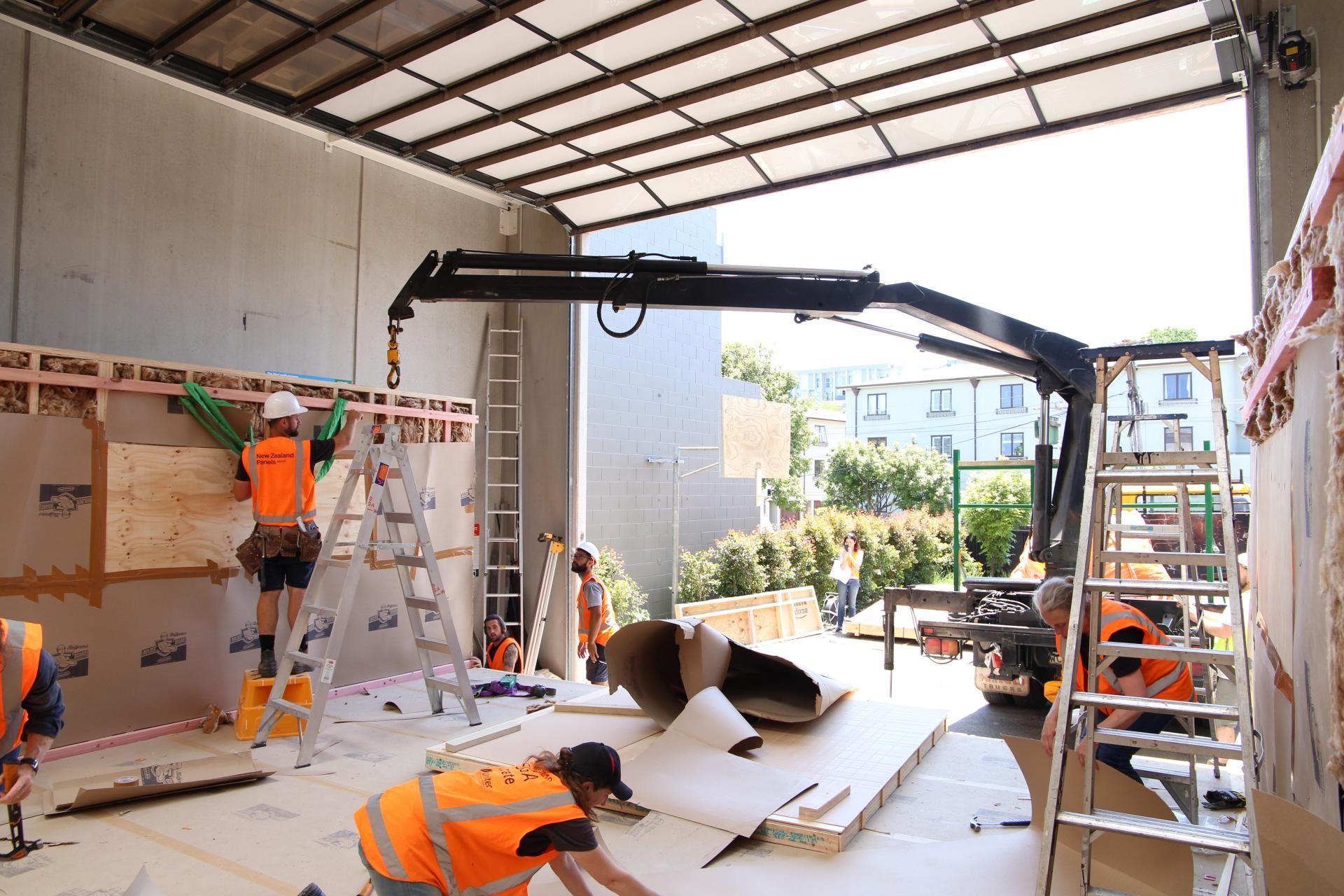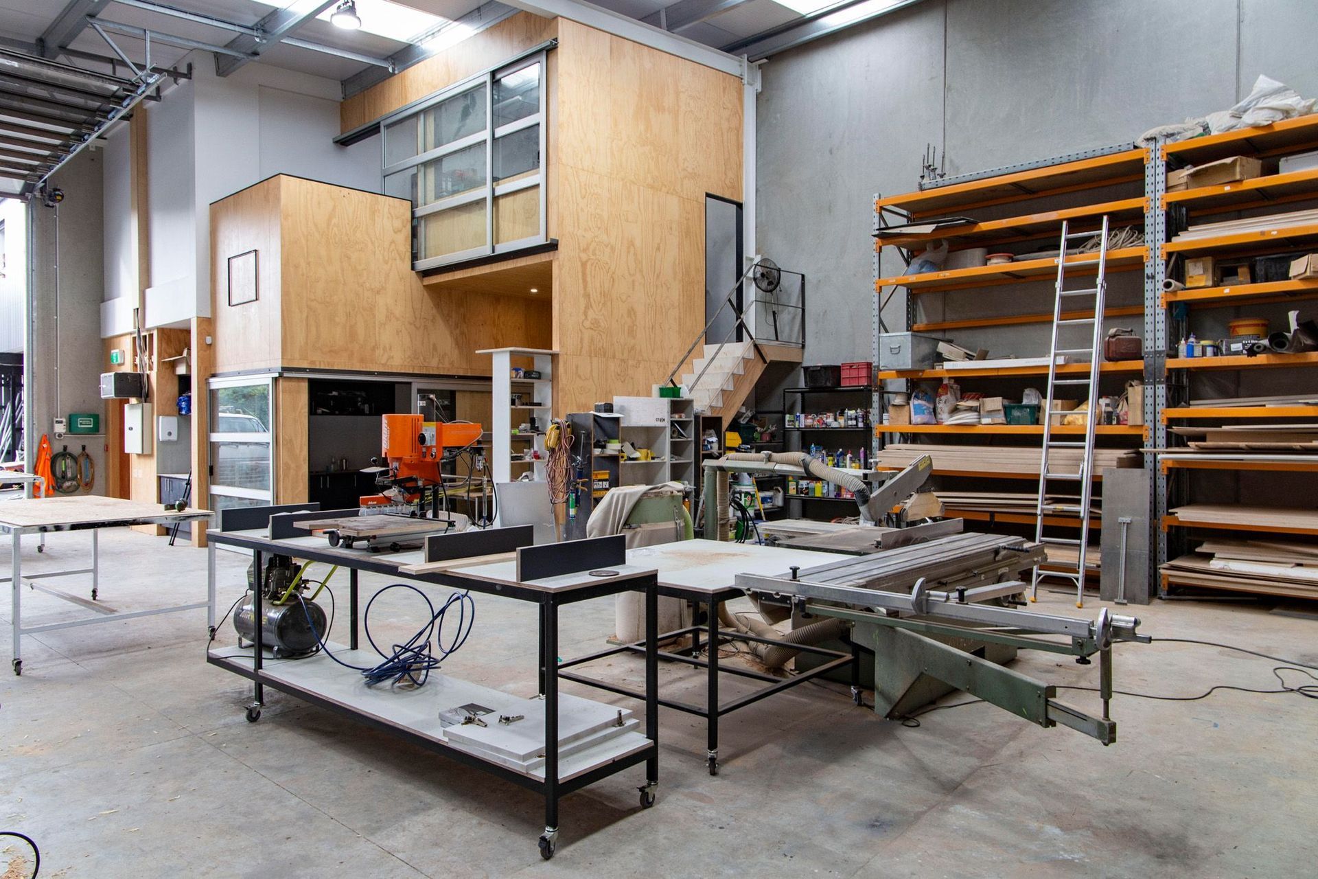 ArchiPro Project Summary - Crate Workshop in Kingsland features a high stud warehouse for off-site fabrication and prefabrication of building components, including framing, steel fabrication, joinery, and cabinetry, covering an area of 250 sqm.