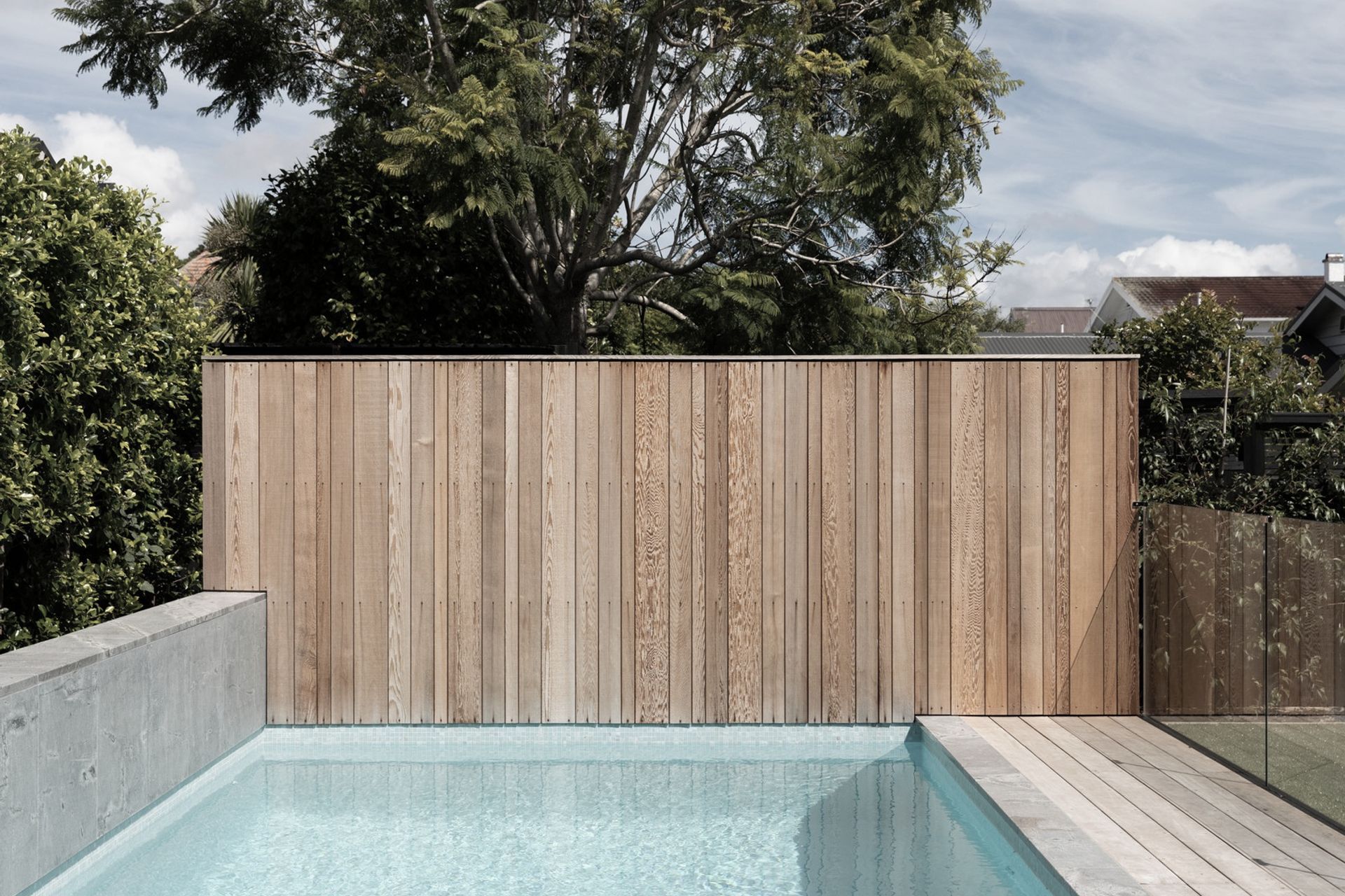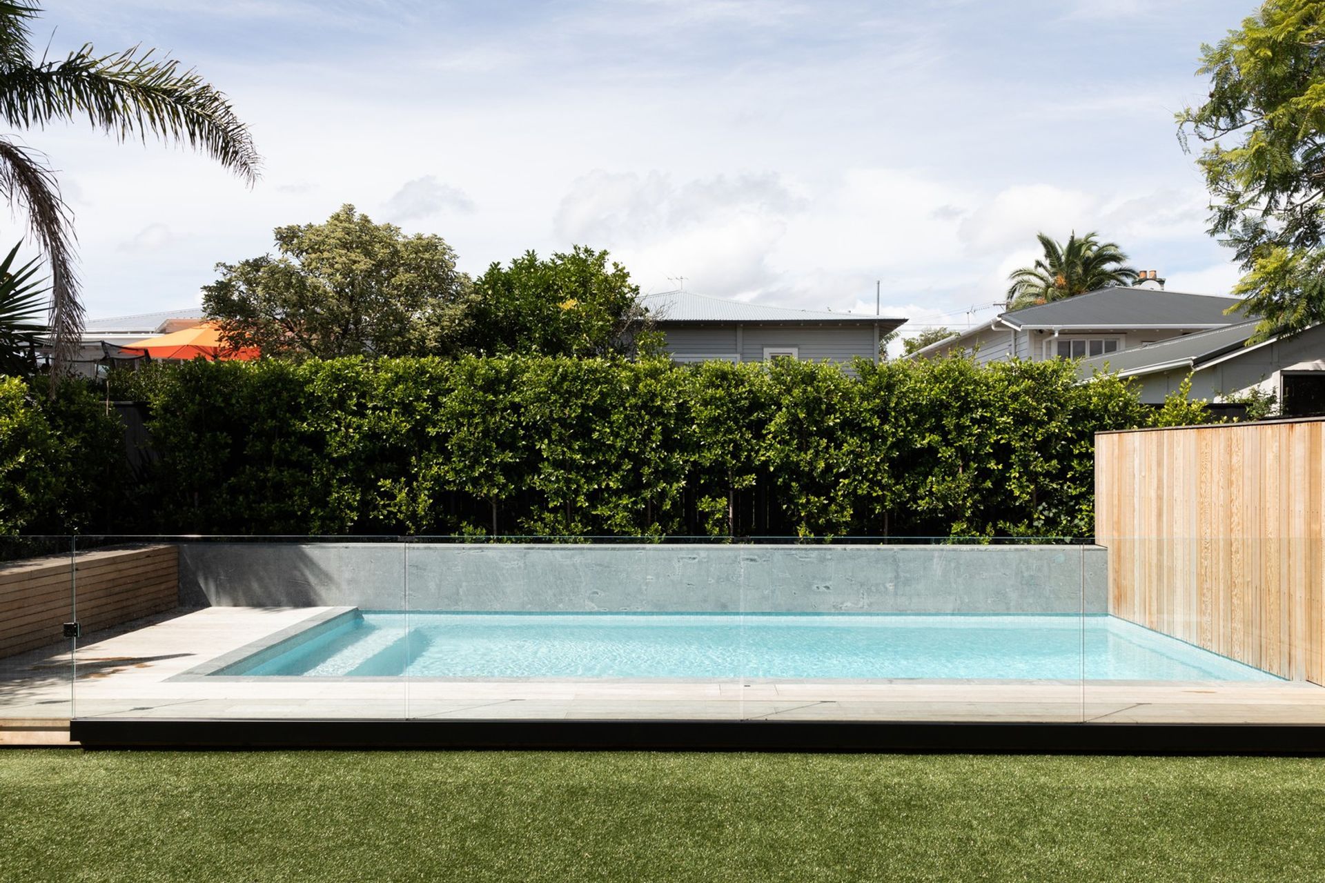 ArchiPro Project Summary - A stylish and functional pool design for a young family in Westmere, featuring an attractive screen wall to discreetly conceal pool equipment, perfect for cooling off on hot days.