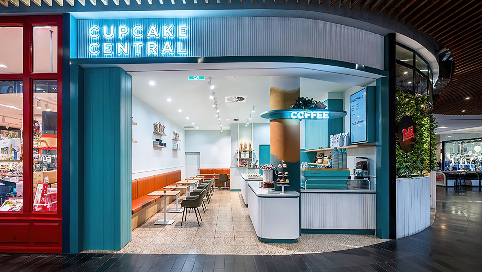 ArchiPro Project Summary - A whimsical bakery cafe in High Point, Melbourne, featuring marshmallow interiors, a pale green color scheme, tan velvet banquette seating, and vibrant terrazzo tiles, creating a warm and inviting atmosphere for indulging in delightful cupcakes and sweet treats.