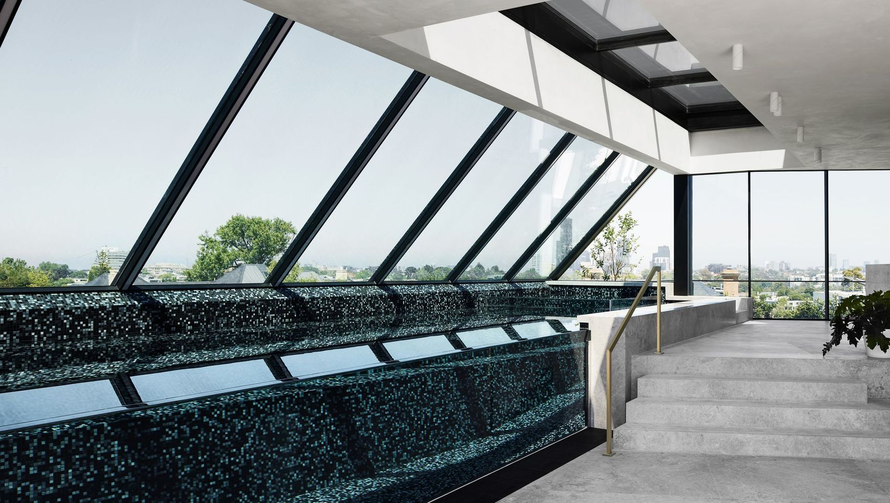 ArchiPro Project Summary - Curatorial House Pool and Spa seamlessly integrates art and interiors, featuring exquisite construction details, playful materials, a soothing color palette, and striking acrylic panels that create a reflective, sculpture-like environment.