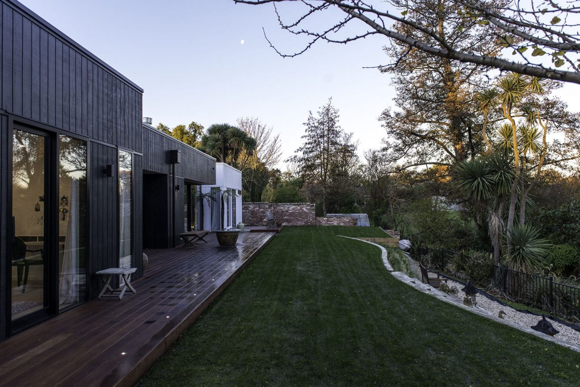 ArchiPro Project Summary - A contemporary dwelling in Christchurch, designed with sustainable methods and a focus on passive solar gain, featuring a harmonious blend of timber, glass, concrete, and stone, all while nestled alongside a picturesque stream.
