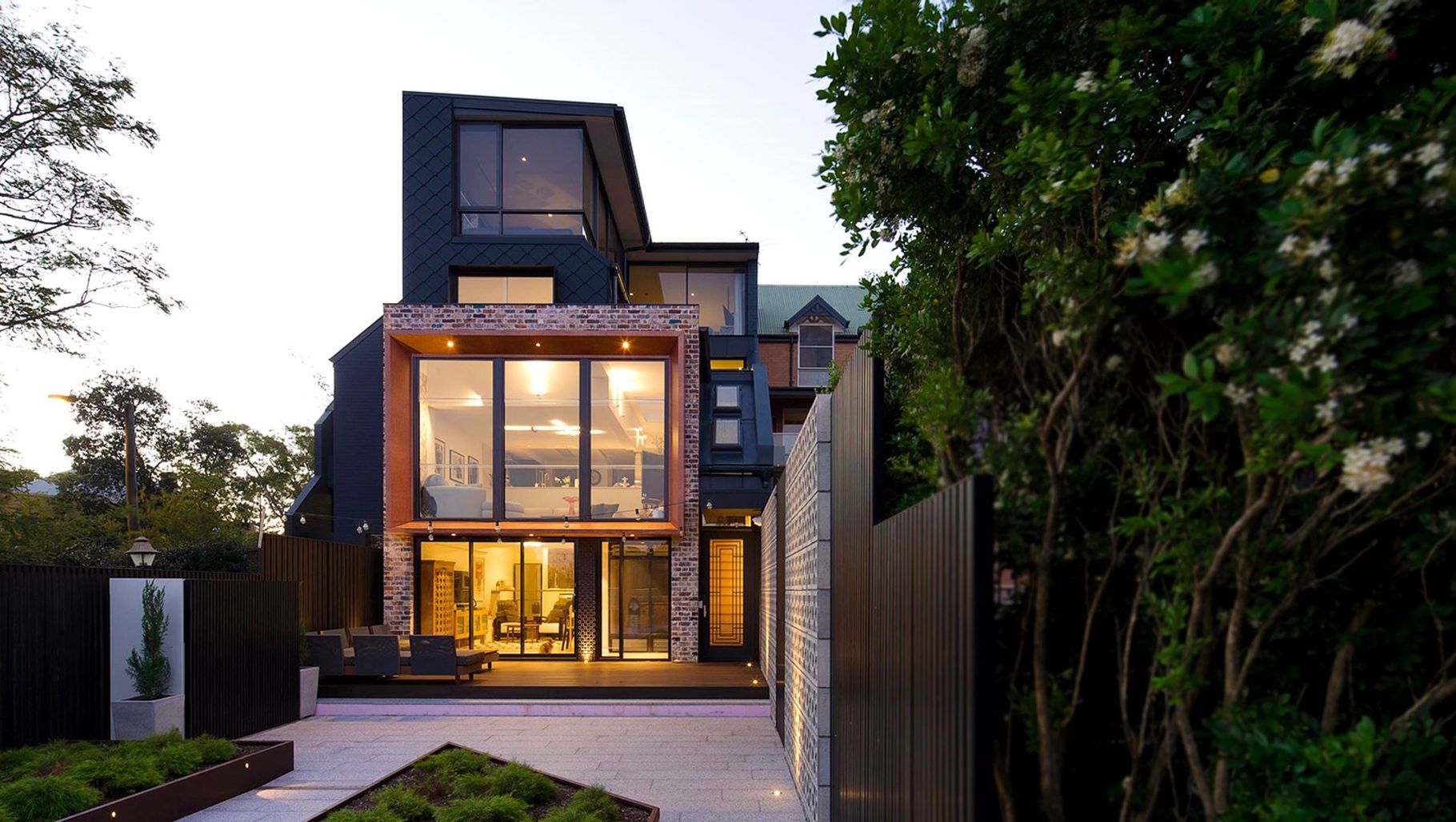ArchiPro Project Summary - Bespoke renovation of a four-storey terrace in Balmain, featuring a stunning copper framed window, custom timber panelling, antique mirror columns, and elegant parquetry floors, all designed to maximize the breathtaking views and create a perfect family home.