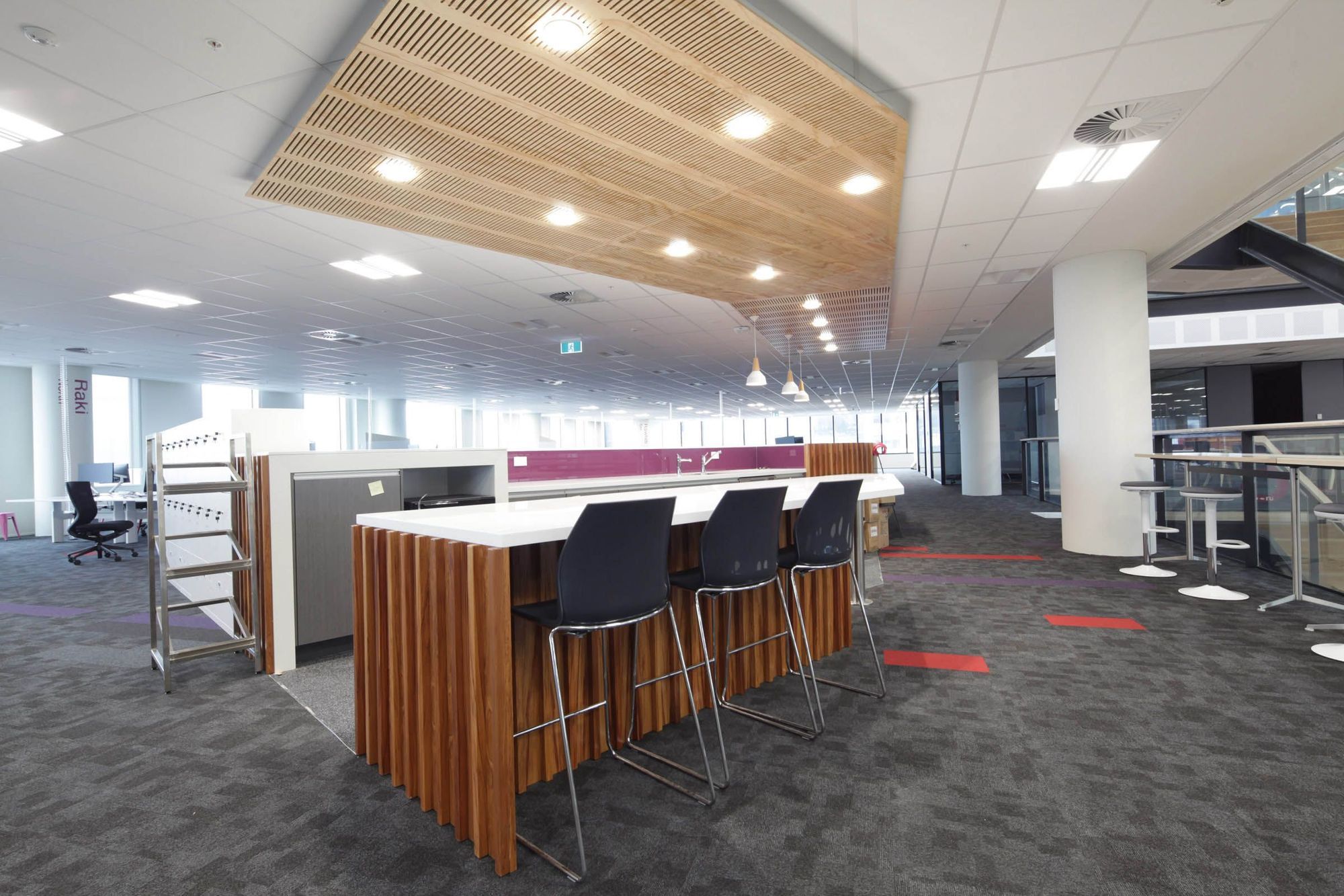 ArchiPro Project Summary - Consolidation of Datacom's Auckland offices into a vibrant, open-plan corporate environment promoting collaboration and communication across departments.
