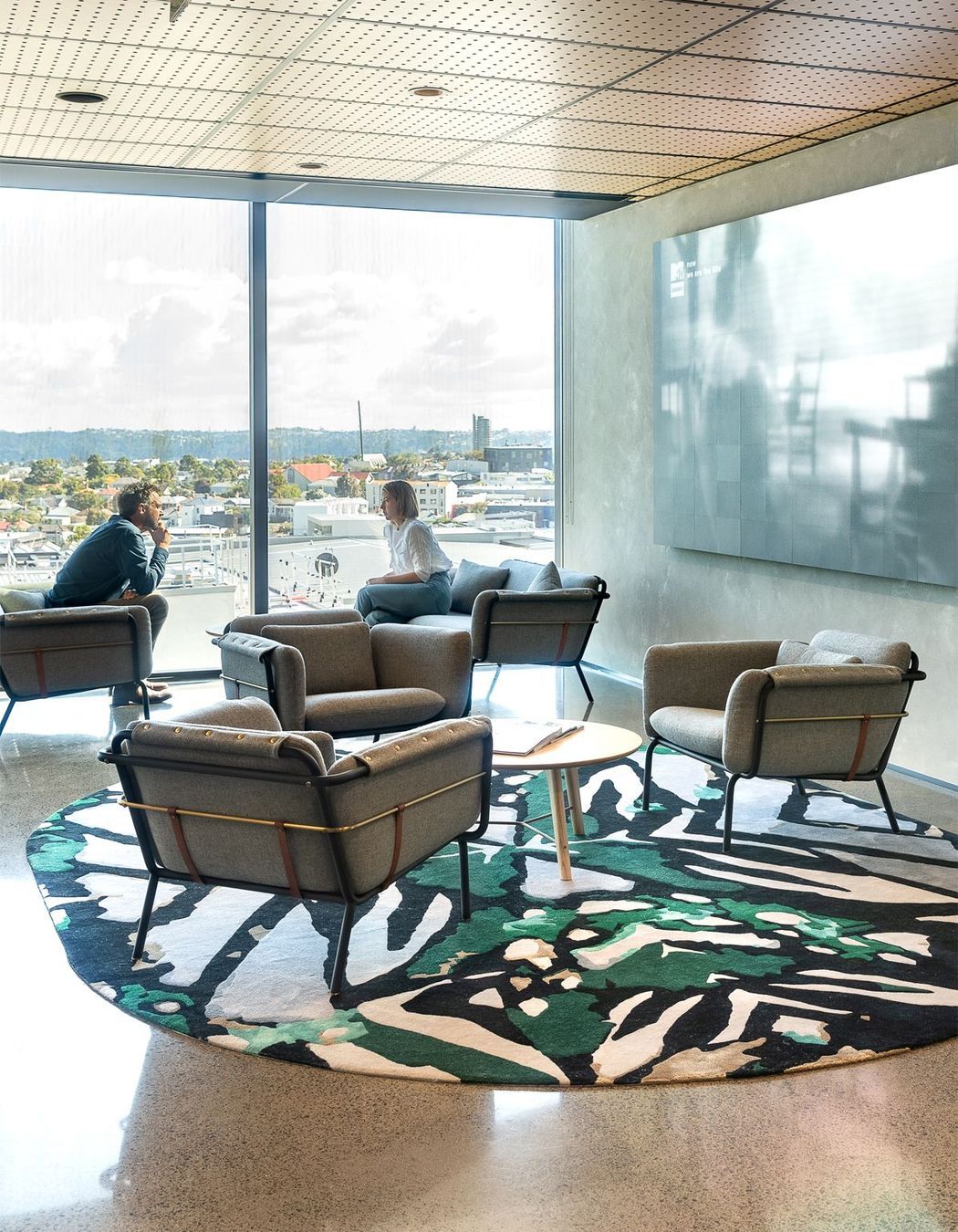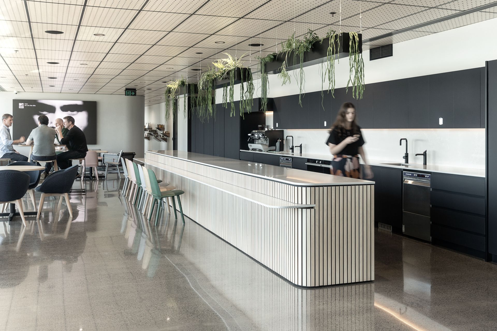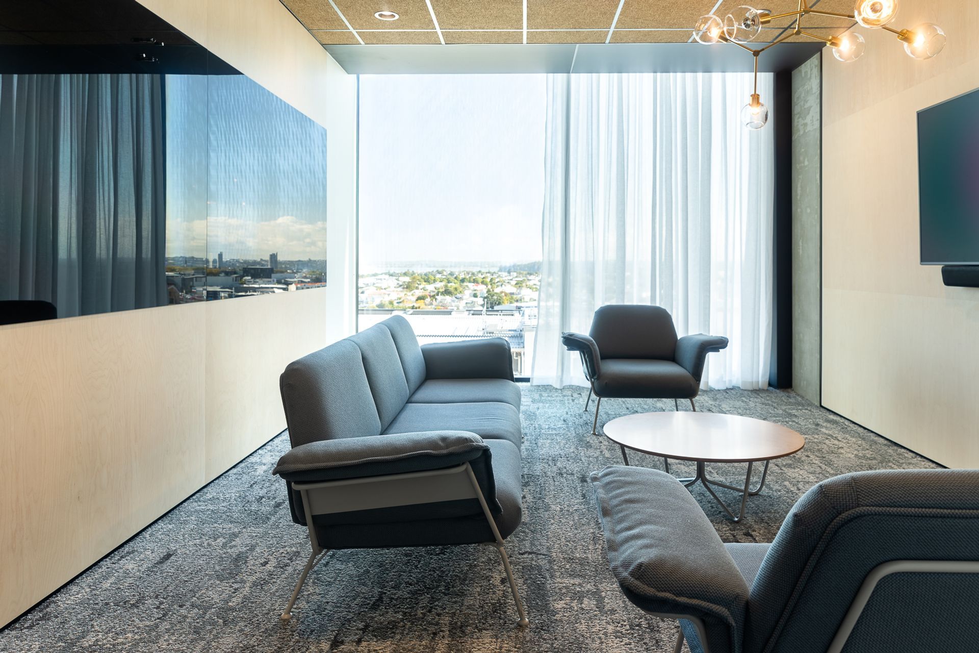 ArchiPro Project Summary - DDB New Zealand's new office features a welcoming open-plan design with natural light, timber workstations, and vibrant meeting spaces, fostering collaboration while balancing industrial elements with a warm atmosphere.