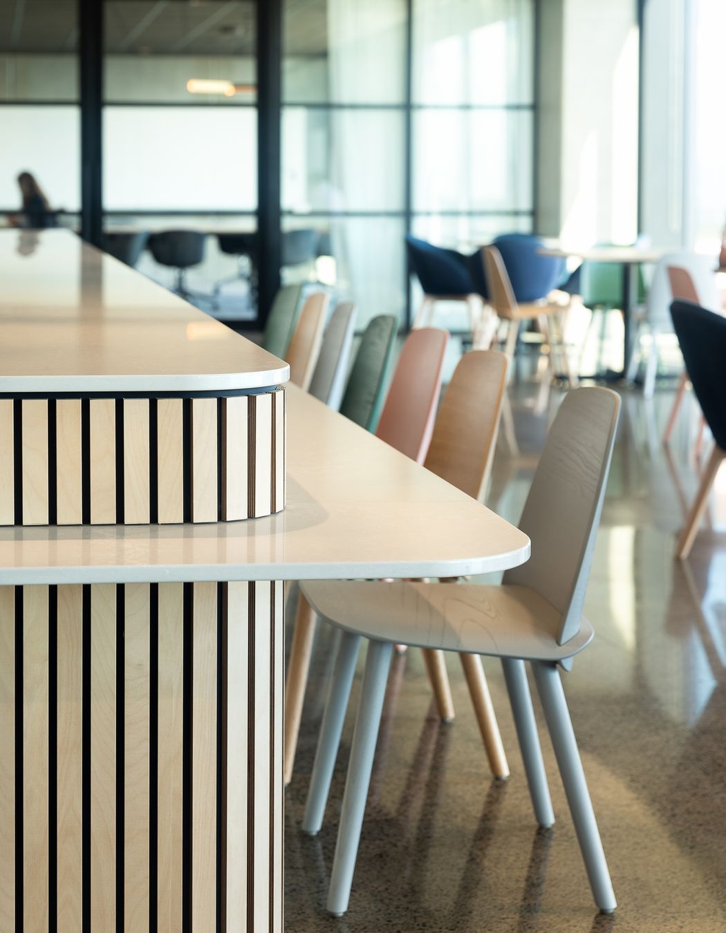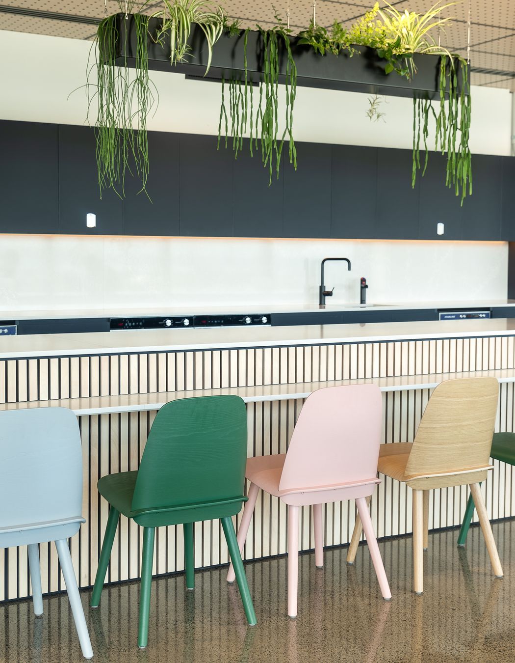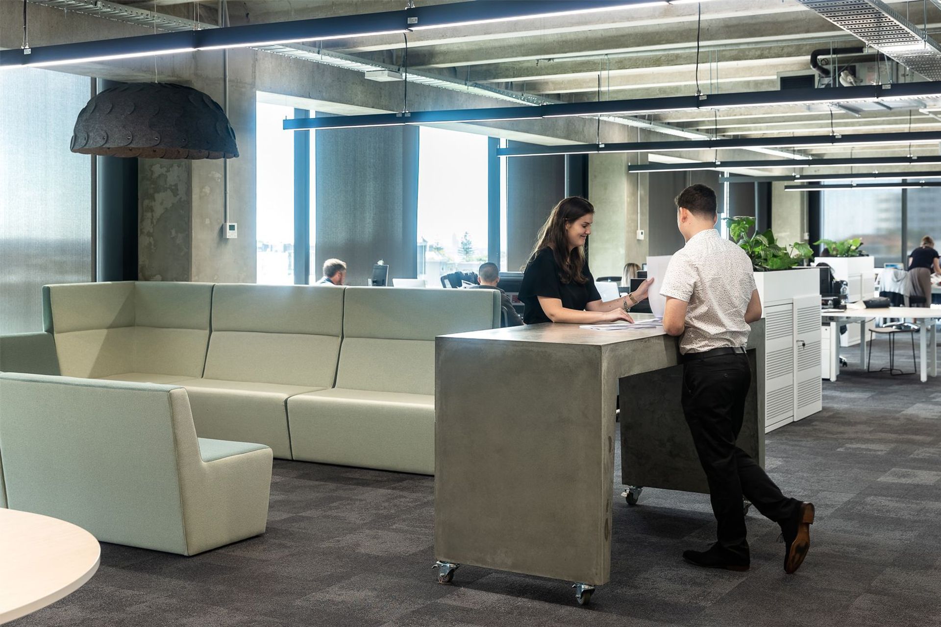 ArchiPro Project Summary - DDB New Zealand's new office features a welcoming open-plan design with natural light, timber workstations, and vibrant meeting spaces, fostering collaboration while balancing industrial elements with a warm atmosphere.