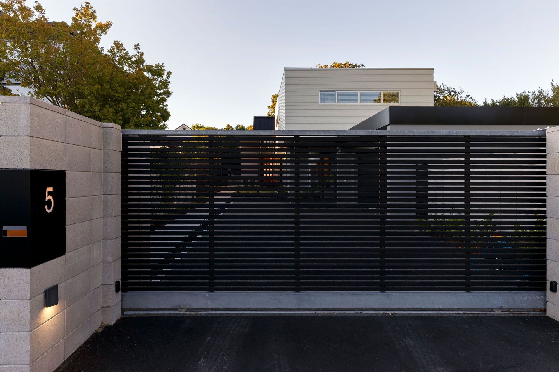 ArchiPro Project Summary - A modern architectural marvel featuring elegant siding, a spacious driveway, and a serene courtyard.