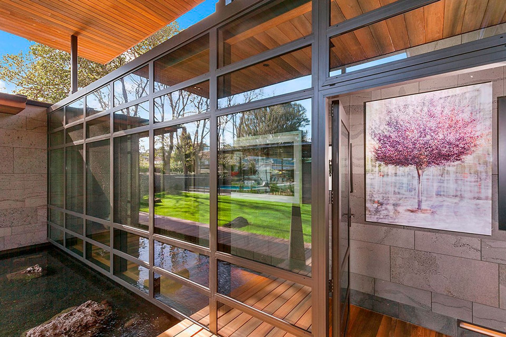 ArchiPro Project Summary - The Devonport Home features a landscaped estate with a serene garden, well-maintained lawn, and a stylish fence for privacy.