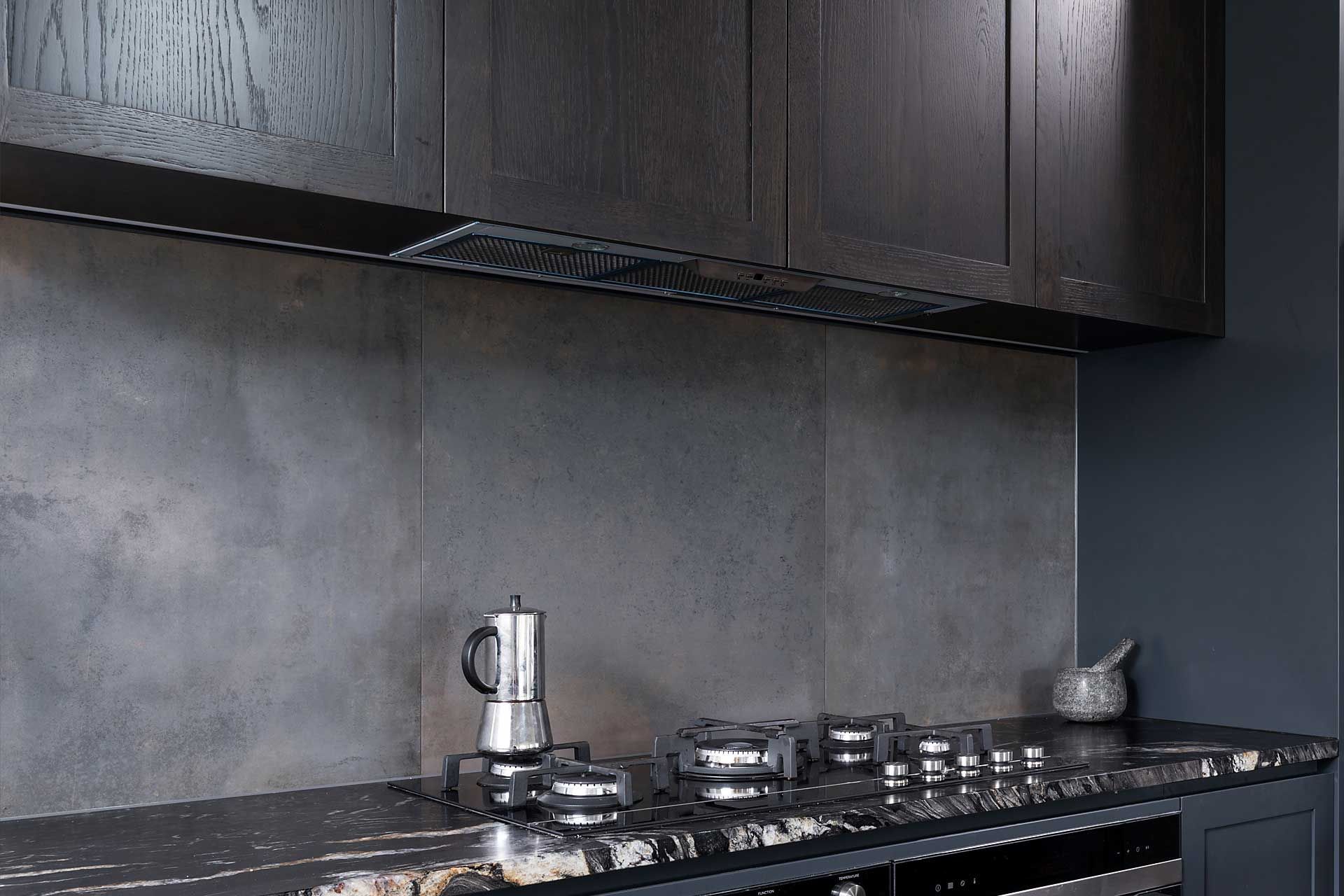 ArchiPro Project Summary - A contemporary kitchen renovation in a classic Devonport villa, featuring dark-stained timber, deep grey panels, and honed titanium granite benchtops, designed by Neo Design to harmonize traditional aesthetics with modern functionality.