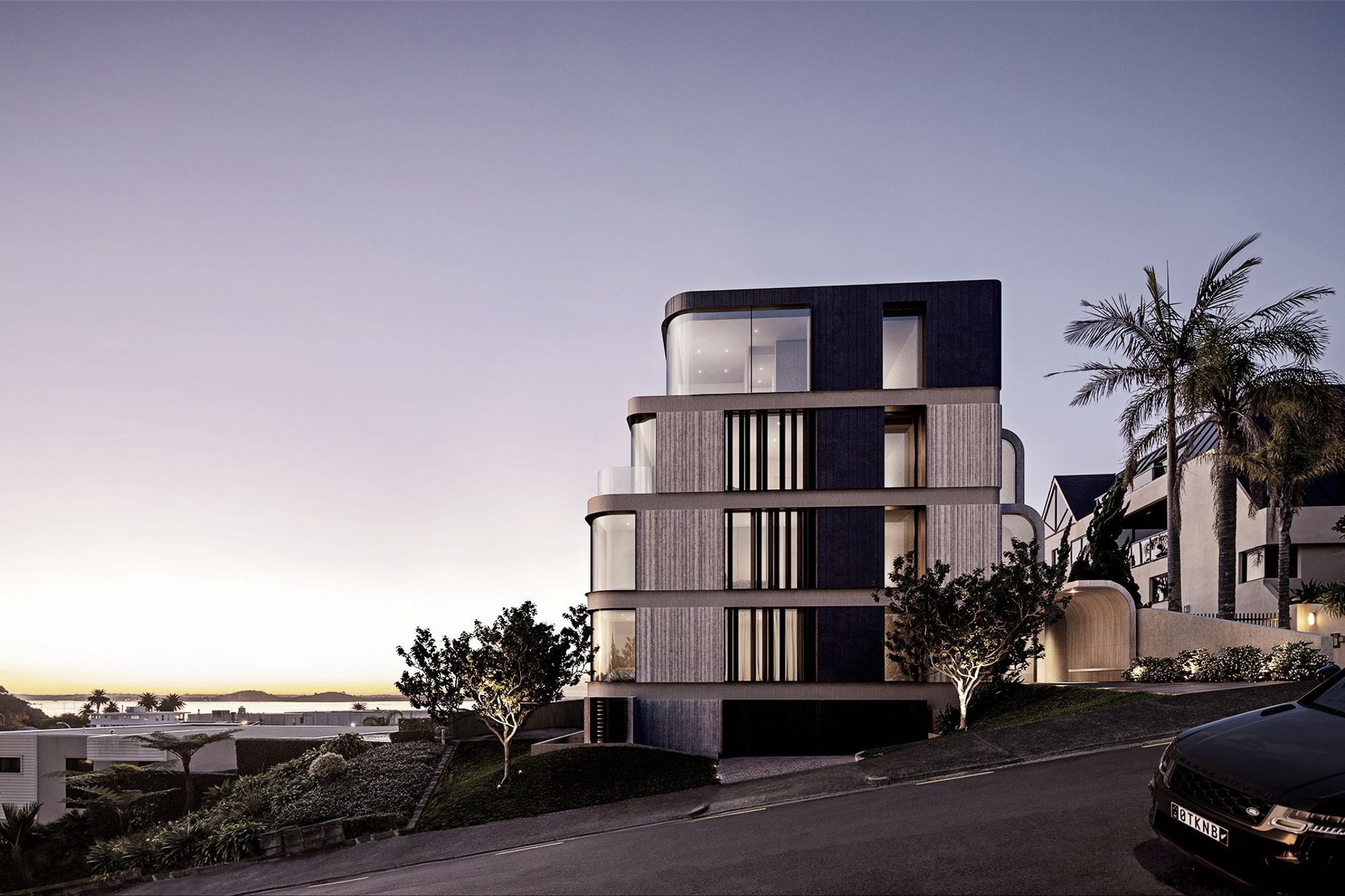 ArchiPro Project Summary - Sonata Apartments features five luxury residences with stunning views of St. Heliers Bay, showcasing contemporary design that harmonizes with natural materials and light, creating a seamless connection with the surrounding landscape.