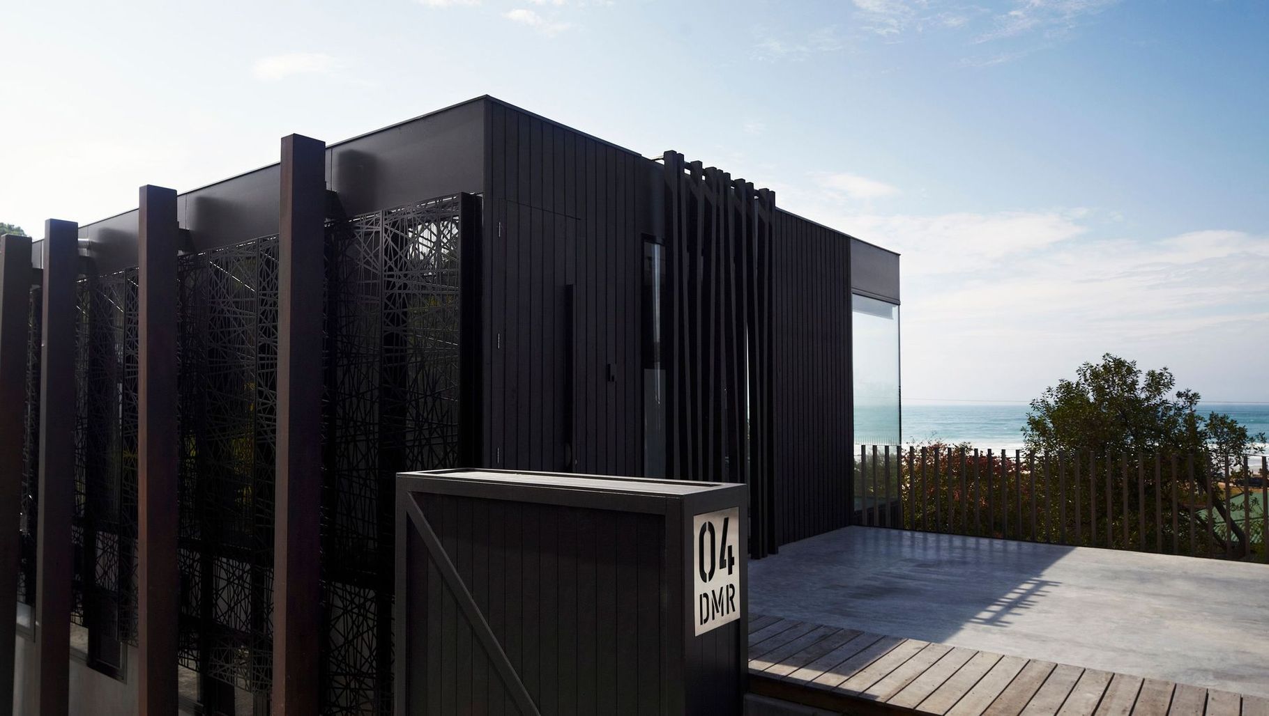 ArchiPro Project Summary - A thoughtfully designed four-bedroom holiday house in Lorne, Victoria, featuring dual living spaces, innovative laser-cut screens for privacy and light modulation, and a focus on accessibility and low maintenance for families.