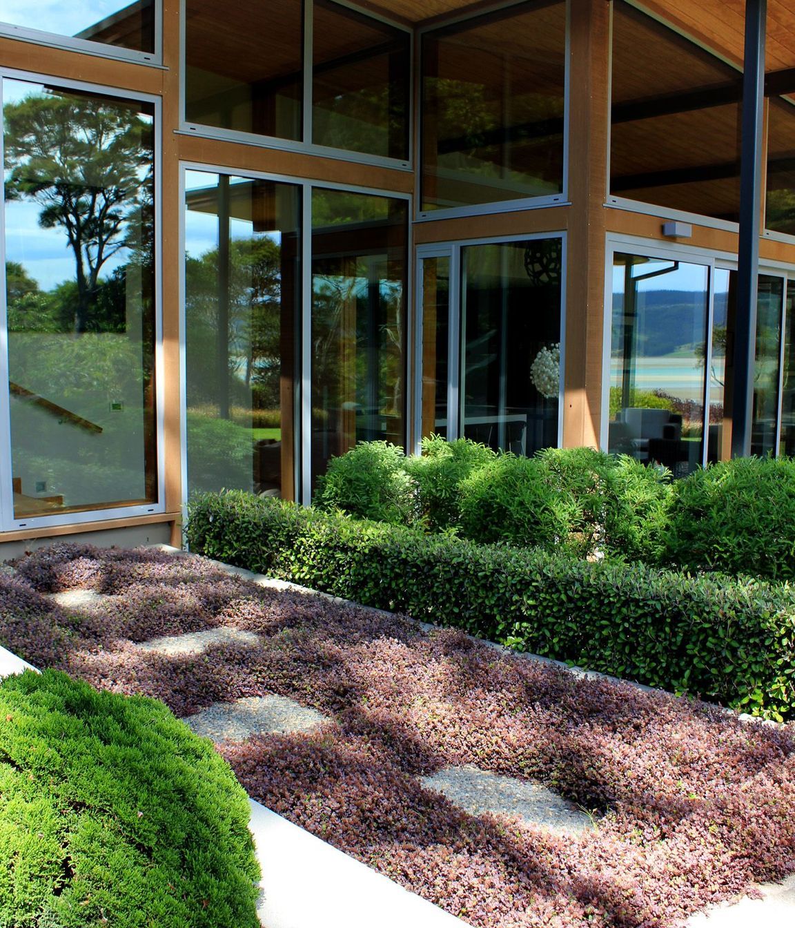 ArchiPro Project Summary - A stunning terraced modern residence at Doctors Point, blending functional outdoor living with native landscaping, recognized as Landscape of the Year 2014 and Best Residential Project, showcasing excellence in contemporary New Zealand garden design.