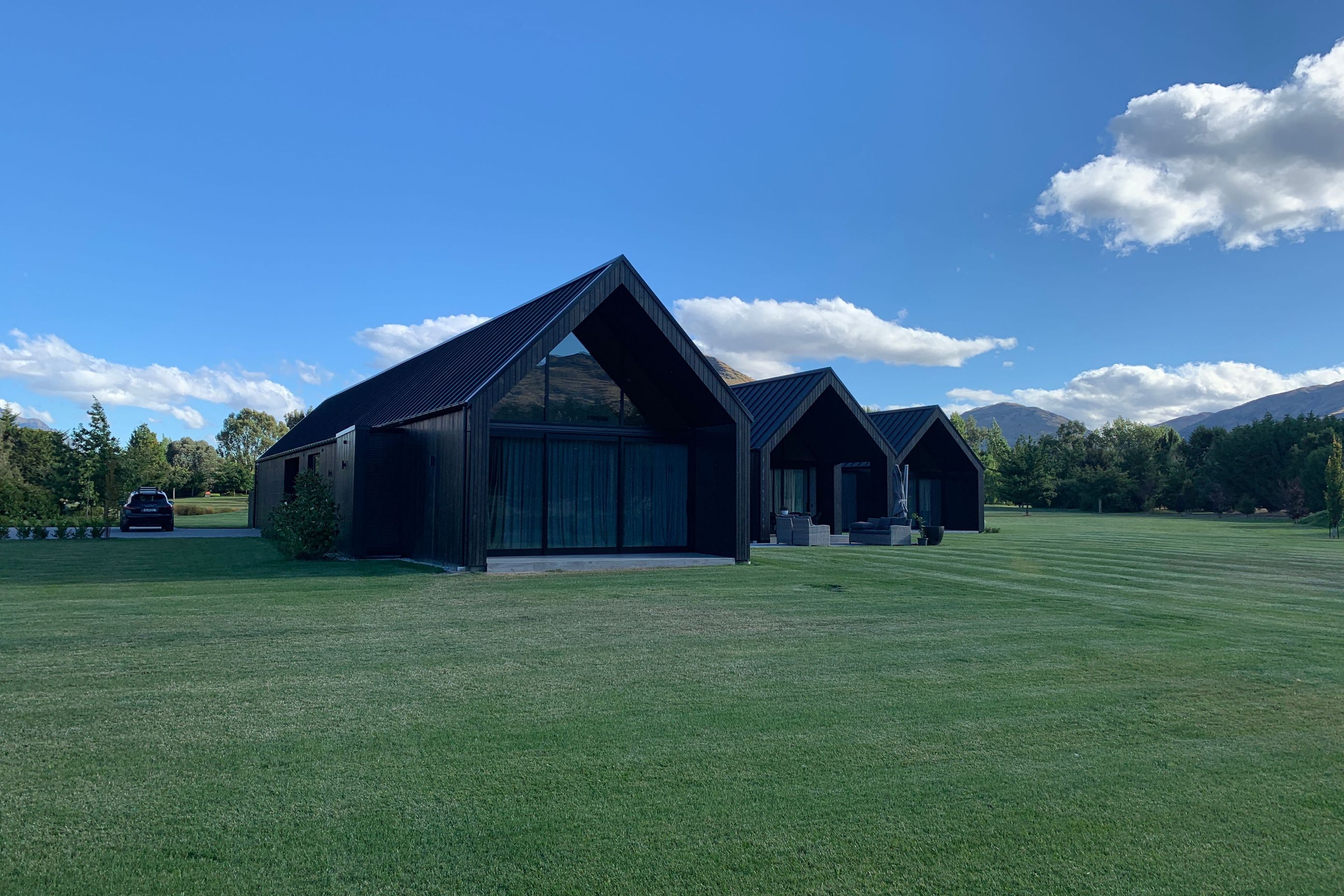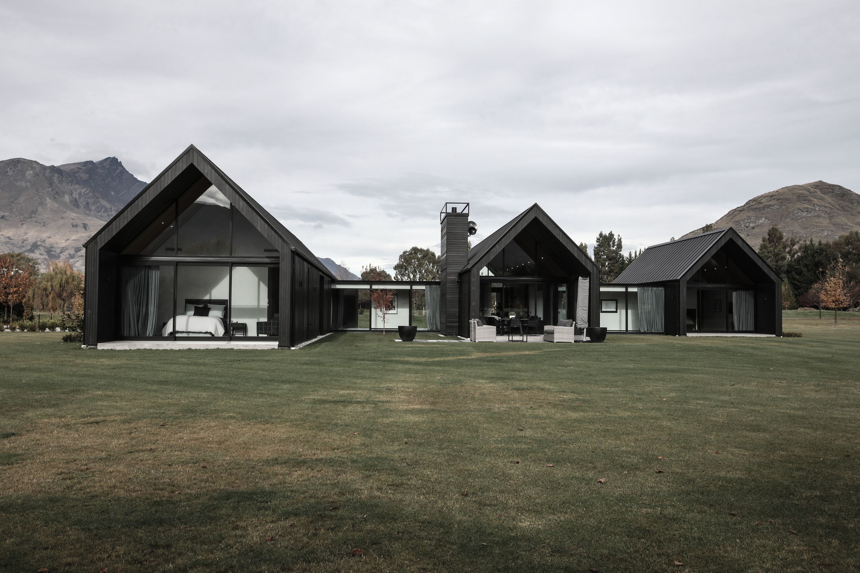 ArchiPro Project Summary - A striking cedar-clad residence featuring three gabled forms, four bedrooms, and expansive communal spaces, designed to embrace breathtaking views of The Remarkables and Coronet Peak in the stunning Wakatipu Basin.