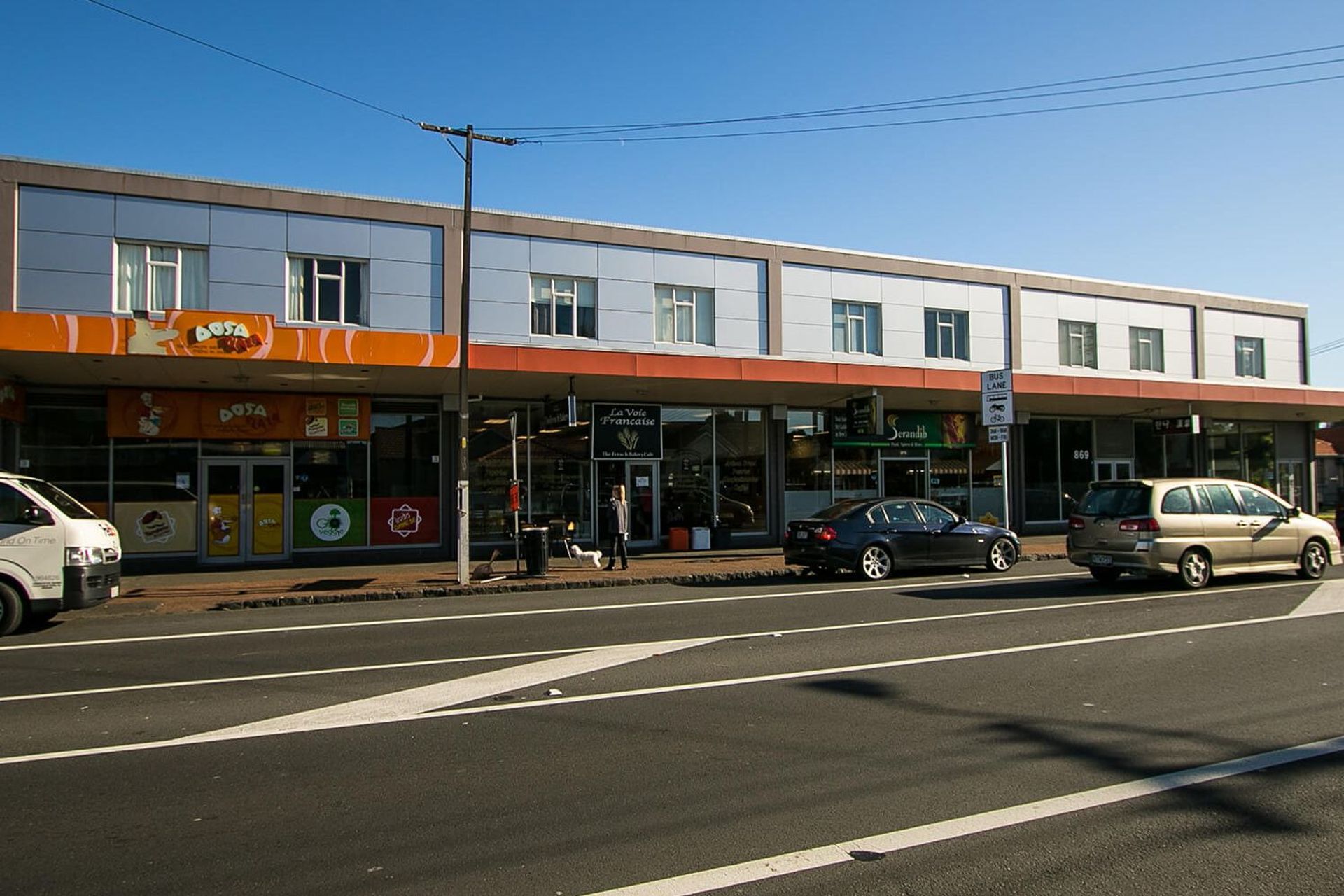 ArchiPro Project Summary - A mixed-use commercial development featuring five retail shops and five residential apartments, strategically located on Dominion Road, completed in 2004, attracting reputable tenants including a renowned French bakery.