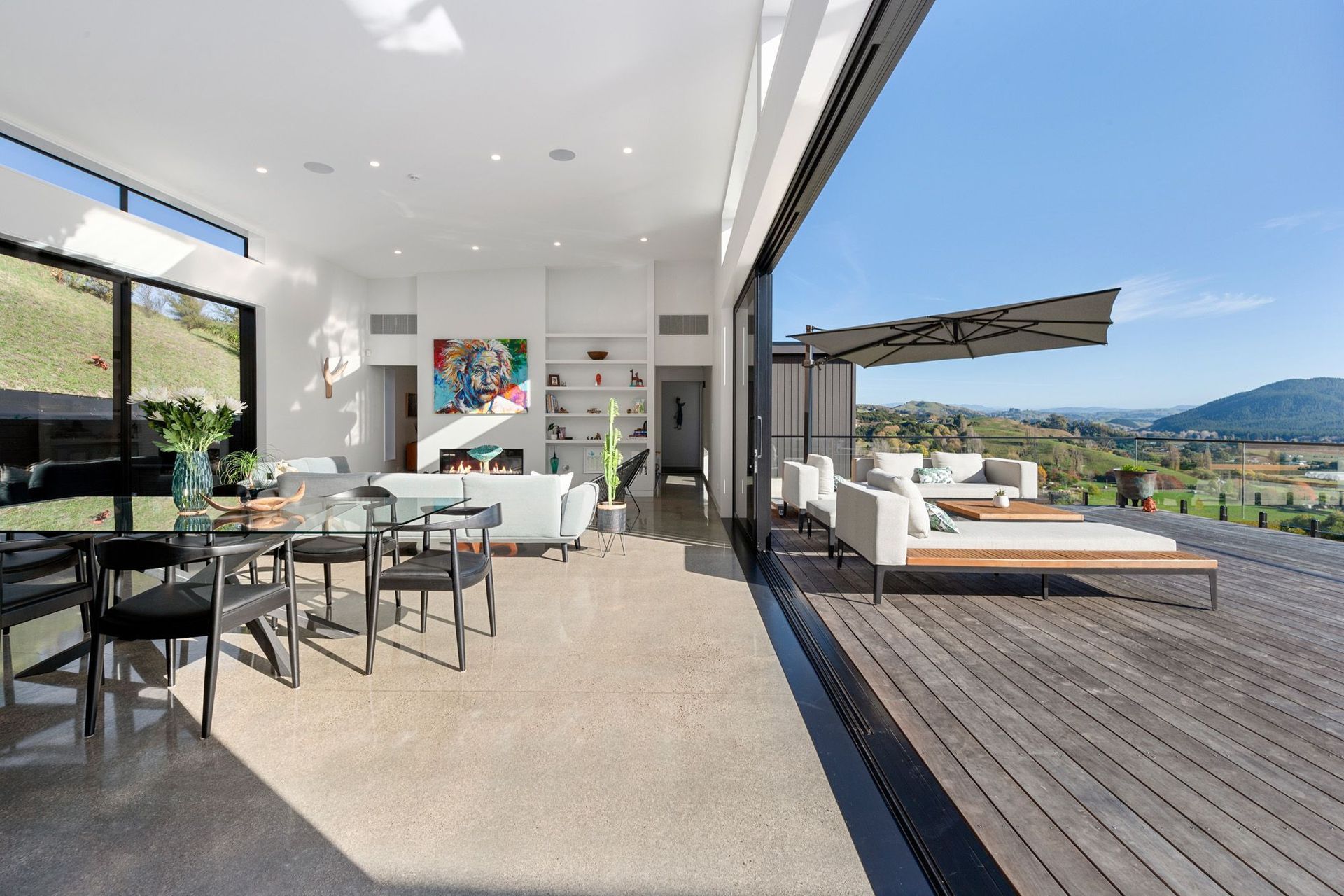 ArchiPro Project Summary - Award-winning home showcasing a perfect blend of design, style, and practicality, featuring high ceilings, a sophisticated kitchen and bathrooms, and striking dark exterior joinery that enhances its visual appeal and connection to spectacular views.