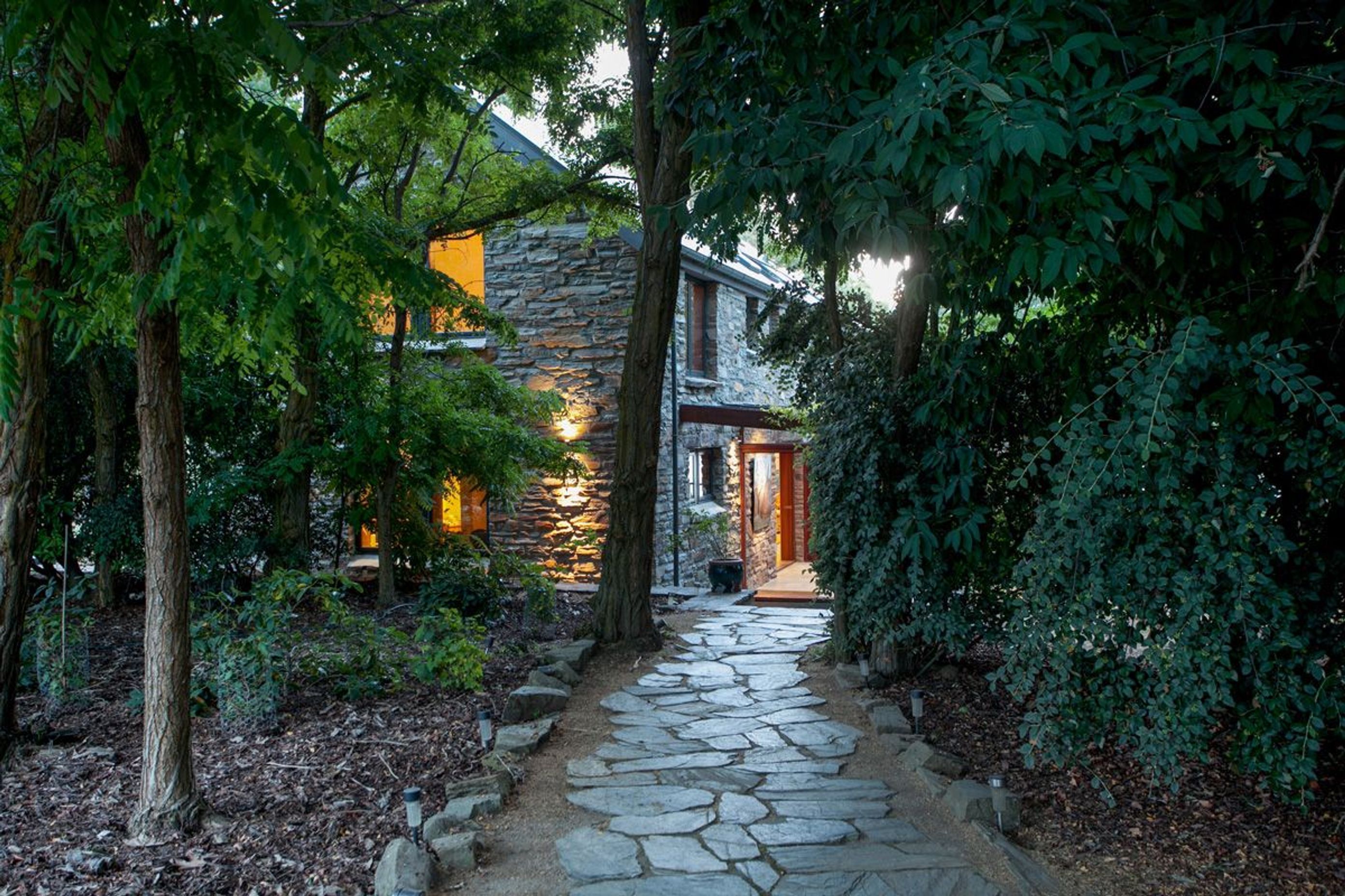 ArchiPro Project Summary - A high-performing family home inspired by rural stone architecture, featuring passive solar design, natural materials, and energy efficiency, all while maximizing sun exposure and lake views.