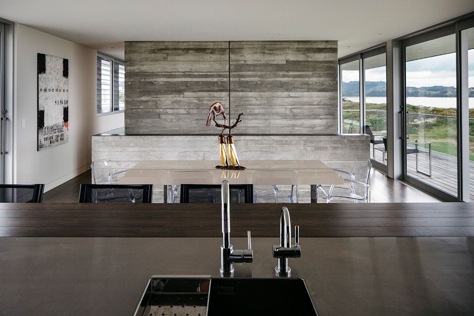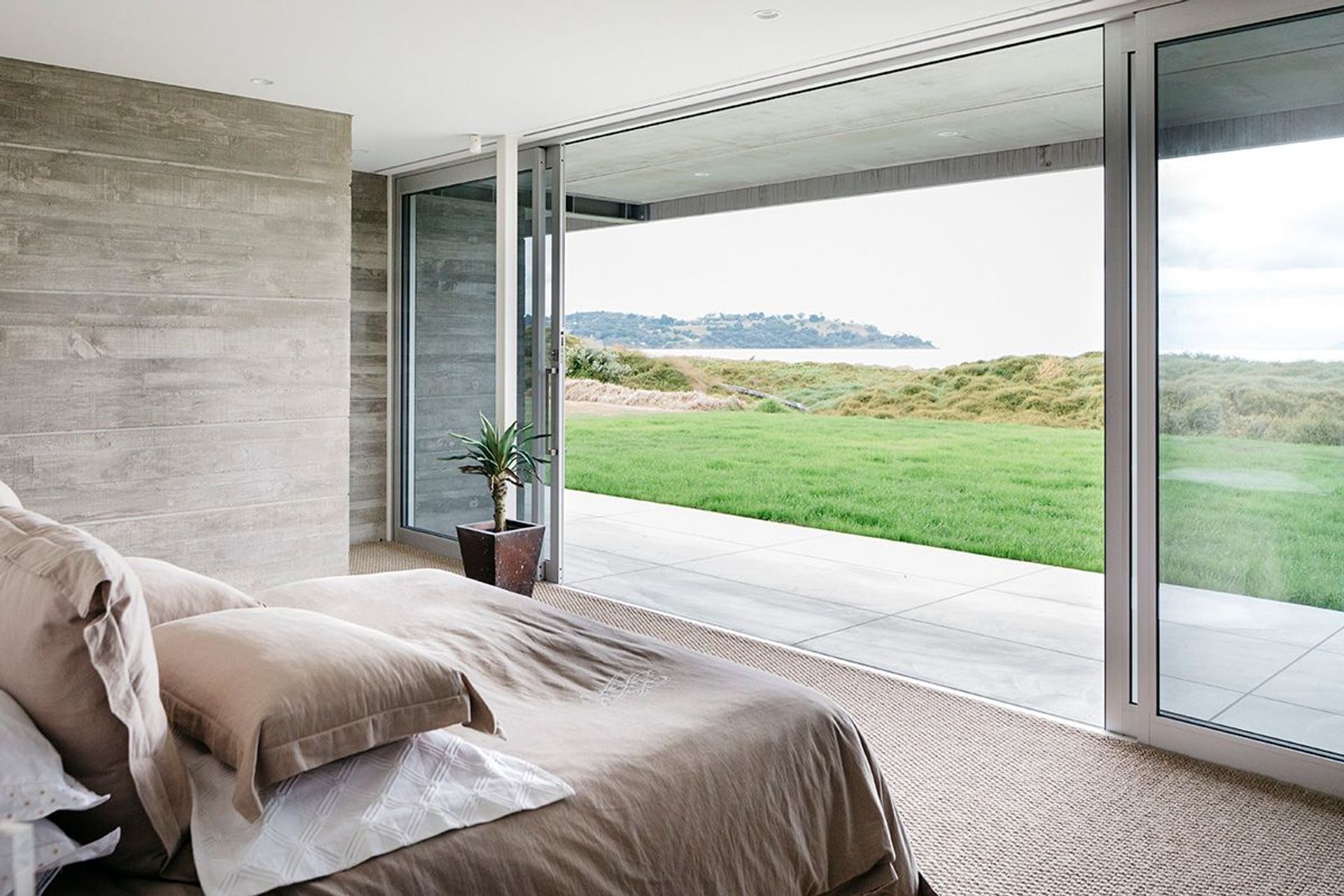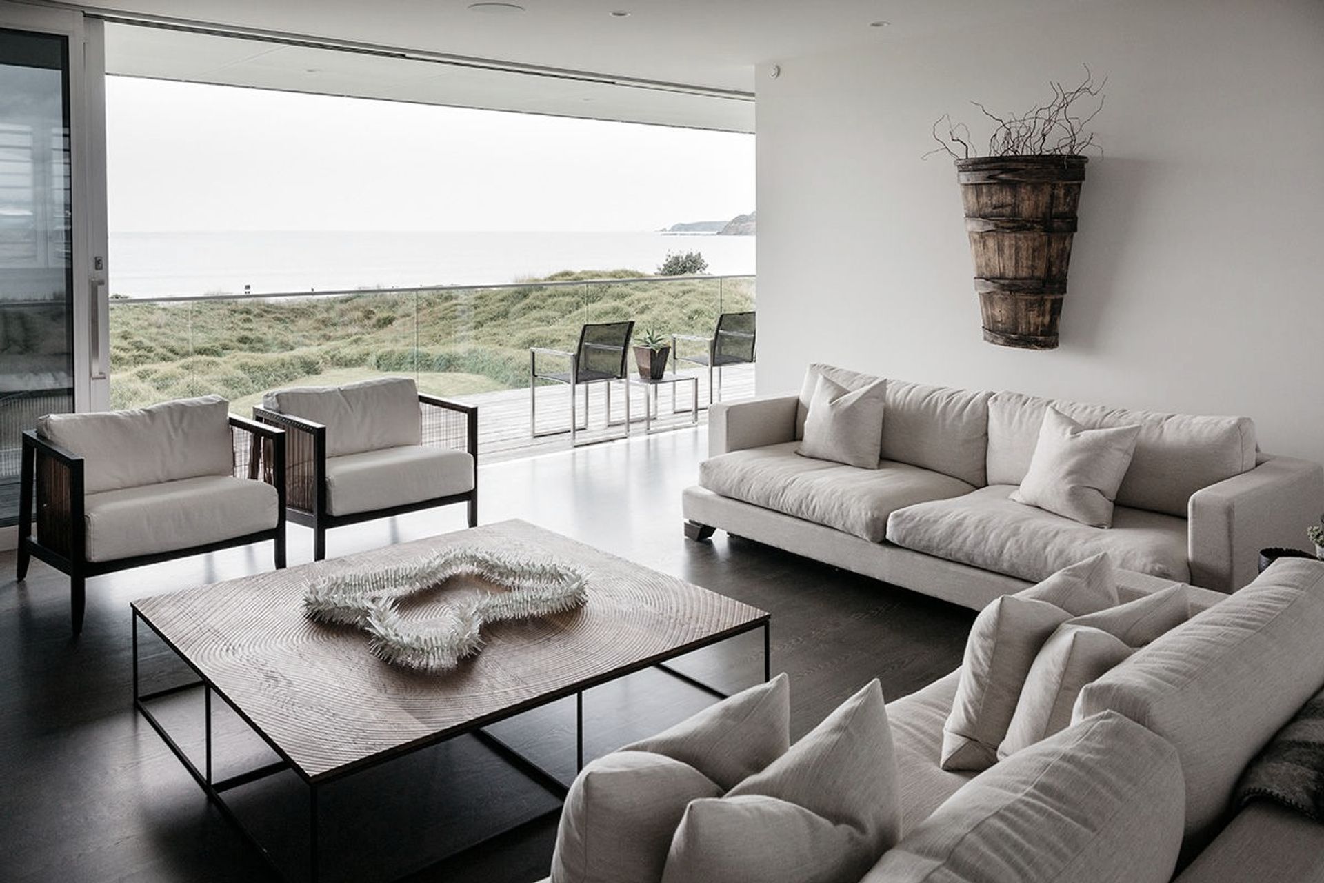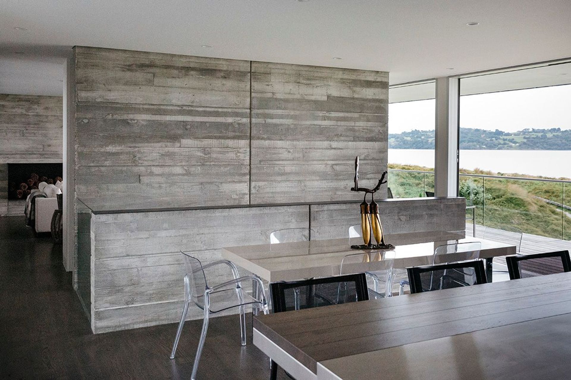 ArchiPro Project Summary - A tactile masterpiece featuring elegant design, flexible living configurations, and stunning beachfront views, with unique concrete walls, custom cabinetry, and a private central deck.