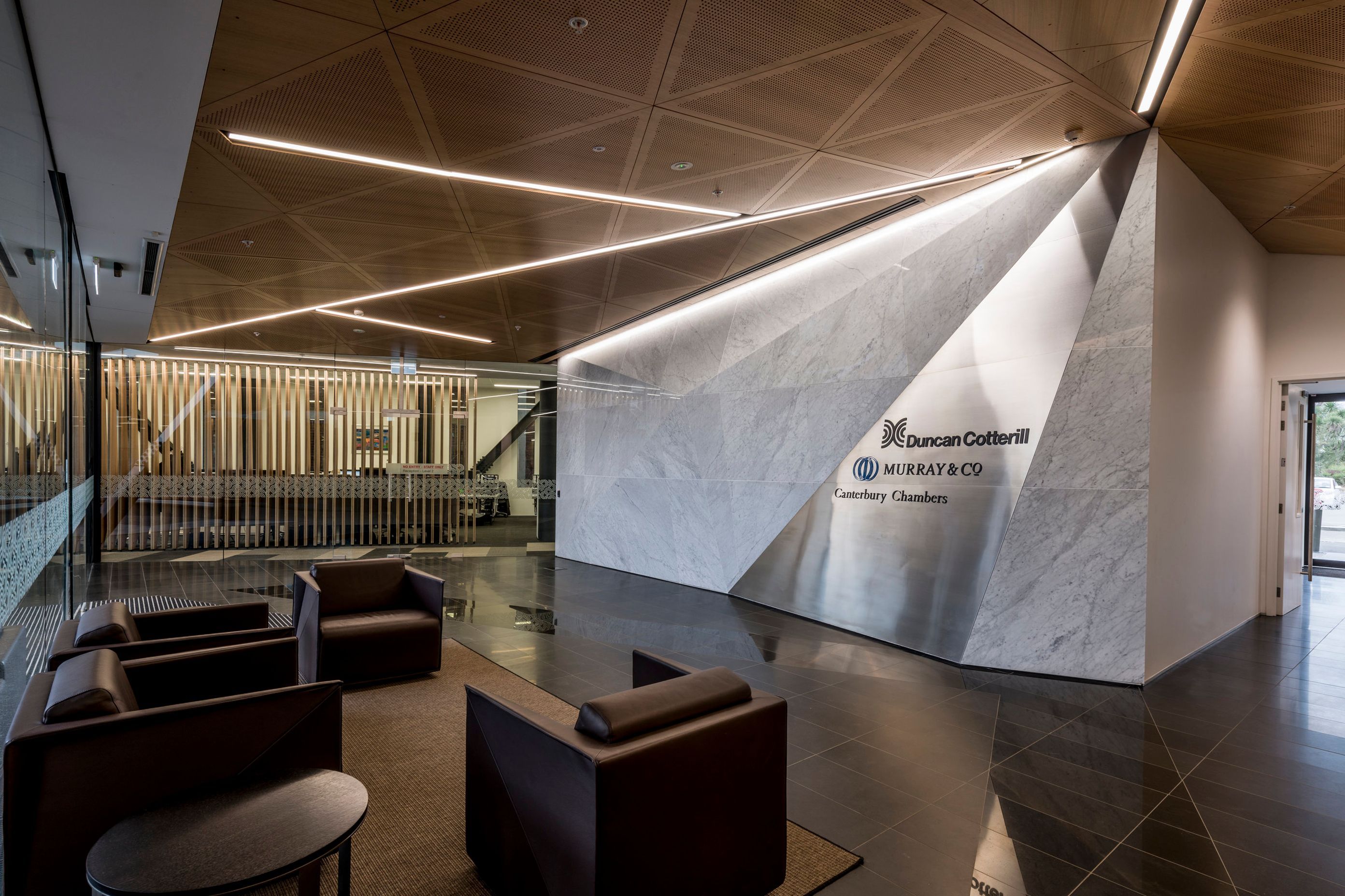 ArchiPro Project Summary - Comprehensive multi-level office fitout for Duncan Cotterill Lawyers, featuring open-plan spaces and transparent partner offices, designed to foster collaboration and informal interactions in the heart of Christchurch.