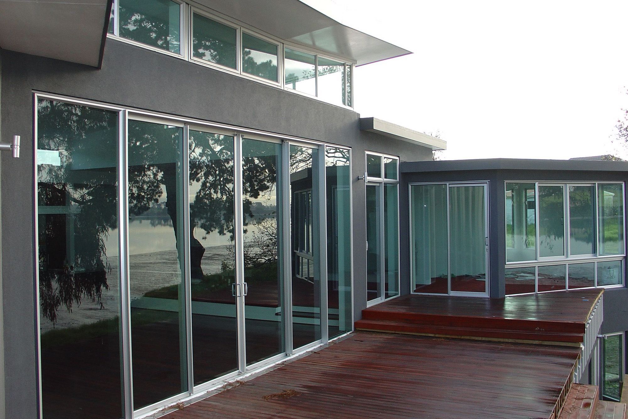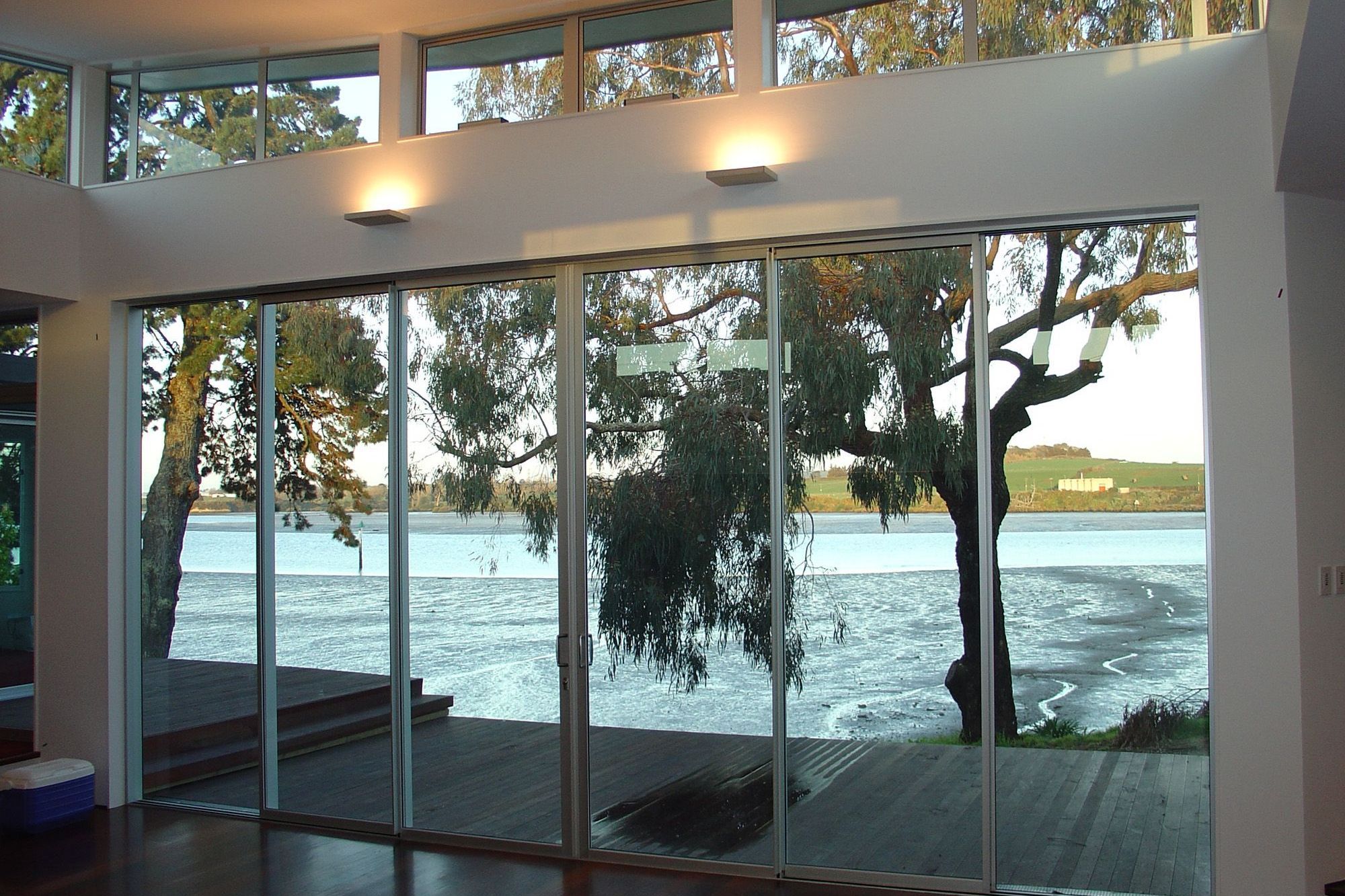 ArchiPro Project Summary - A secure residence featuring a striking street frontage that transitions into a spacious interior with stunning riverfront views, enhanced by high windows that invite natural light and reflections from the East Tamaki River.