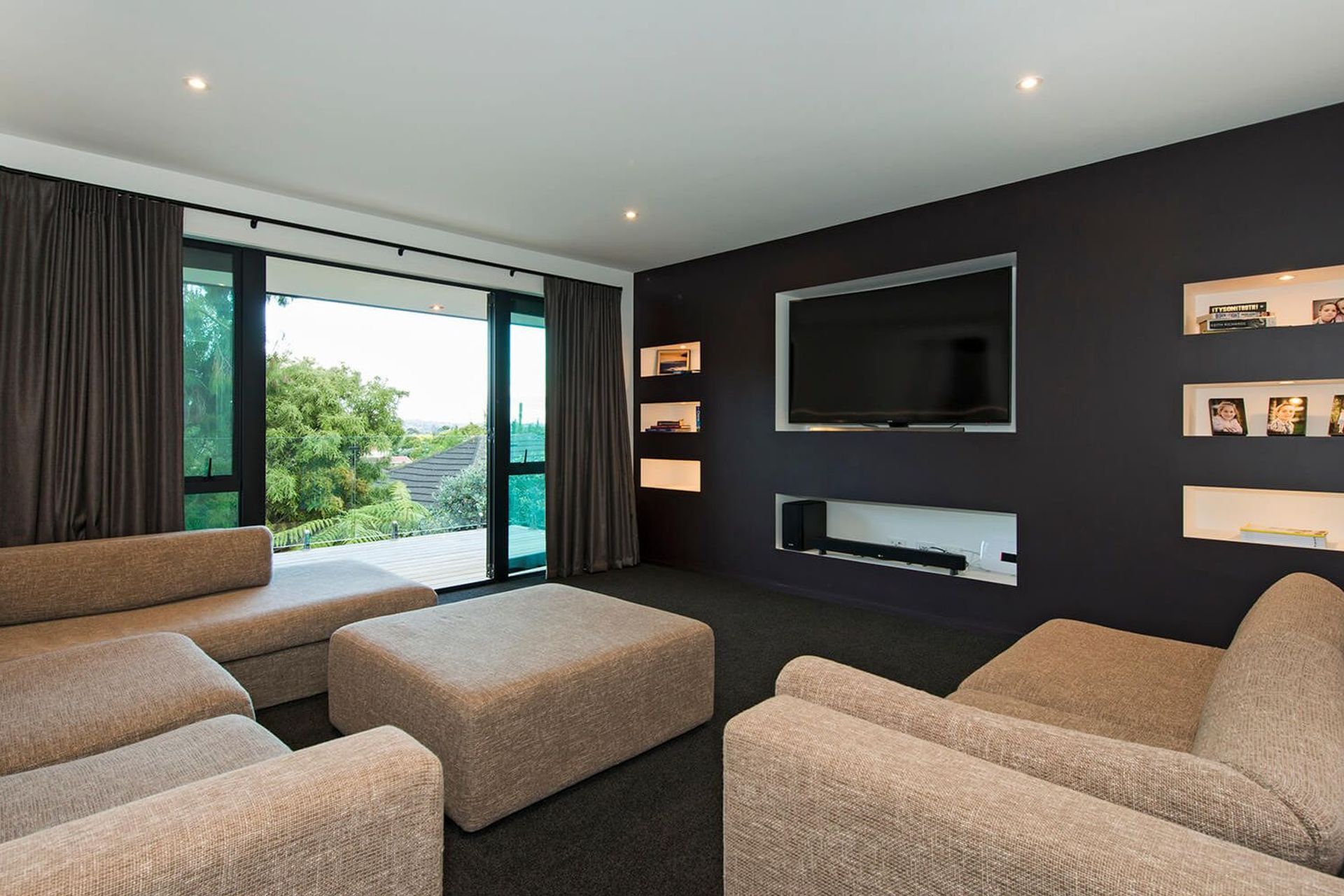 ArchiPro Project Summary - Family-oriented new build in tranquil Titirangi, featuring four bedrooms, two bathrooms, and stunning views of Auckland City, completed in 2016 with high-quality materials and design elements.