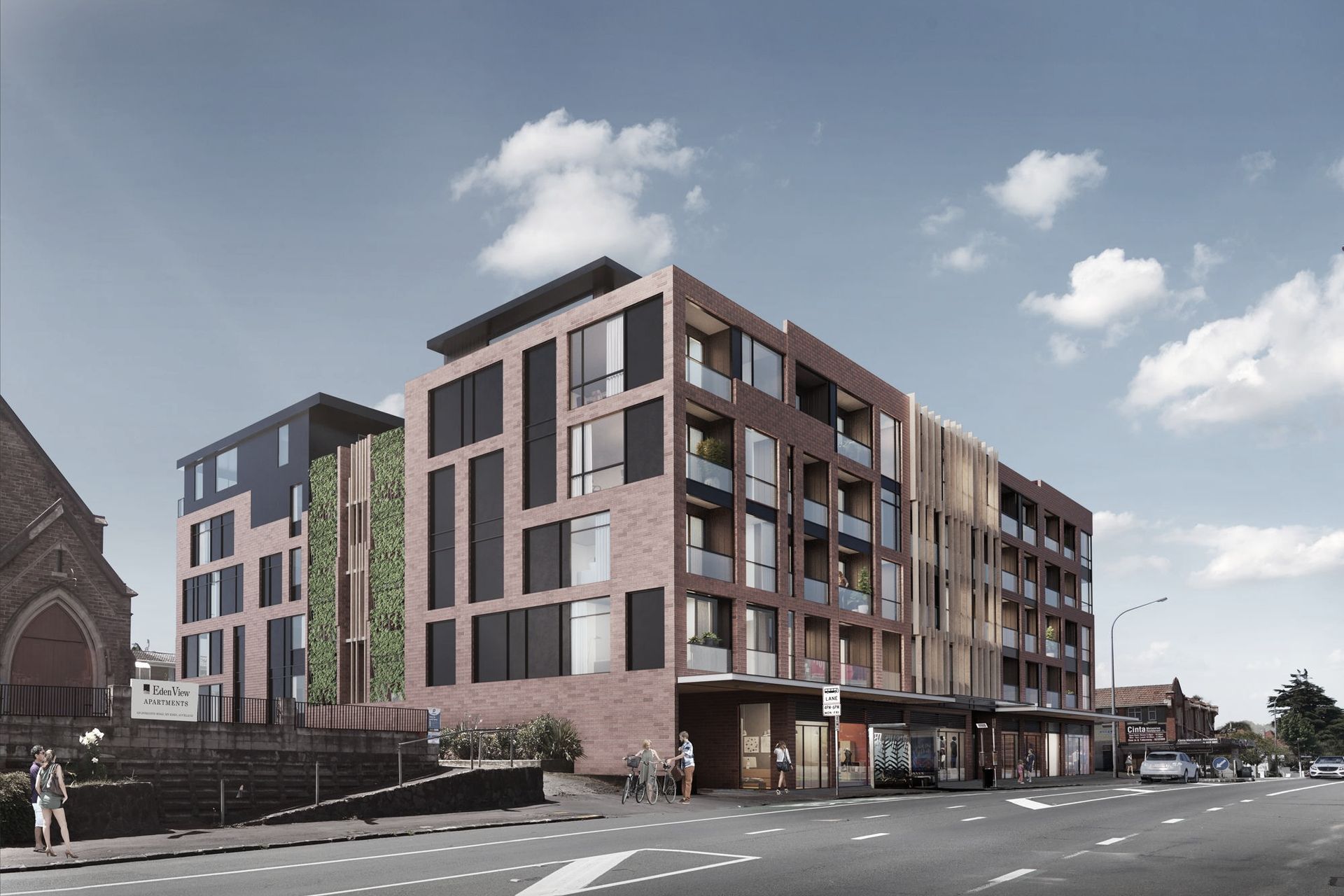 ArchiPro Project Summary - High-quality residential development featuring two five-storey blocks with retail and parking, designed with advanced structural solutions in Mt Eden, Auckland.
