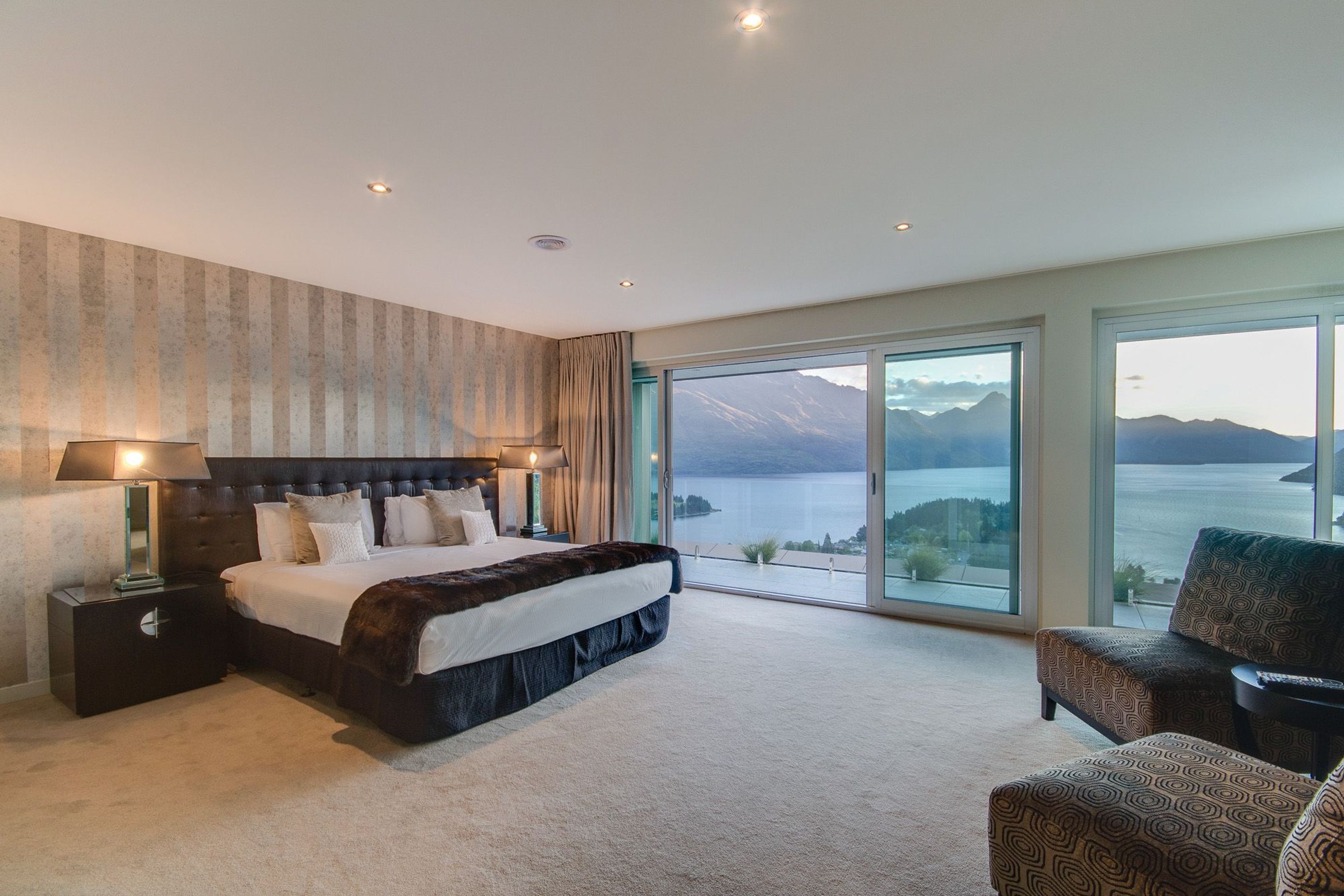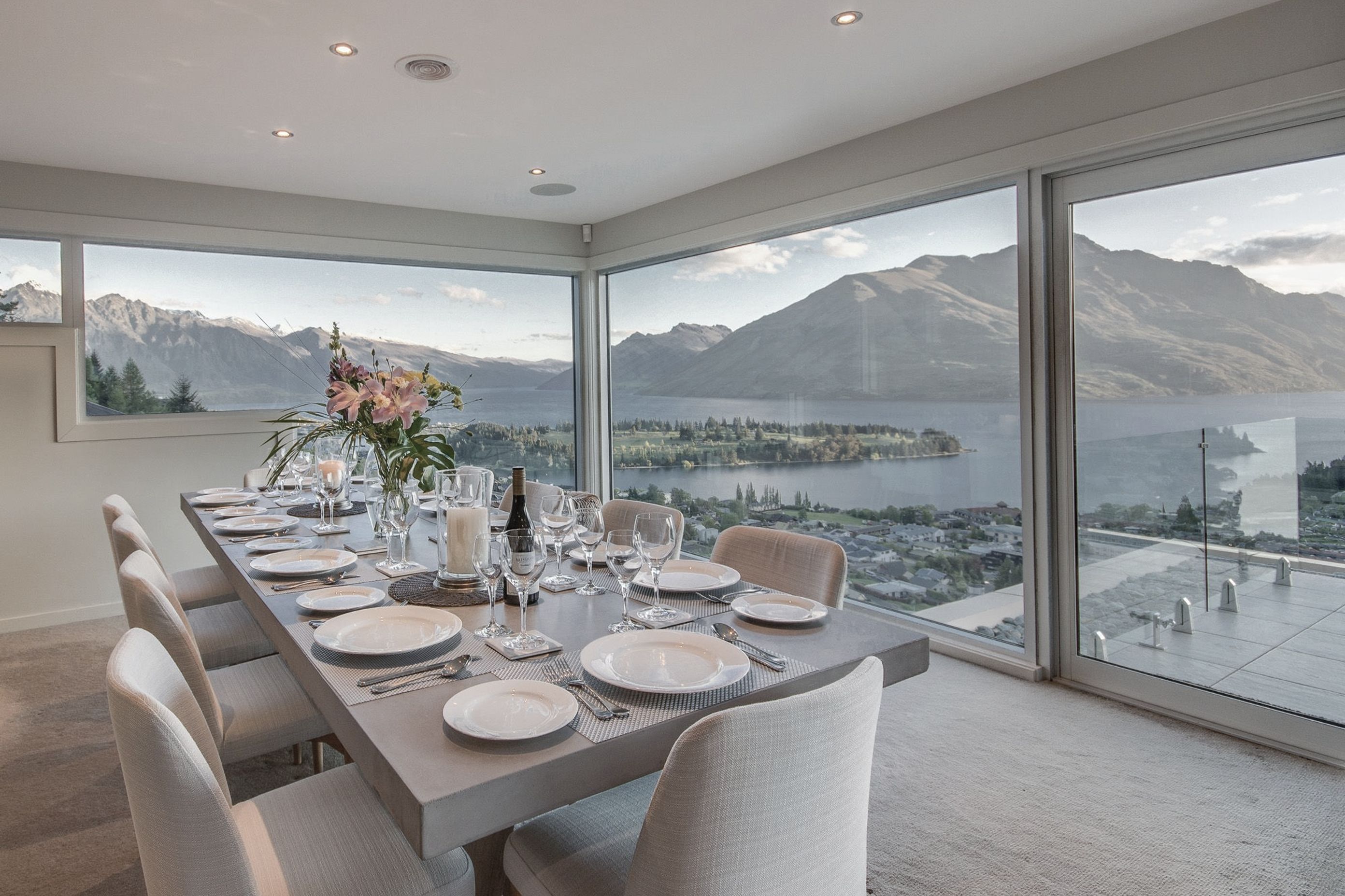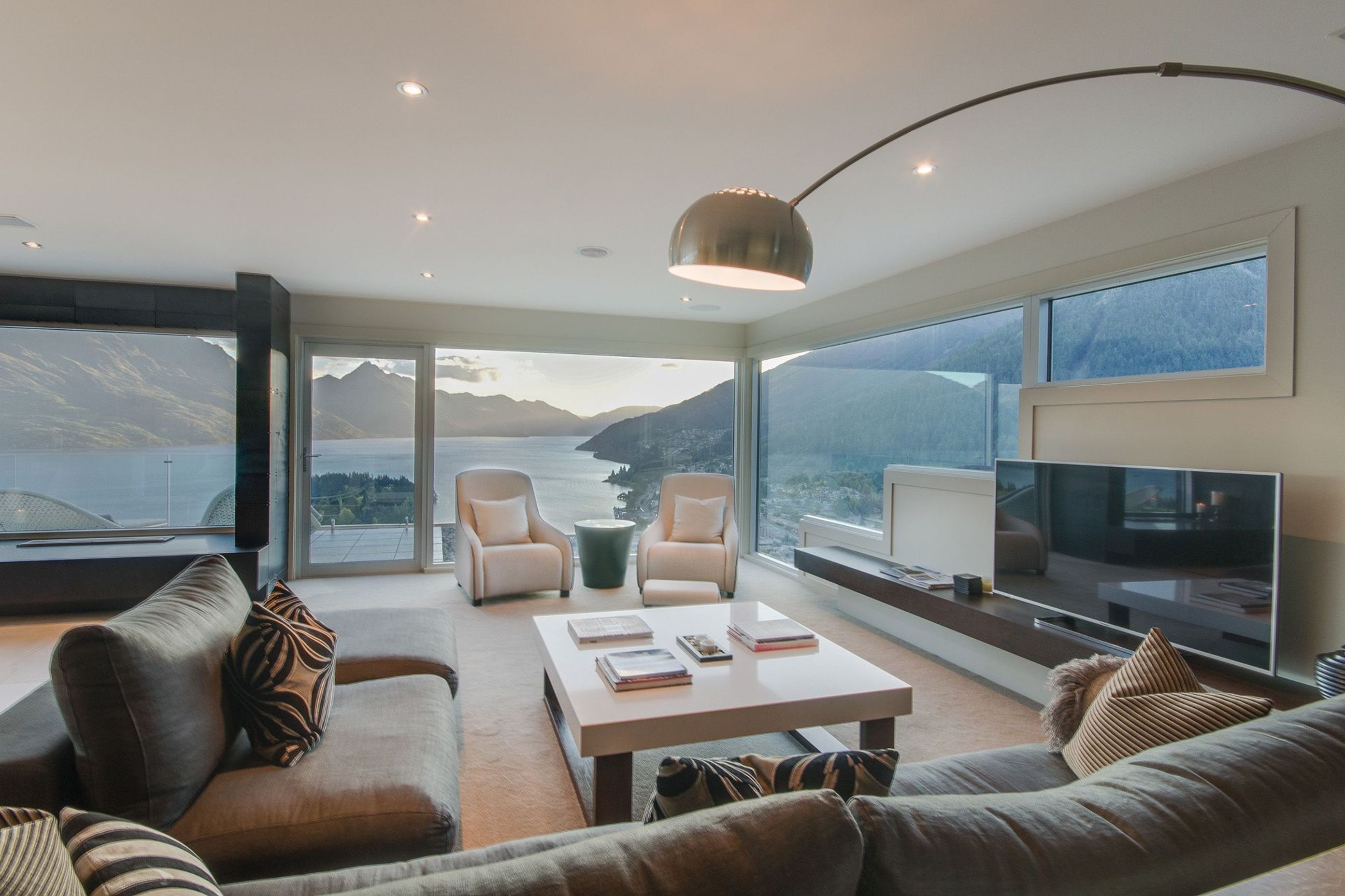 ArchiPro Project Summary - Luxury residence on Queenstown Hill offering stunning views of Lake Wakatipu, expertly managed by Spectrum Solutions for seamless maintenance and interior design, ensuring homeowners peace of mind from afar.