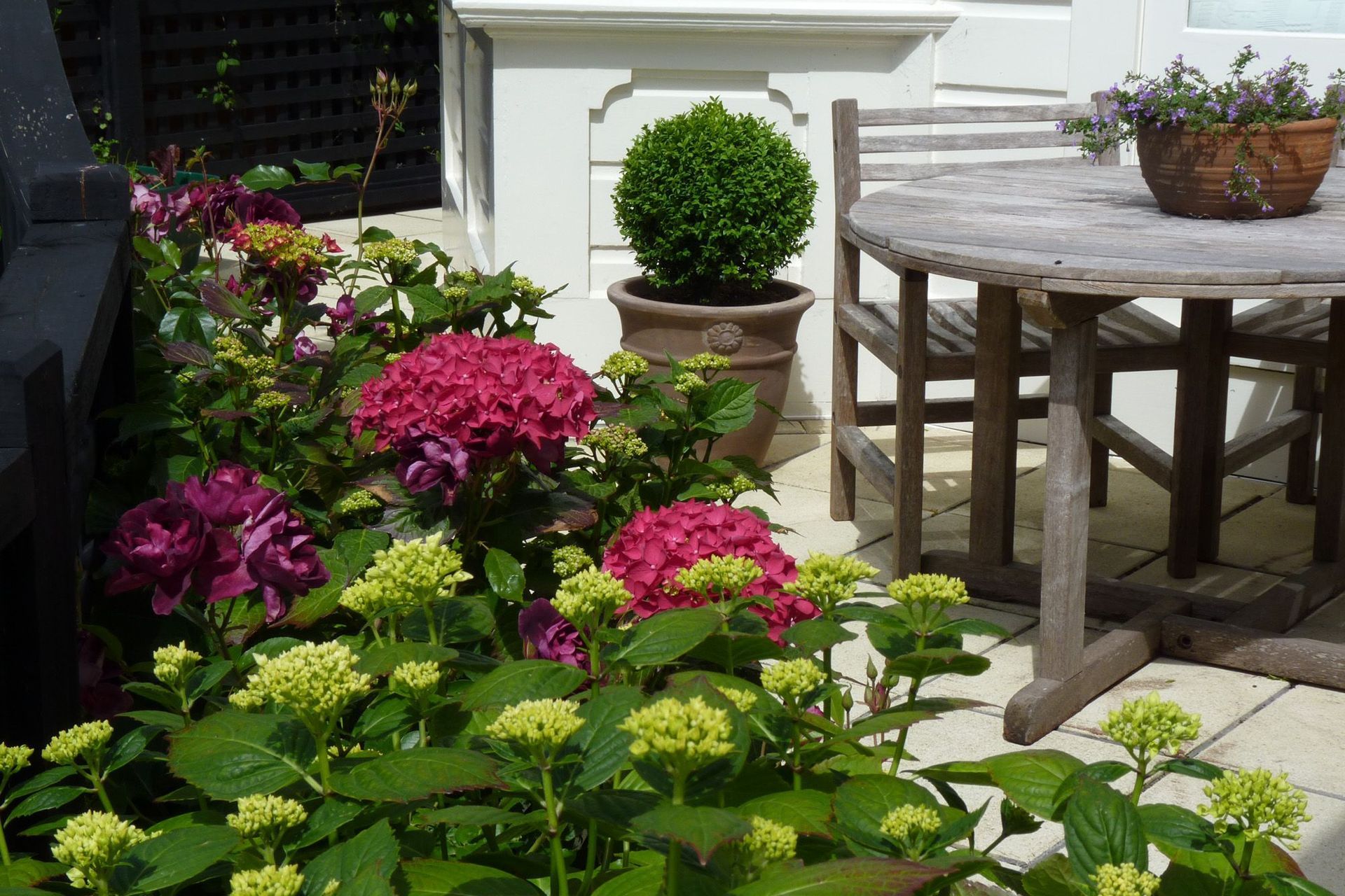 ArchiPro Project Summary - Elegant garden design for a classic Victorian villa, featuring a formal front garden and a private courtyard, tailored for a busy couple to enjoy beautiful views from every room.