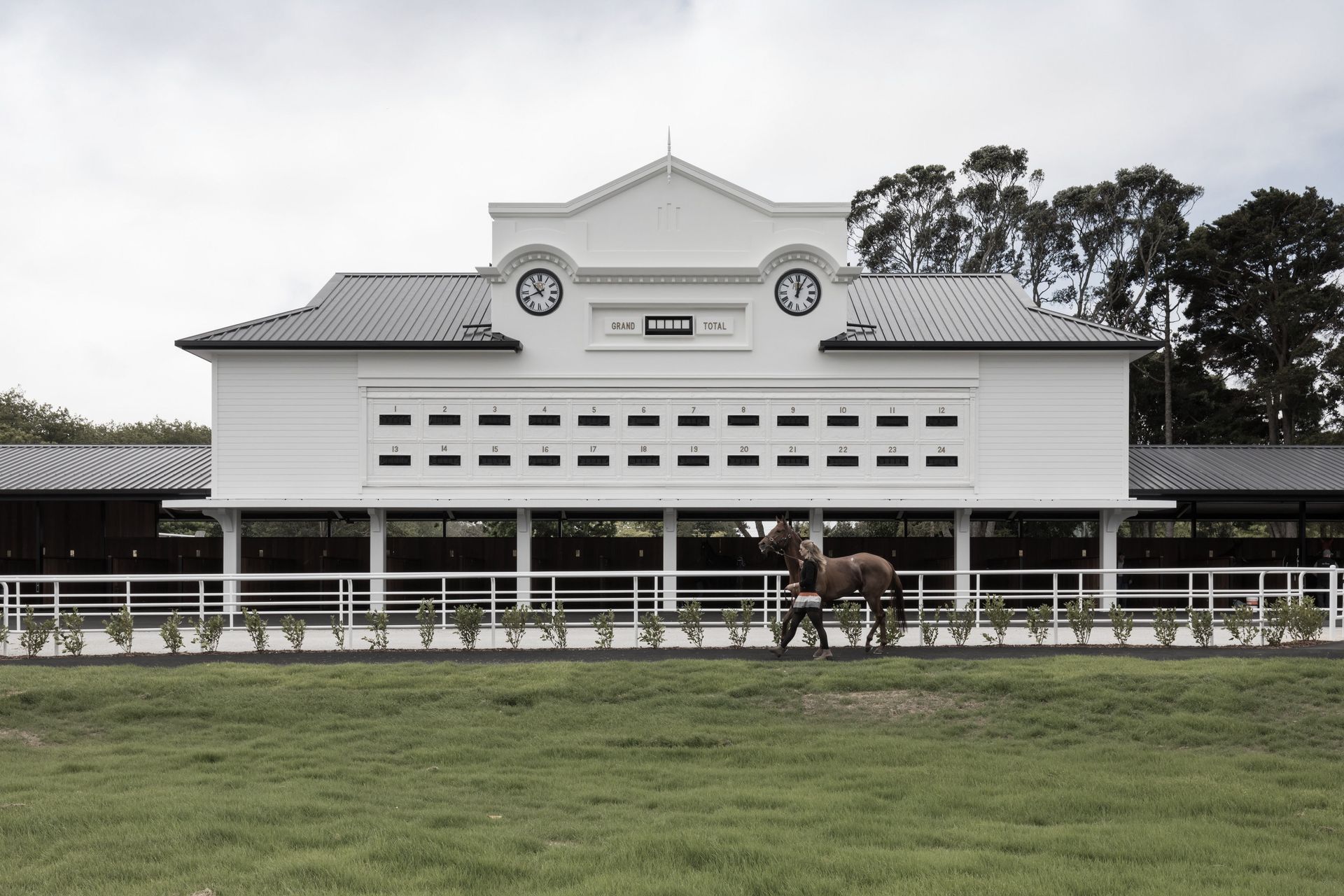 ArchiPro Project Summary - A $6 million transformation of the historic Ellerslie racecourse, featuring new stables, a central warm-up ring, and restored 1913 totalisator, enhancing public engagement with thoroughbred racing and revitalizing the venue's aesthetic appeal.