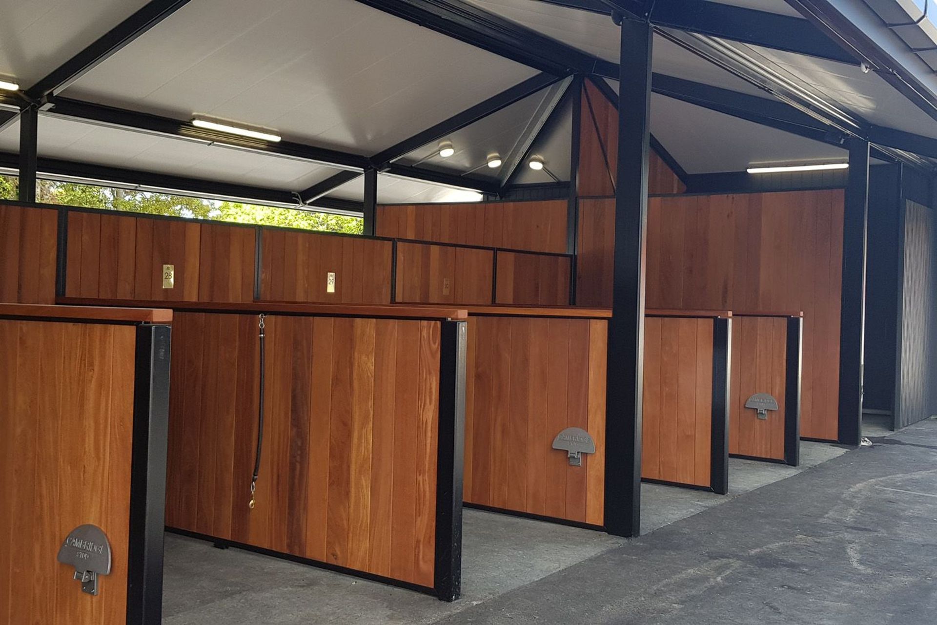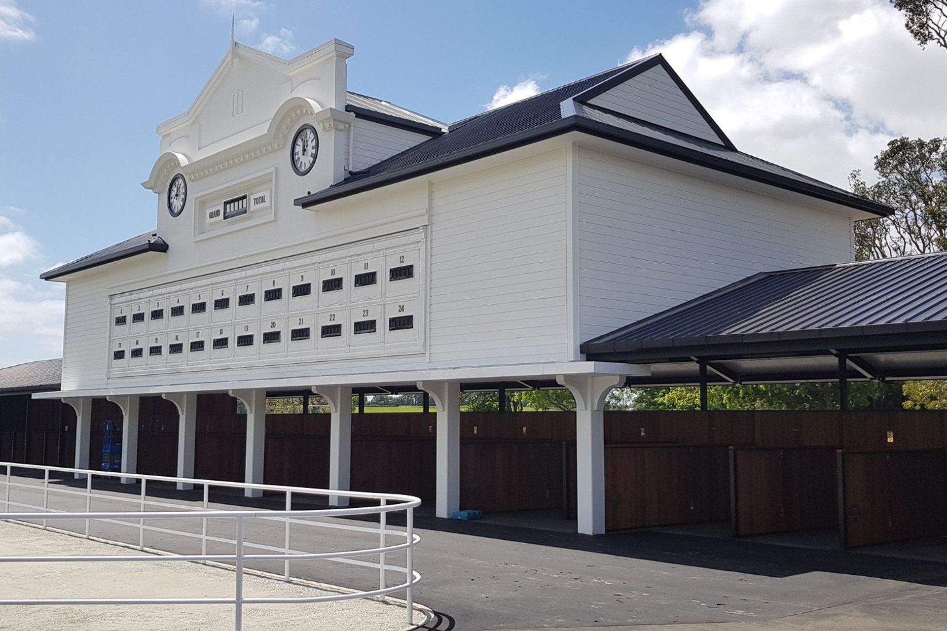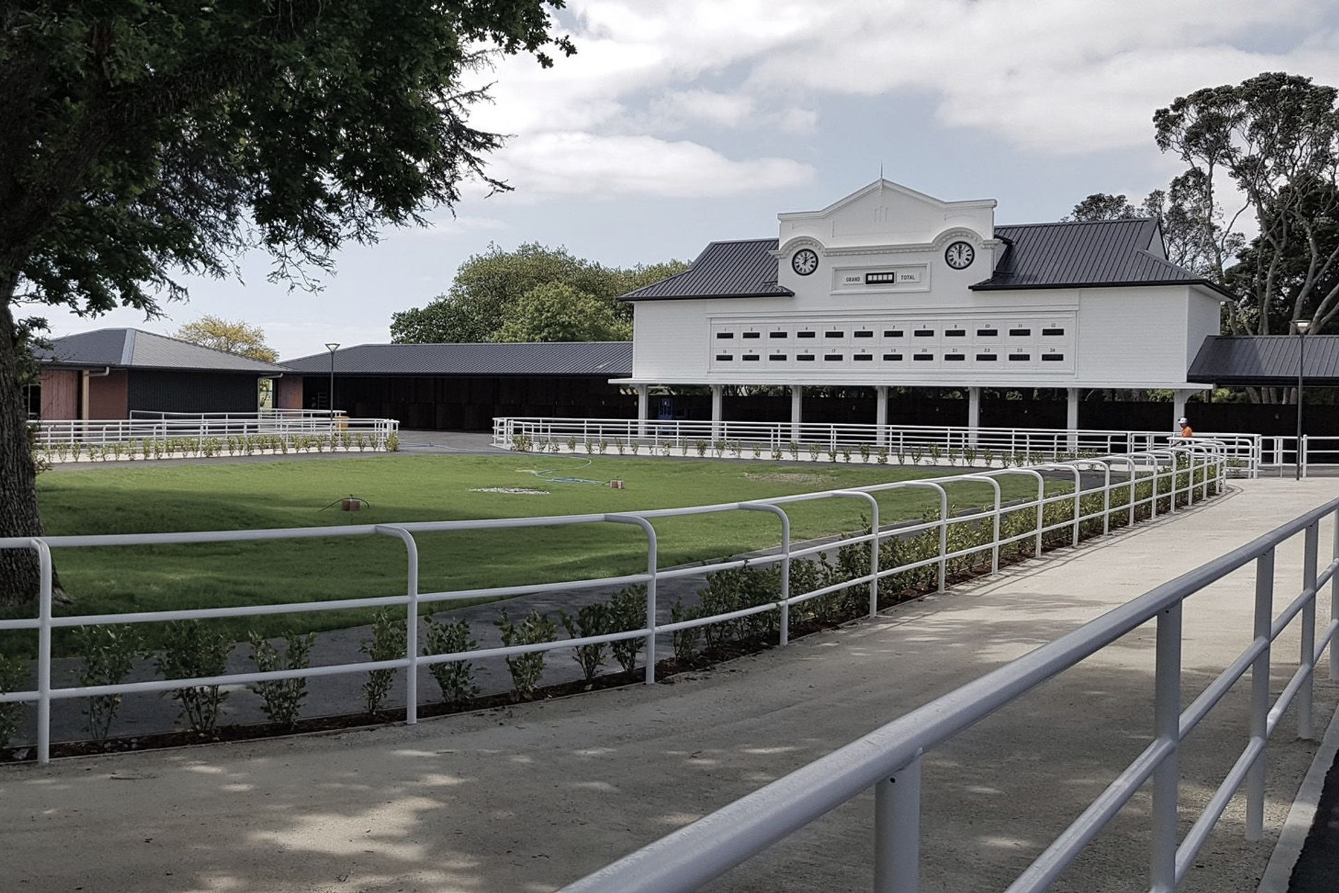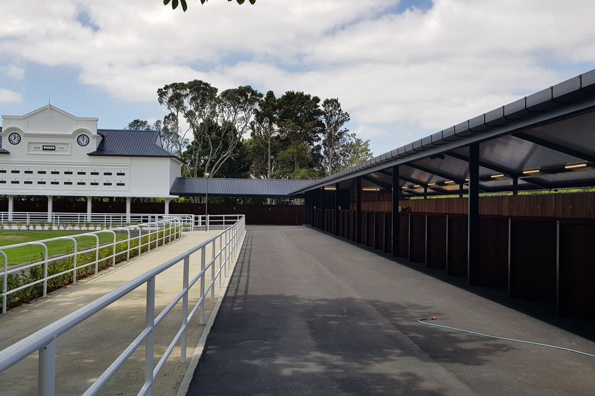 ArchiPro Project Summary - New stables for Auckland Racing Club featuring 126 horse spaces, a warm-up ring, veterinary boxes, and facilities including an office, trainers café, and function room, following the demolition of 70% of the old stable block.
