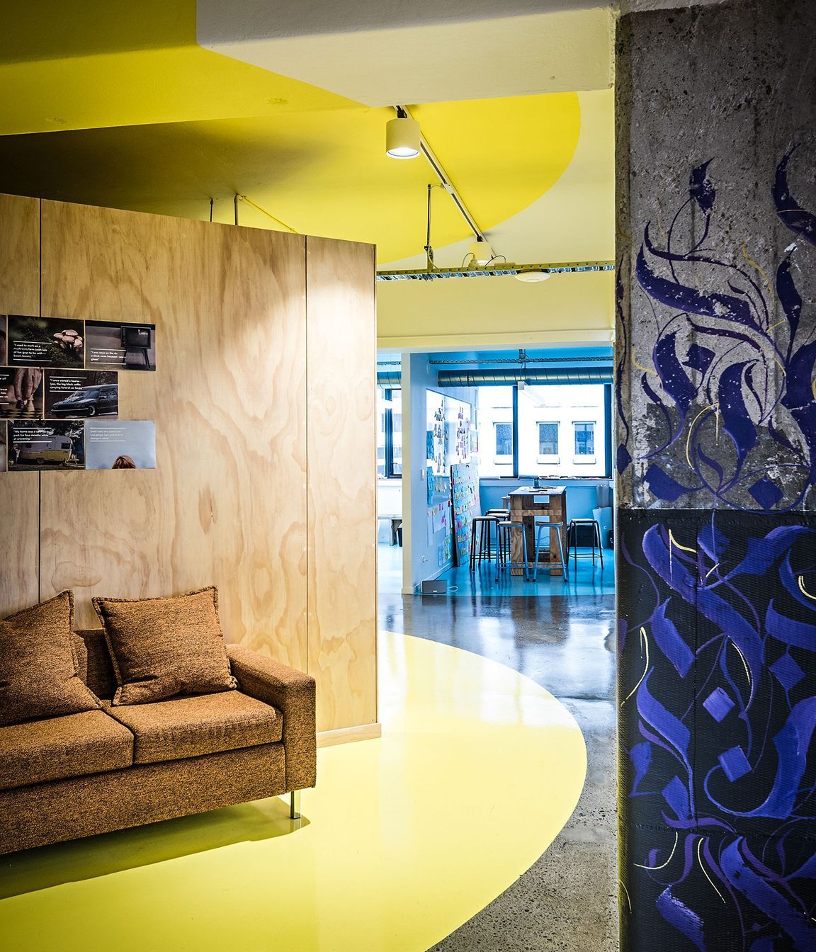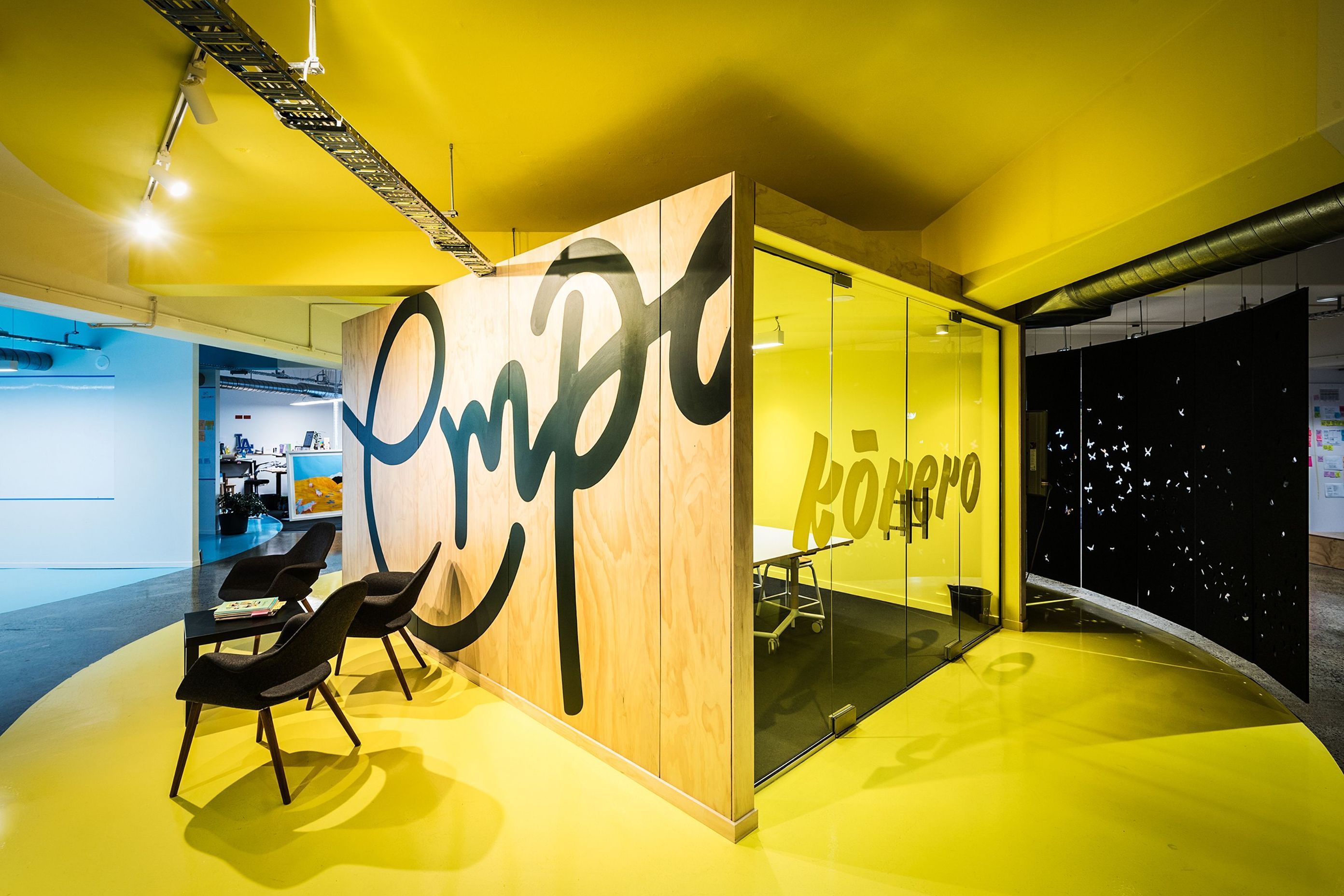 ArchiPro Project Summary - Empathy Studio: A dynamic workspace that embodies the brand's identity, blending raw sophistication with flexible design to foster collaboration and creativity in a welcoming environment.