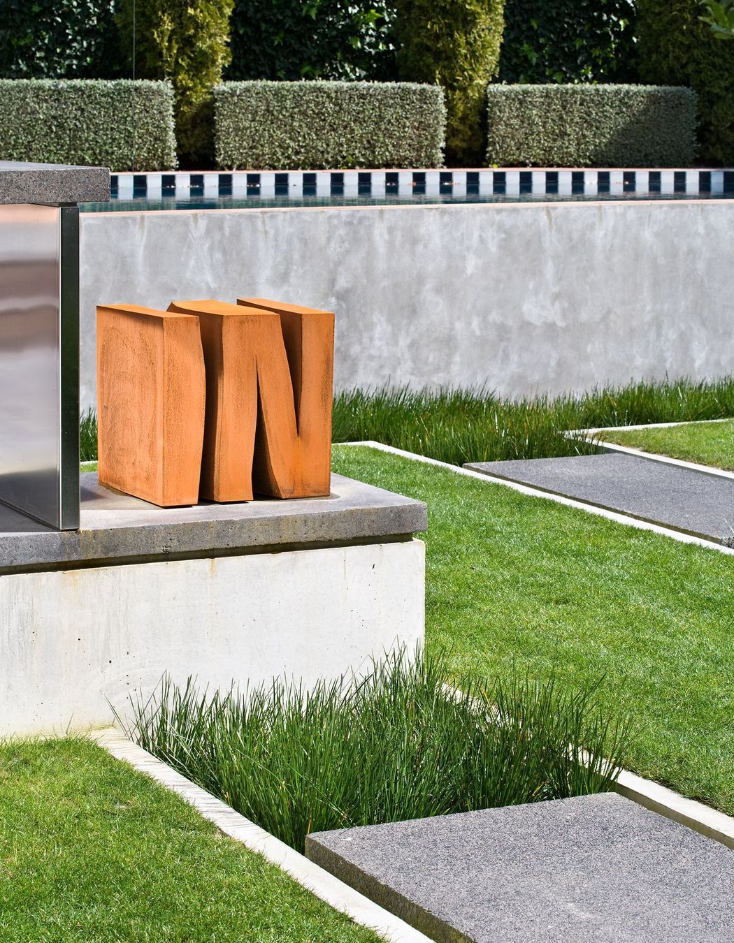 ArchiPro Project Summary - A contemporary entertainer's garden and pool in Remuera, seamlessly blending indoor and outdoor spaces while showcasing a unique collection of outdoor art, enhanced connectivity, and a modern planting scheme that honors the original landscape.